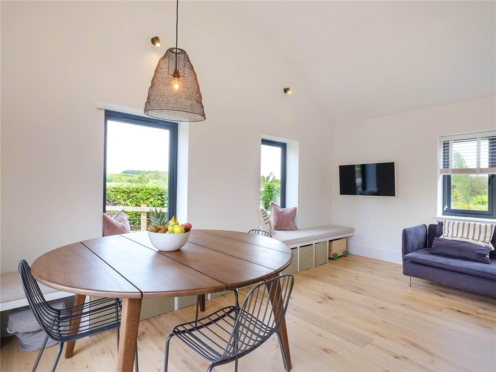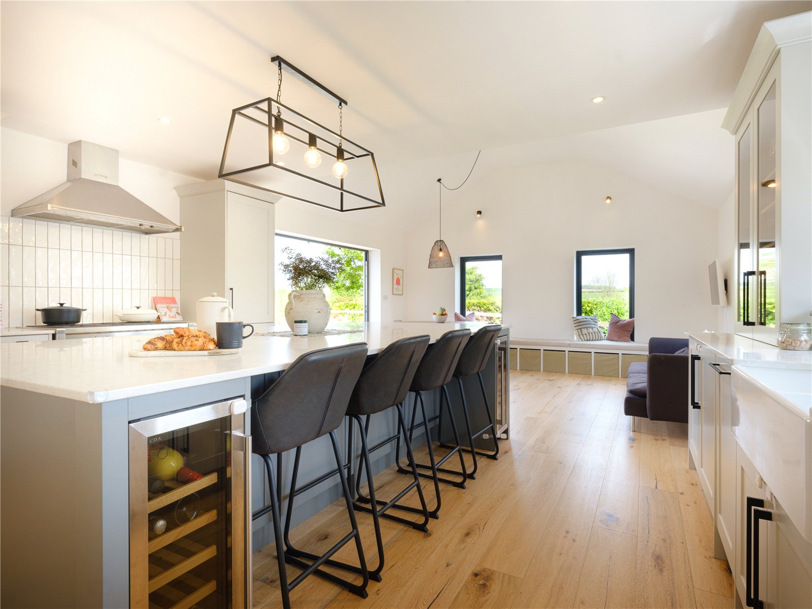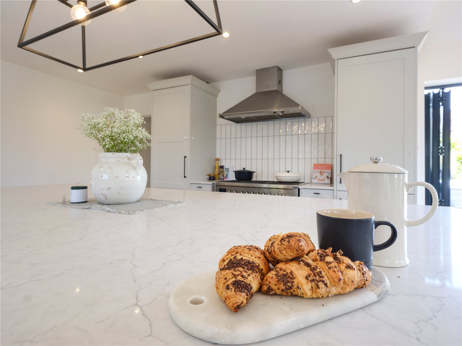 Our favourite room of the house is the open plan kitchen and family space with views out across Poulton Hill. This room is the heart of the home, where the family gathers to cook, eat, and spend quality time together. It's the perfect spot to enjoy a morning cup of coffee while watching the sunrise or to unwind in the evening with a glass of wine as the sun sets over the horizon.