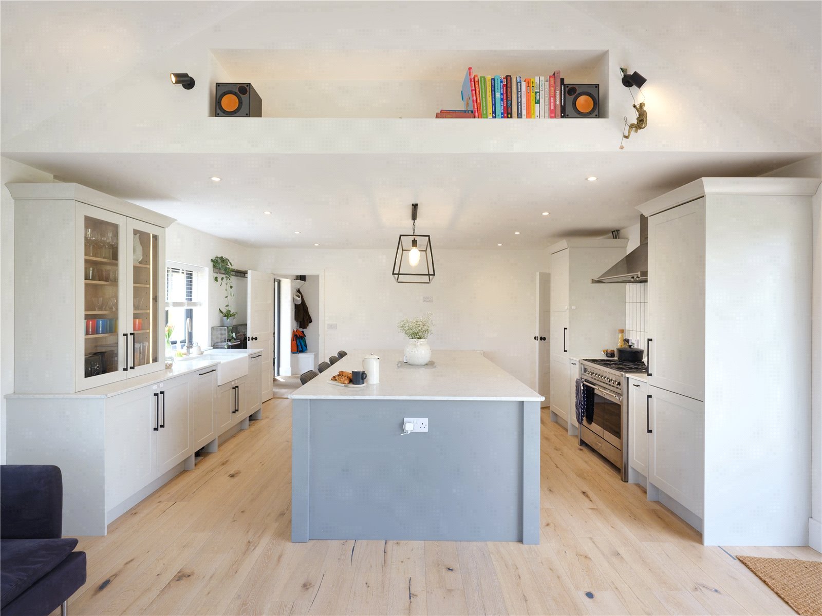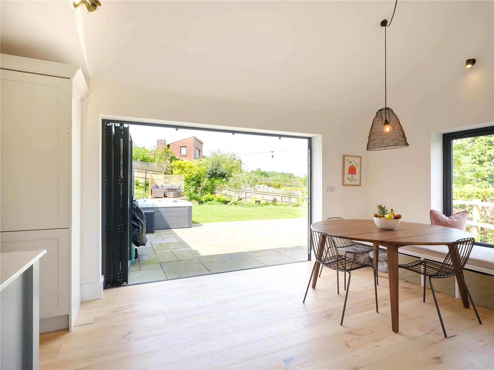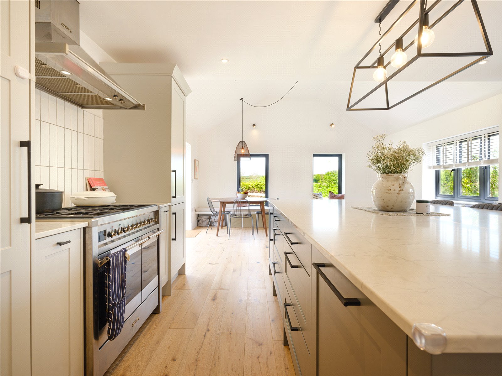 Our favourite room of the house is the open plan kitchen and family space with views out across Poulton Hill. This room is the heart of the home, where the family gathers to cook, eat, and spend quality time together. It's the perfect spot to enjoy a morning cup of coffee while watching the sunrise or to unwind in the evening with a glass of wine as the sun sets over the horizon.