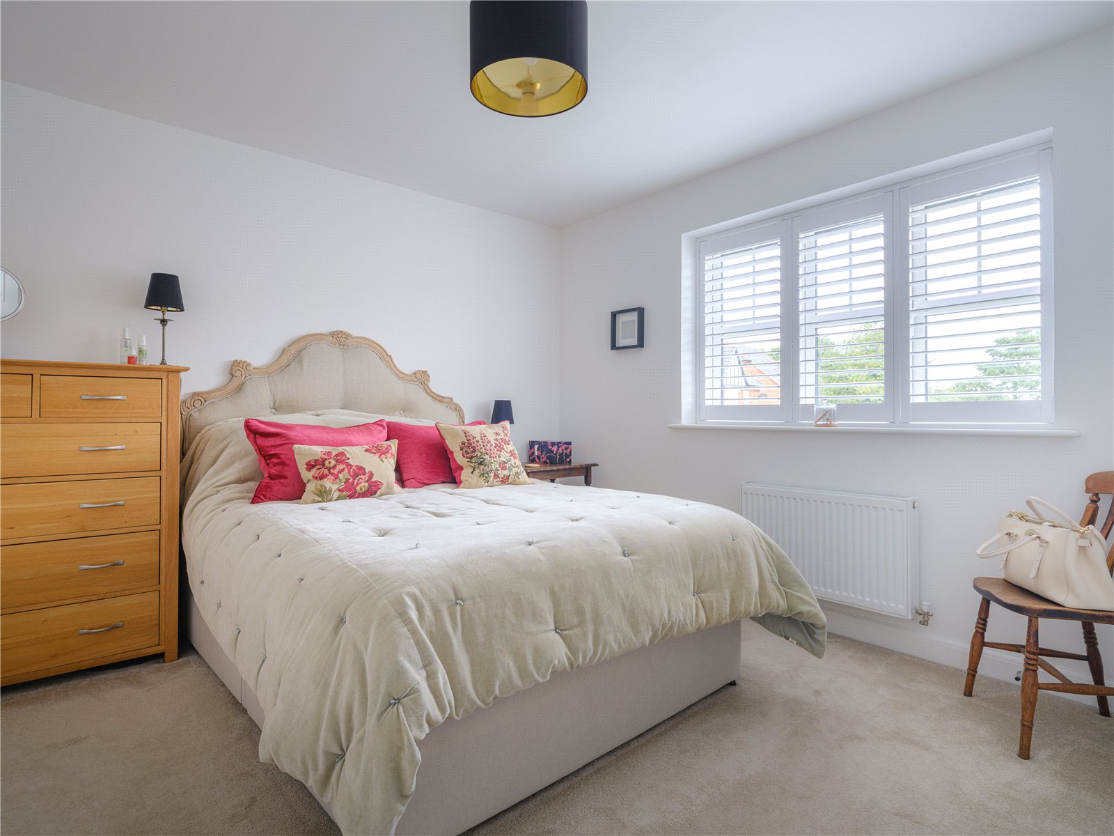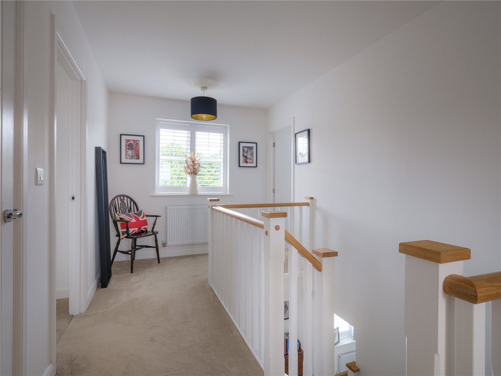 The bright and airy central landing continues the spacious feel up to the first floor, the large main bedroom with views onto the green, features a built-in wardrobe and en-suite bathroom. Leading on to a further three generous double bedrooms and main bathroom with bath and separate free-standing shower.