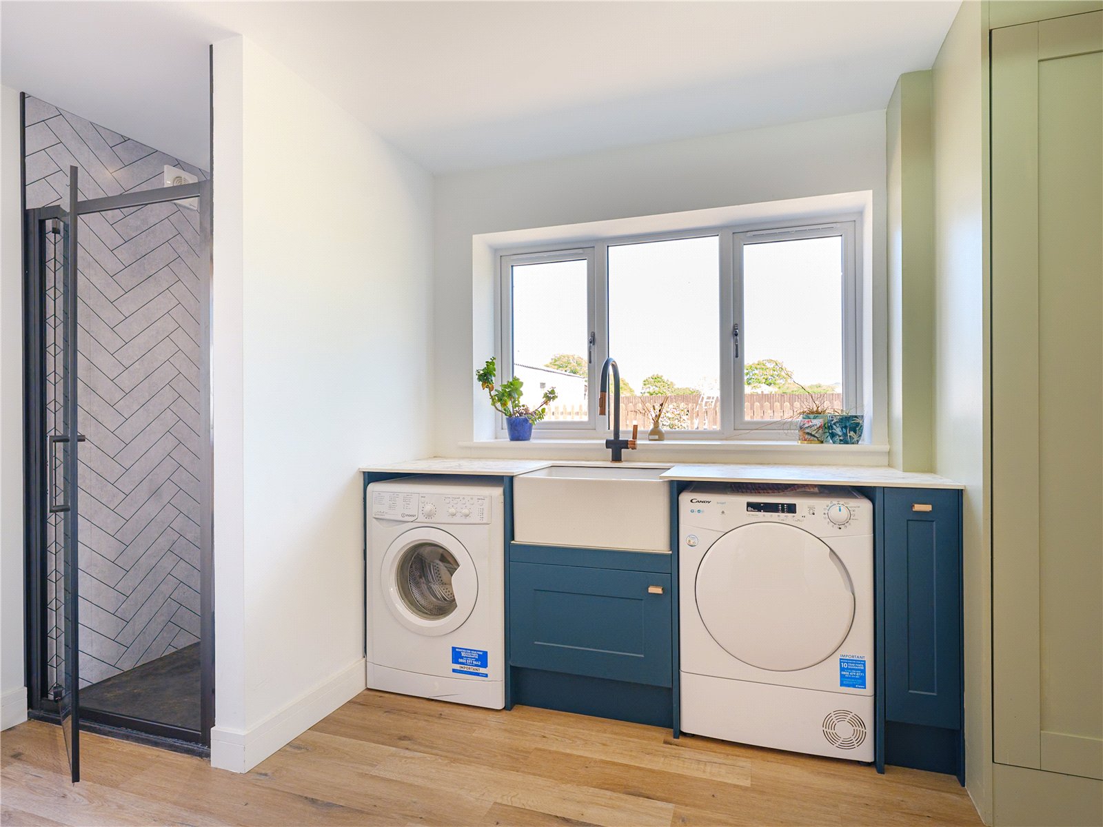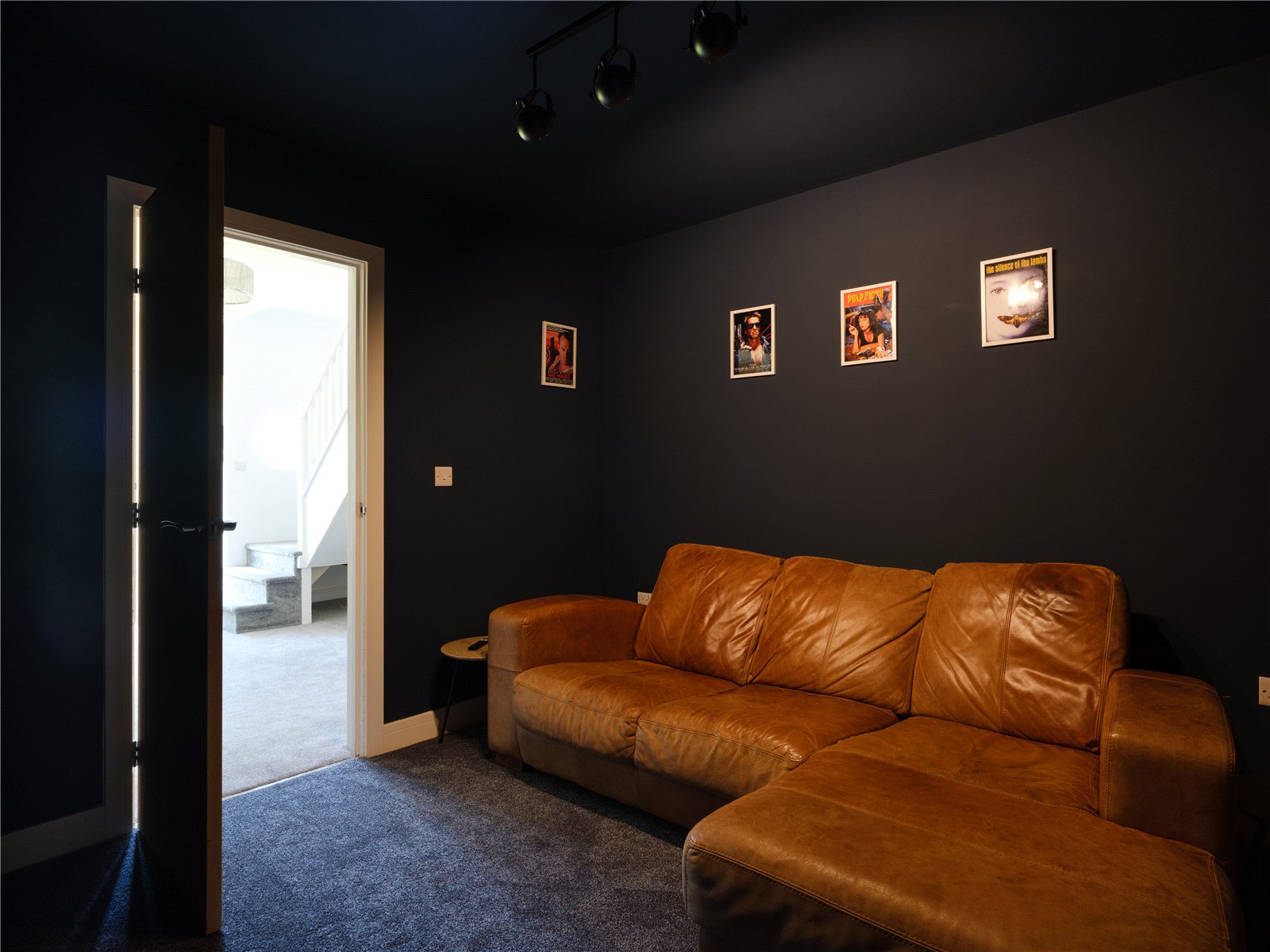 The useful utility/boot room includes a newly fitted shower, Belfast sink, space for white goods and further storage cupboards. The generous, dual-aspect principal reception room can be found at the front of the property. Also located on the ground floor are two of the guest bedrooms, cinema room and the newly fitted family bathroom.