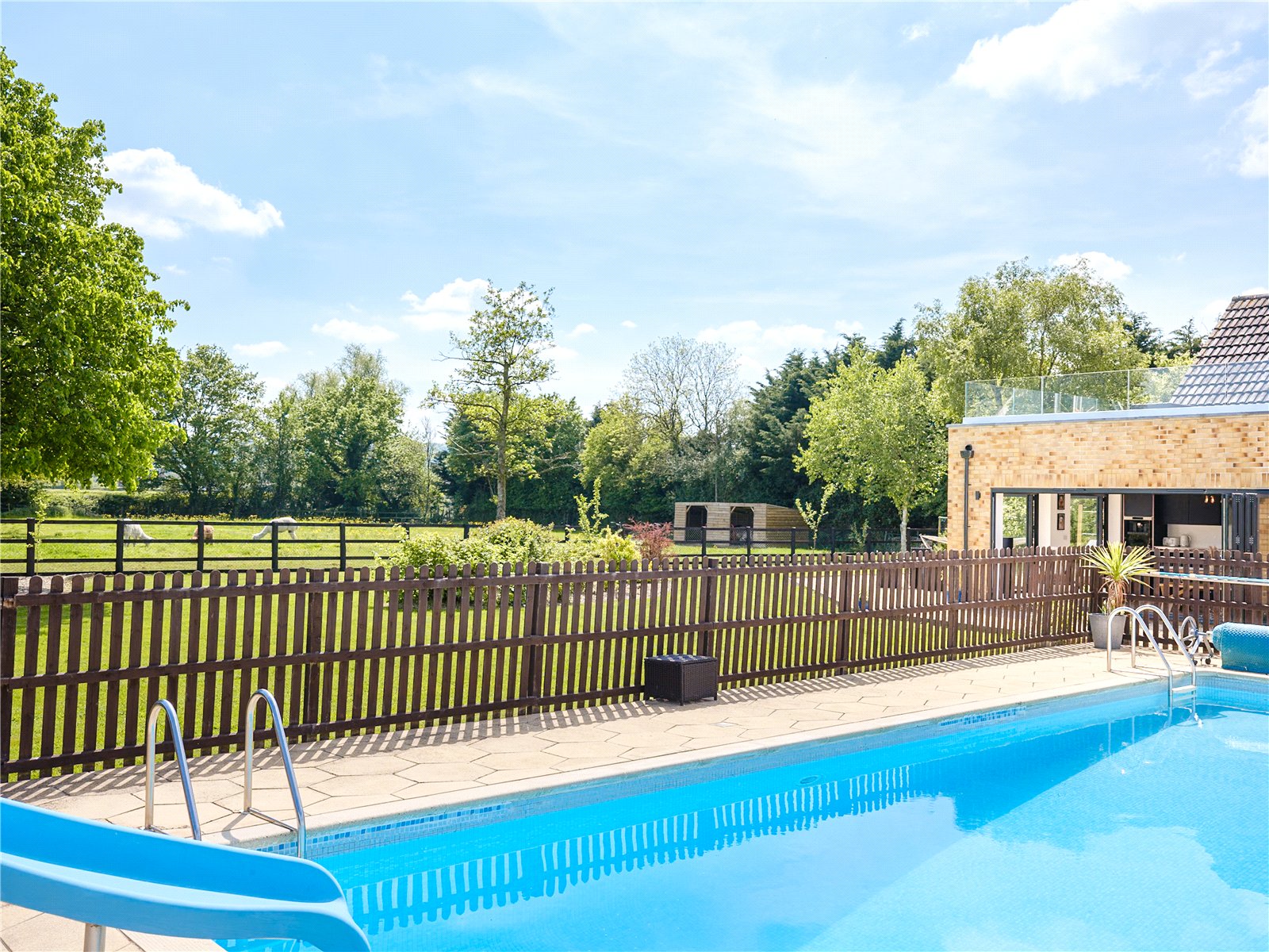The private gardens wrap around the main house and feature an array of mature trees and beautifully maintained, level lawns. There are multiple outdoor seating areas, ideal for outdoor dining allowing you to follow the sun throughout the day and into the evening. The heated swimming pool is discreetly positioned just behind the main house and is the perfect place for relaxing in the summer with a cool drink in hand.