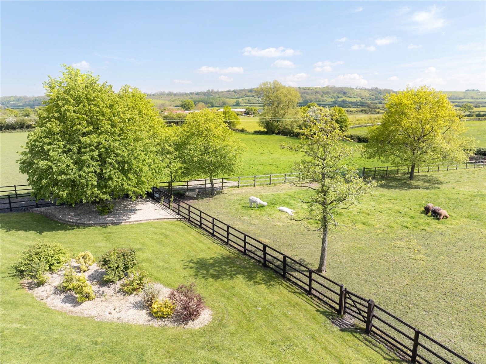 Surrounding the outbuildings and main house, the level grounds at The Fields have been divided into separate grazing paddocks with smart post and rail fencing. To the front and side of the property are two sets of electric gates which allow access to the large parking areas. The grounds are fully enclosed by mature hedging.