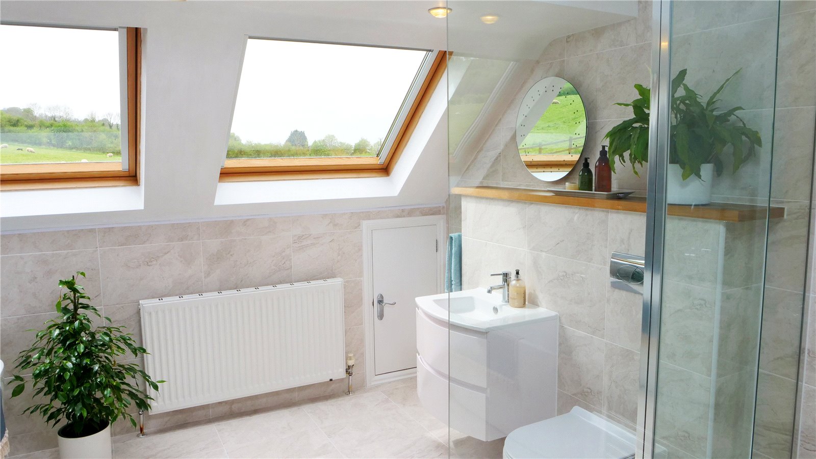 The main bedroom suite benefits from an ensuite bathroom and built in wardrobe. The 3 other bedrooms are well appointed and the main family bathroom has been recently upgraded. One fantastic feature is the balcony window in the far bedroom. This is the best place to drink in the view over the fields and woodland beyond and appreciate the quiet and tranquil setting.