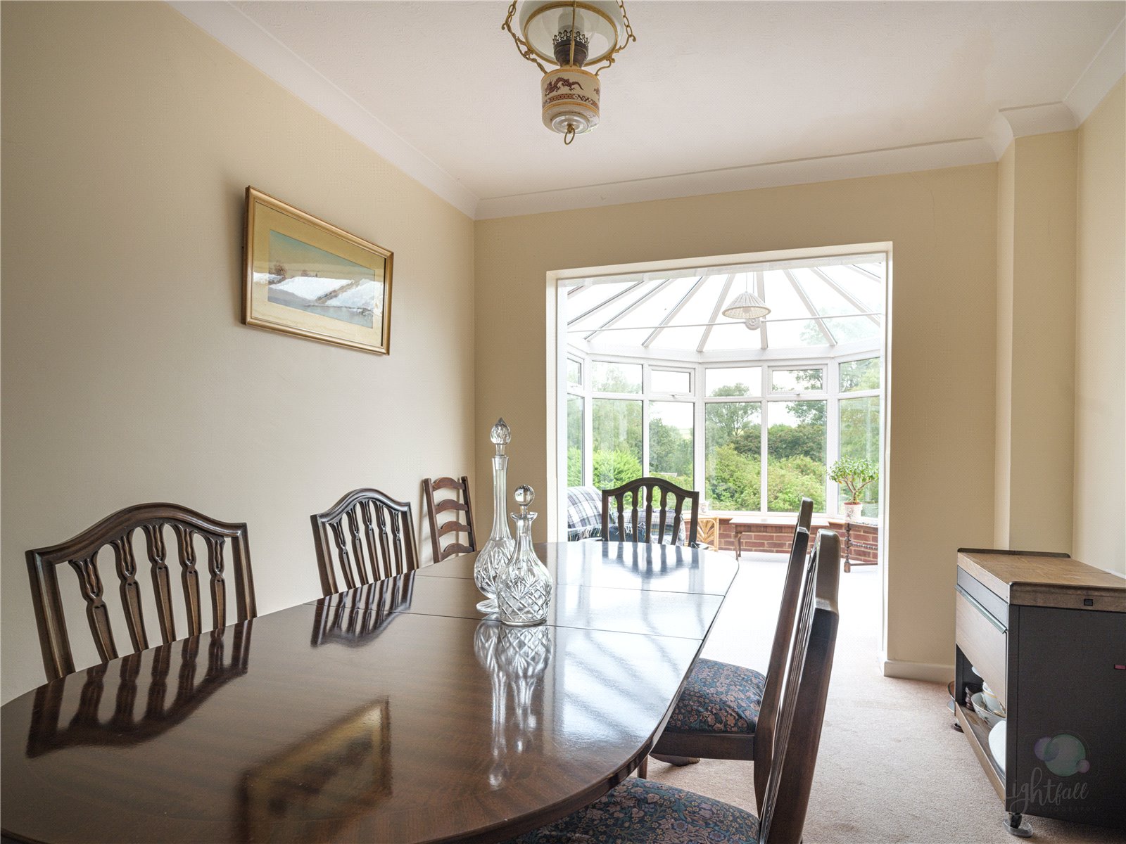 The welcoming double-height entrance hall is bathed in natural light. The dual aspect living room, with open fire is ideal for family gatherings and entertaining, opening onto a spectacular garden and countryside views. This incredible vista is duplicated in the dining room, which opens into the conservatory. The original kitchen also overlooks the garden and provides ample dining space. An office, adjacent to the cloakroom, and double garage with integral doors complete the ground floor.
