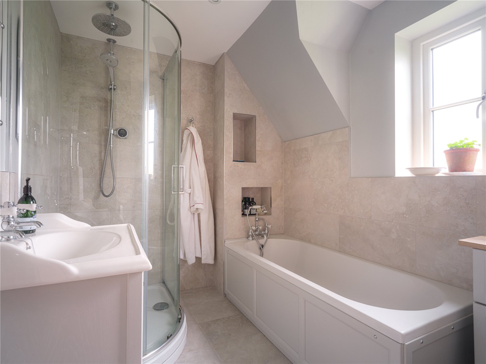 A large open and light-filled landing leads to the four double bedrooms, two of which are ensuite. The principal bedroom has been fitted with built-in wardrobes, and all bathrooms have been upgraded recently. The bedrooms offer superb views across the surrounding countryside.