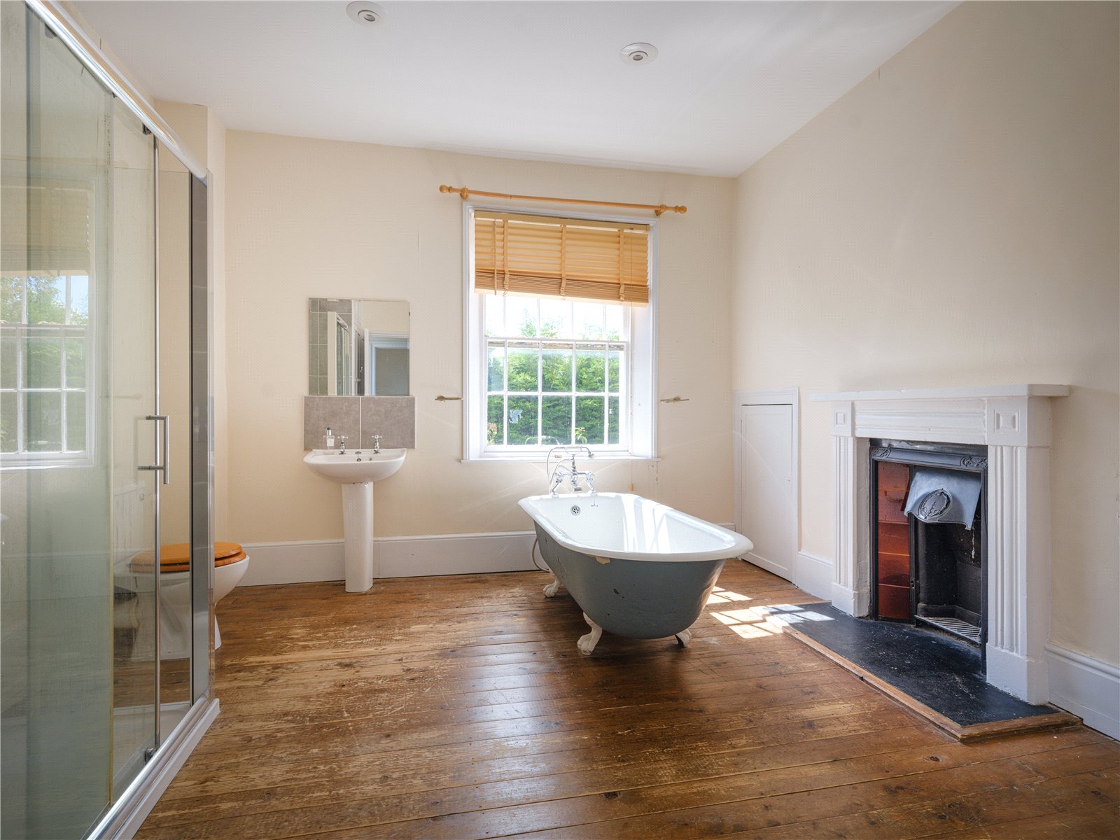 On the first floor are three large bedrooms and a very spacious bathroom with free-standing rolltop bath and separate shower.
