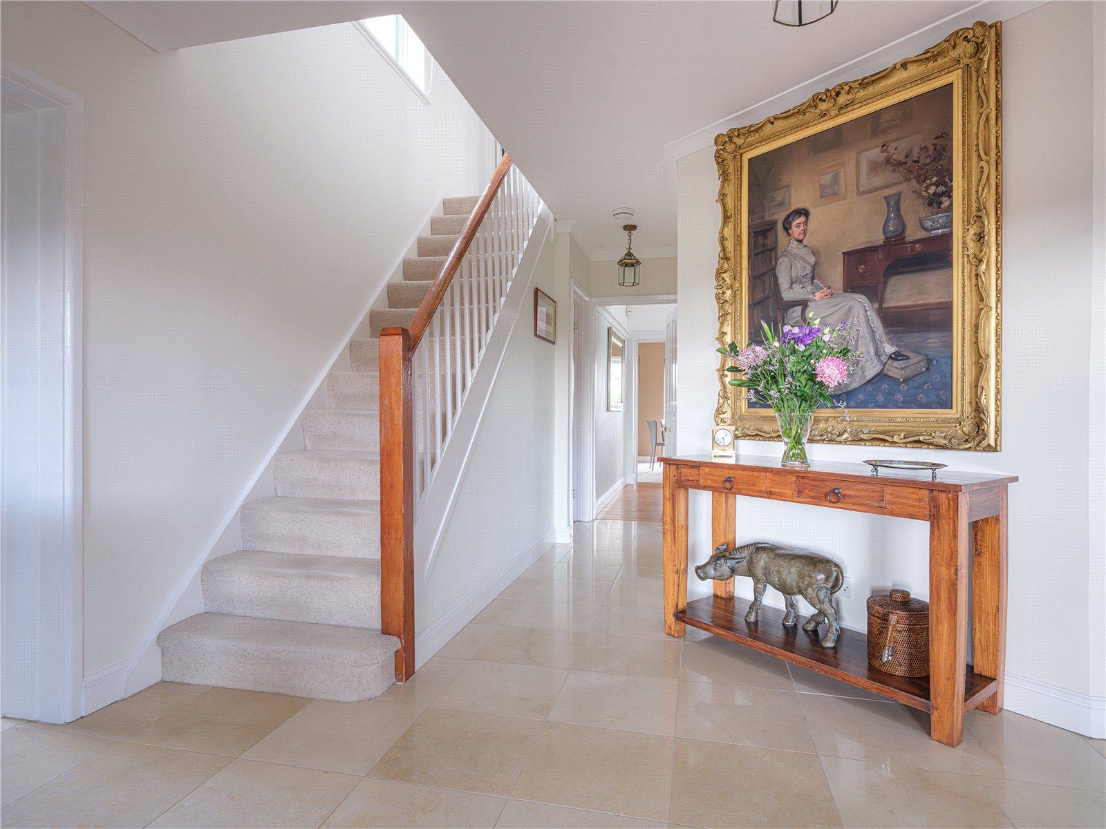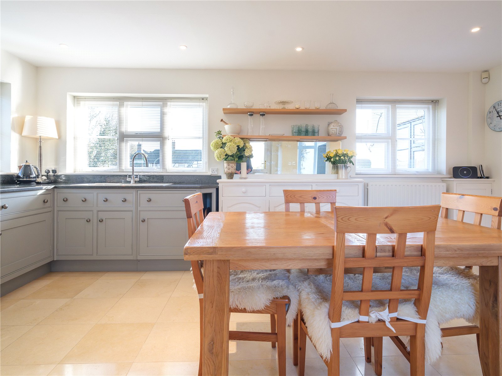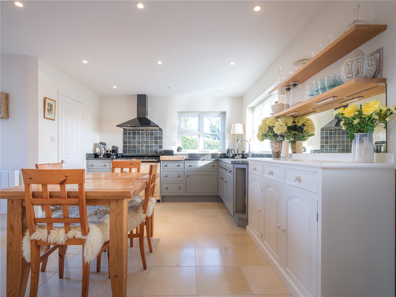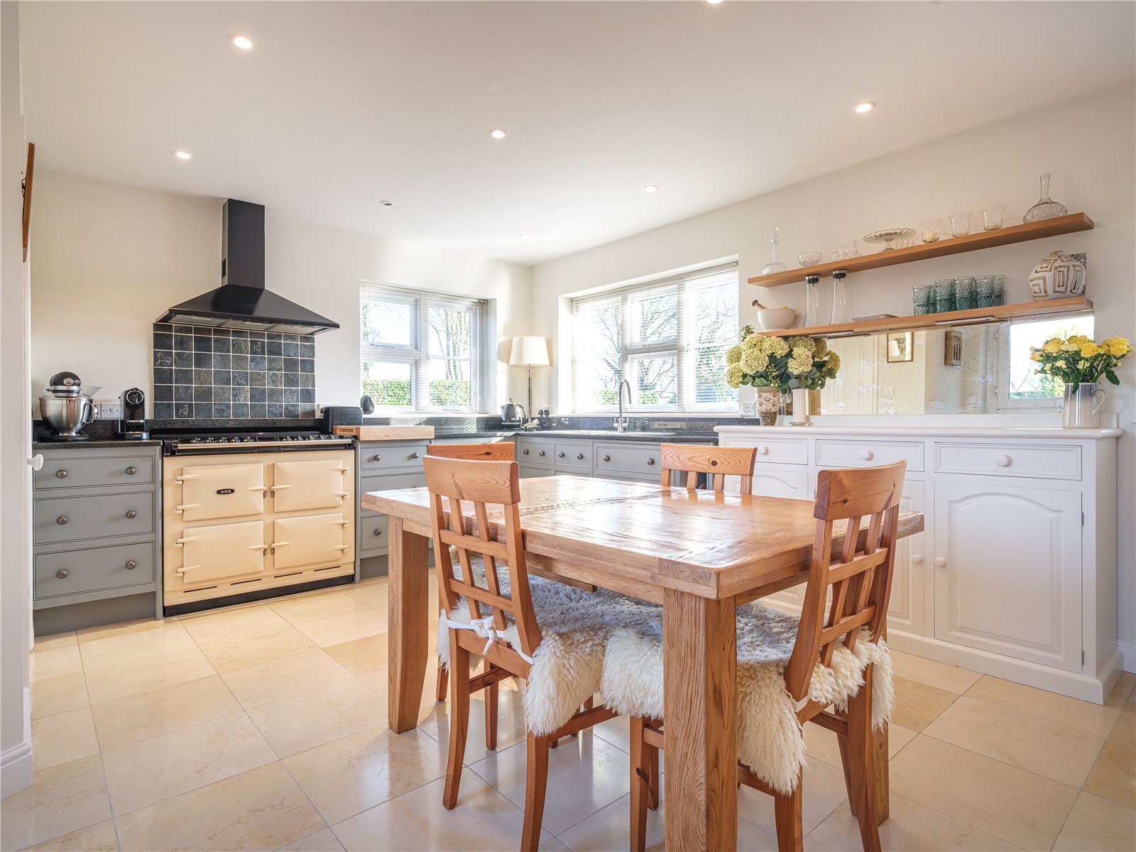 A generous and welcoming entrance hall sets the scene with limestone flooring leading into the flexible and extensive ground floor. The light filled double-aspect kitchen comes with a Six-Four Electric Aga with ceramic hobs and a walk-in pantry. There's space to dine here or also in the reception room at the rear of the house, where double doors lead out to the garden and is currently used by the owners as a dining room. Adjoining the kitchen is a bright reception room, allowing the layout to flow, perfect for entertaining guests. In addition, there is a separate snug, with working open fire, which could make an ideal playroom or office as required. A sizeable boot room/utility with storage and WC with cloakroom cupboards complete the ground floor.