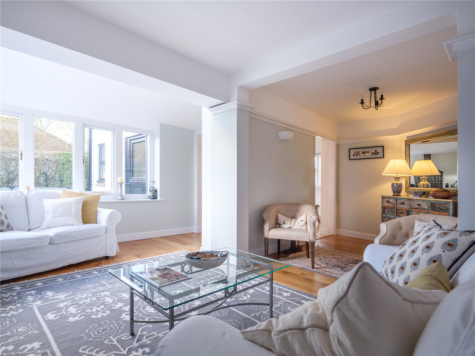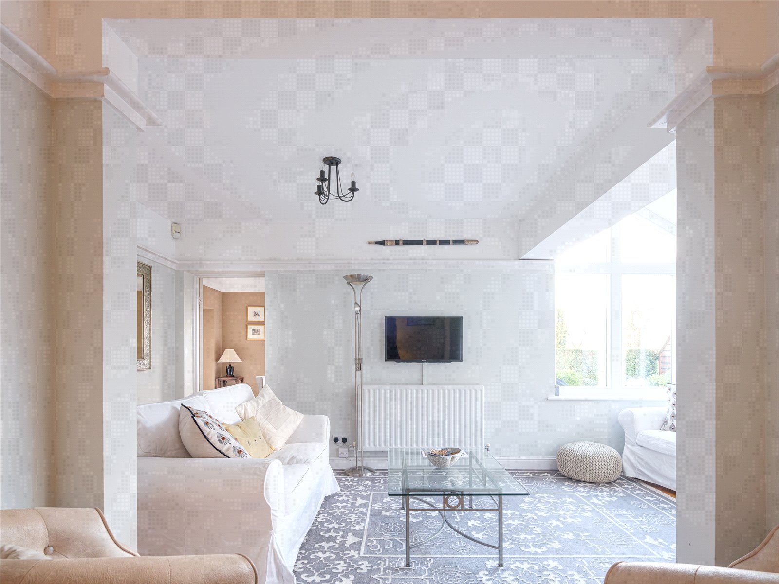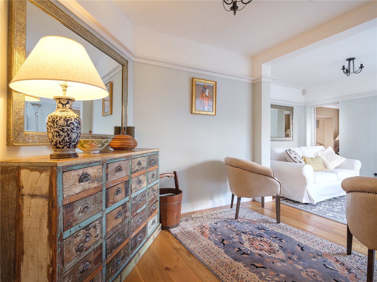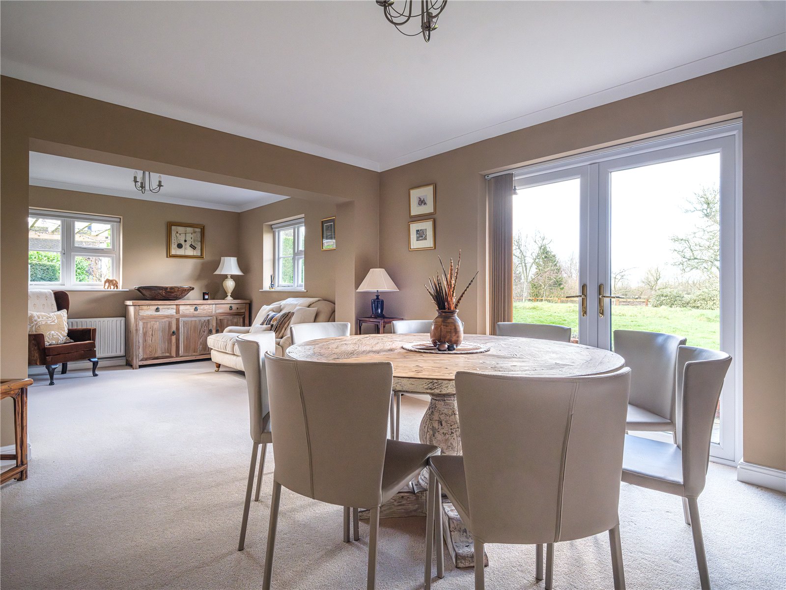 A generous and welcoming entrance hall sets the scene with limestone flooring leading into the flexible and extensive ground floor. The light filled double-aspect kitchen comes with a Six-Four Electric Aga with ceramic hobs and a walk-in pantry. There's space to dine here or also in the reception room at the rear of the house, where double doors lead out to the garden and is currently used by the owners as a dining room. Adjoining the kitchen is a bright reception room, allowing the layout to flow, perfect for entertaining guests. In addition, there is a separate snug, with working open fire, which could make an ideal playroom or office as required. A sizeable boot room/utility with storage and WC with cloakroom cupboards complete the ground floor.