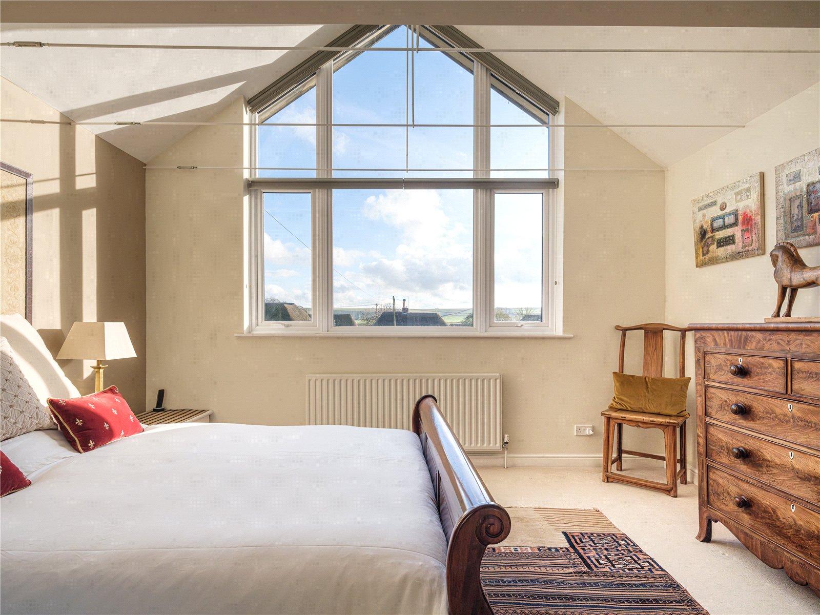 The striking design of the front bedroom affords delightful views across the paddock opposite and beyond, the large gable end window has been designed to allow the light to flood in. With 3 further generously proportioned bedrooms at this level (one with en-suite) and family bathroom, it is all presented in immaculate condition. The rear bedroom opens out onto a generous roof terrace, a lovely space from which to enjoy the vista.