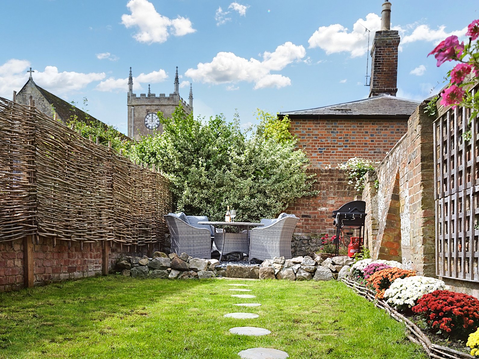 A delightful garden at the rear provides an ideal space for al fresco dining, and the recently planted beds provide bursts of colour around the lawn. The garden is totally enclosed.