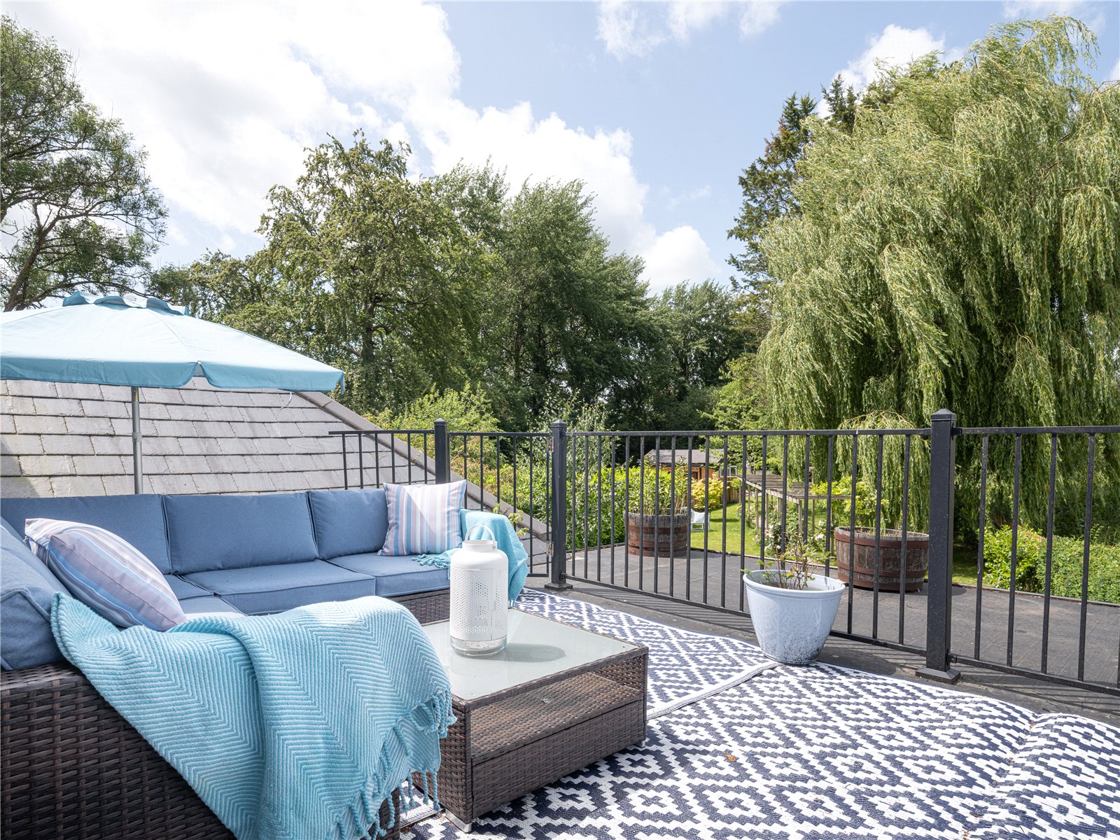 There are four bedrooms on the first floor, three doubles and a charming single with vaulted timber lined ceiling. The principal bedroom is simply wonderful, with views across the garden and fields beyond, a dressing area with fitted storage, a very well appointed ensuite shower and then access to the fabulous balcony a real retreat from which to escape a busy day!