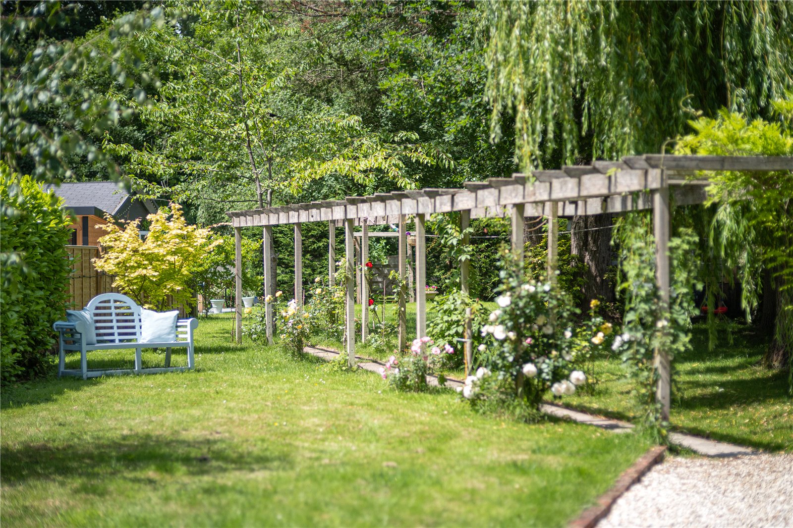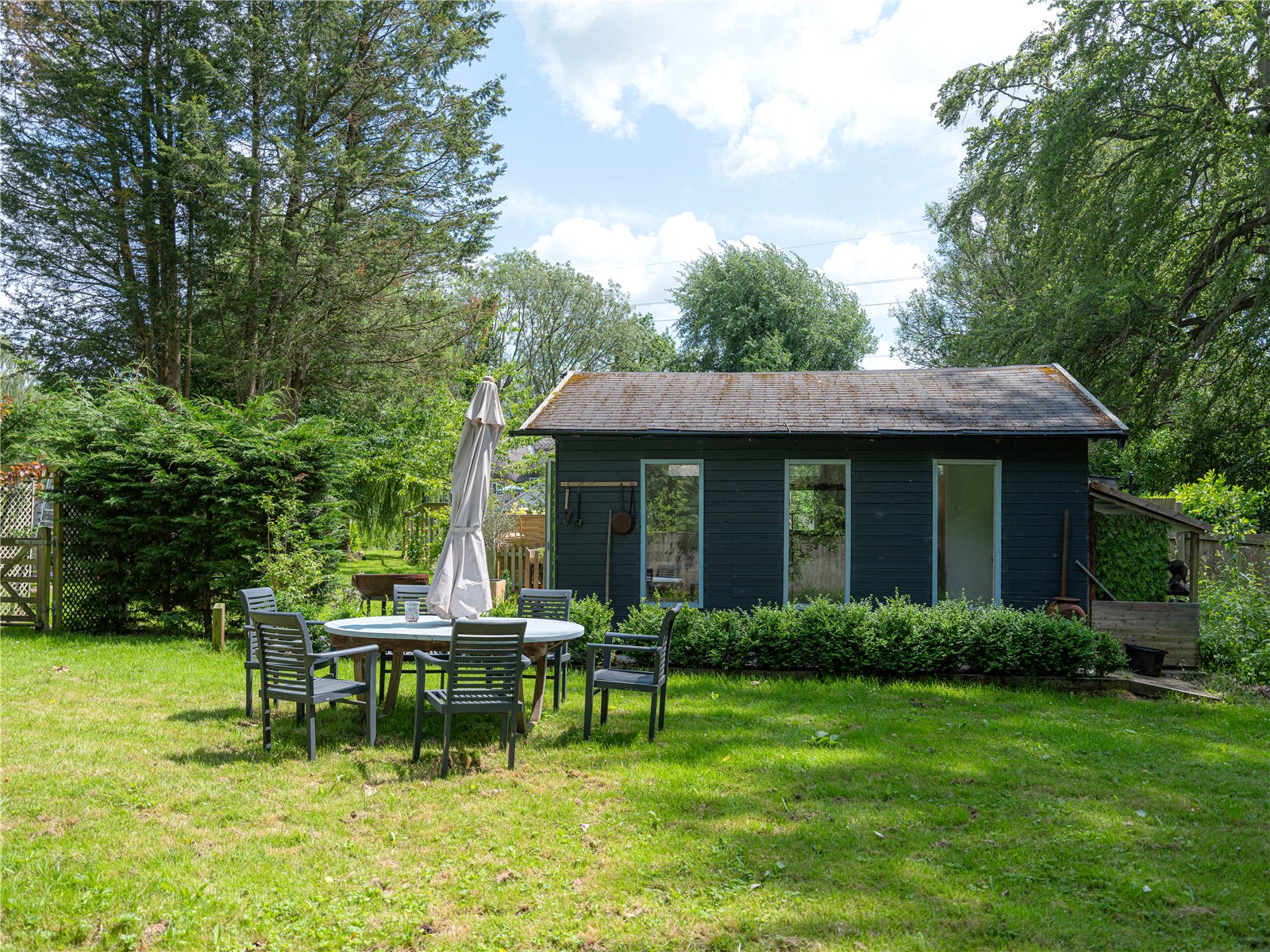 Quietly situated on a private track behind traditional estate fencing, Mill Cottage offers charm at every turn, from the wonderfully symmetrical façade to the glorious balcony accessed from the main bedroom. The summerhouse, reached via the rose festooned wooden pergola walkway, once home to pygmy goats, is now a fabulous private hideaway, perfect for that morning coffee with the papers or hosting friends and family for a garden party.