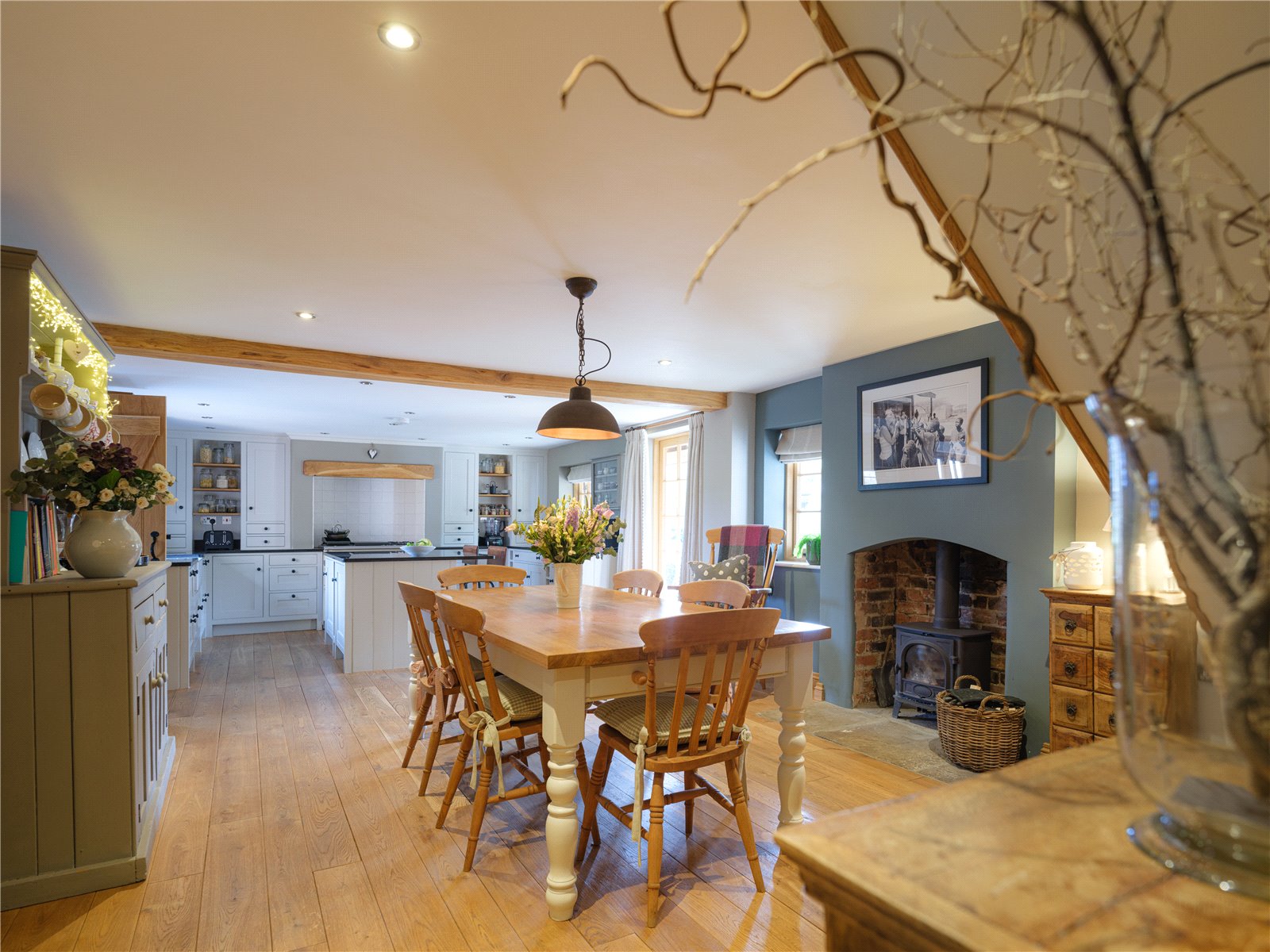 A delightful kitchen and dining room provides a real heart to the home, the perfect space to entertain guests or enjoy a quiet mid-week supper. Double doors lead directly into the rear garden, making for convenient al fresco dining when the weather allows. The spacious and light sitting room benefits from a log burner with a gorgeous, exposed brick surround and attractive mantel above. The very useful utility/boot room and downstairs cloakroom completes the ground floor and this area is accessed from the kitchen/dining room but also via a side external door - ideal for returning with muddy boots or dogs!