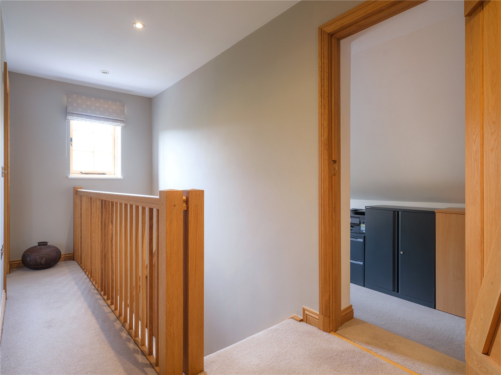The main bedroom suite benefits from built-in triple handmade wardrobes, and a large ensuite shower room. There are two further double bedrooms in addition to a single bedroom, currently in use as an office, and a main bathroom.