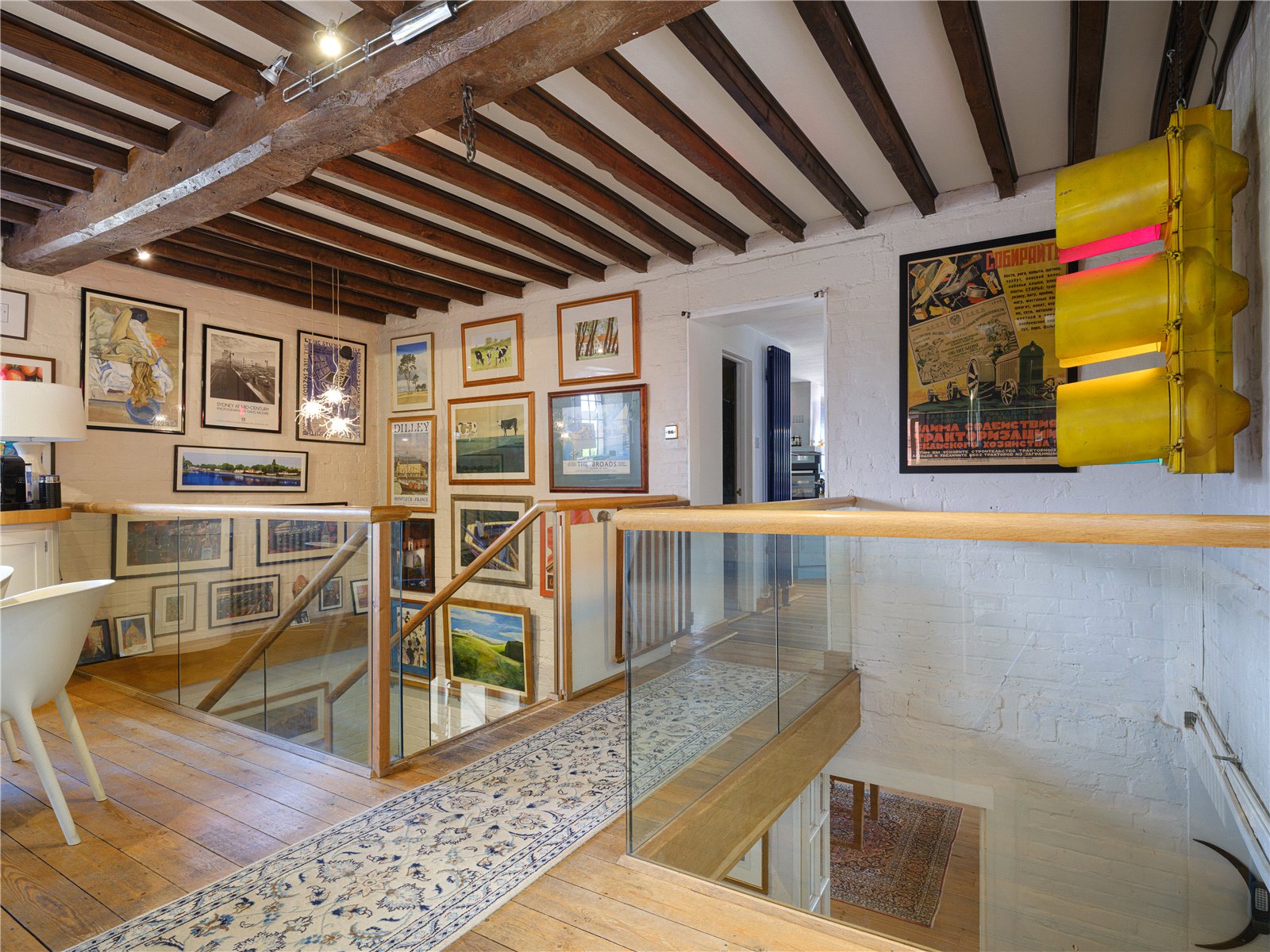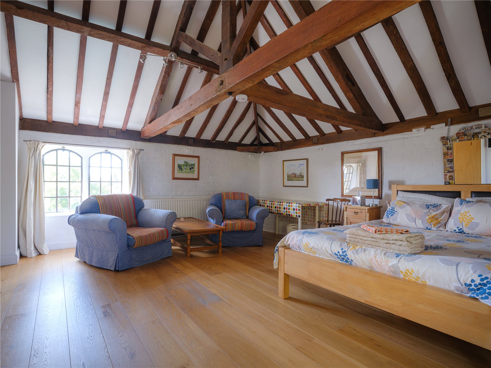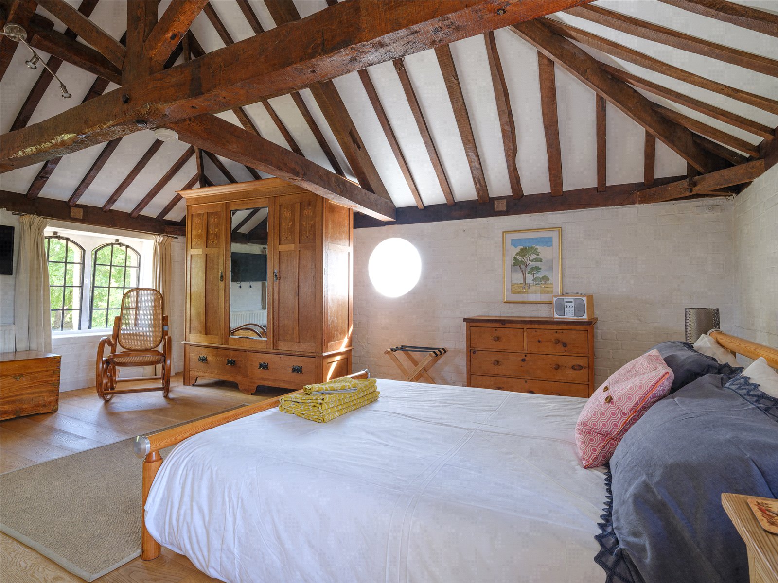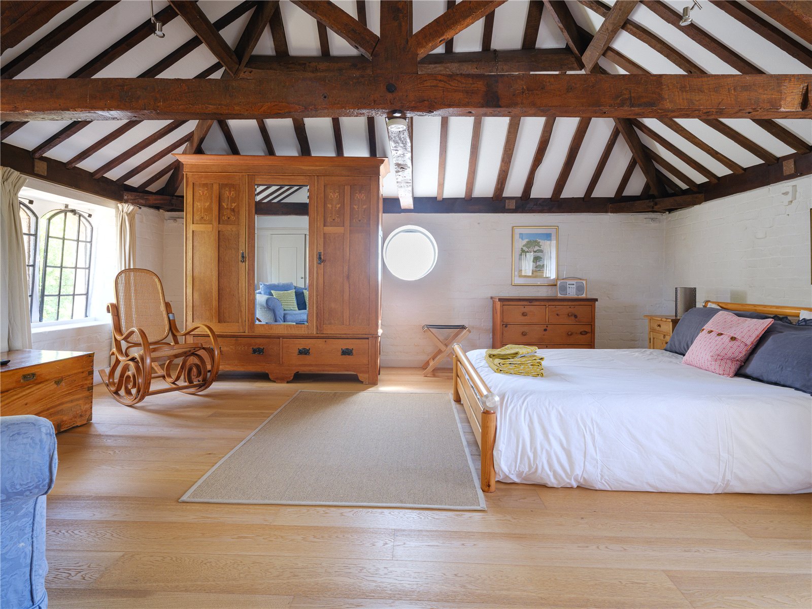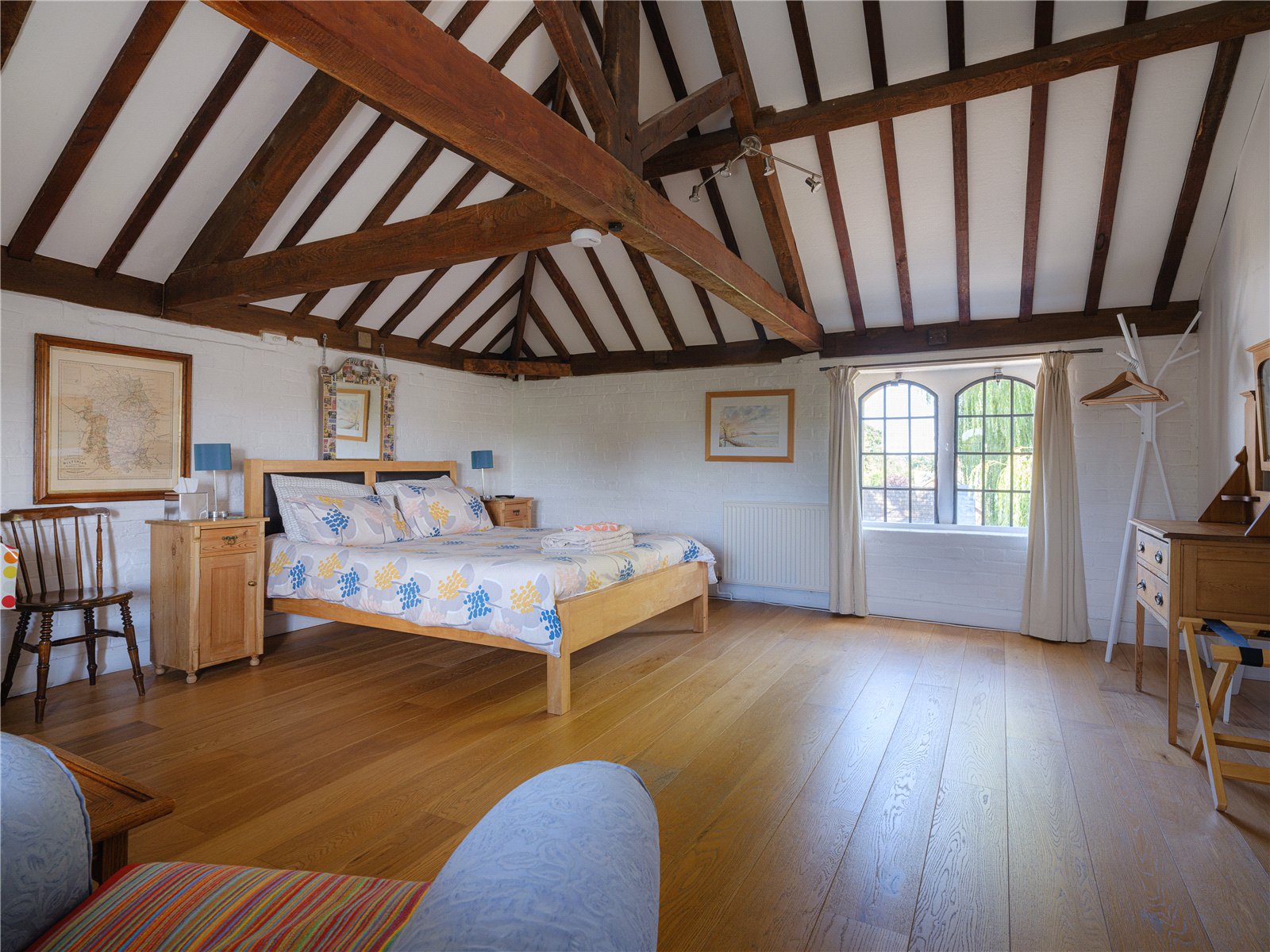 The top floor is dedicated to two further ensuite bedrooms, both with high vaulted ceilings with beautiful exposed beams.