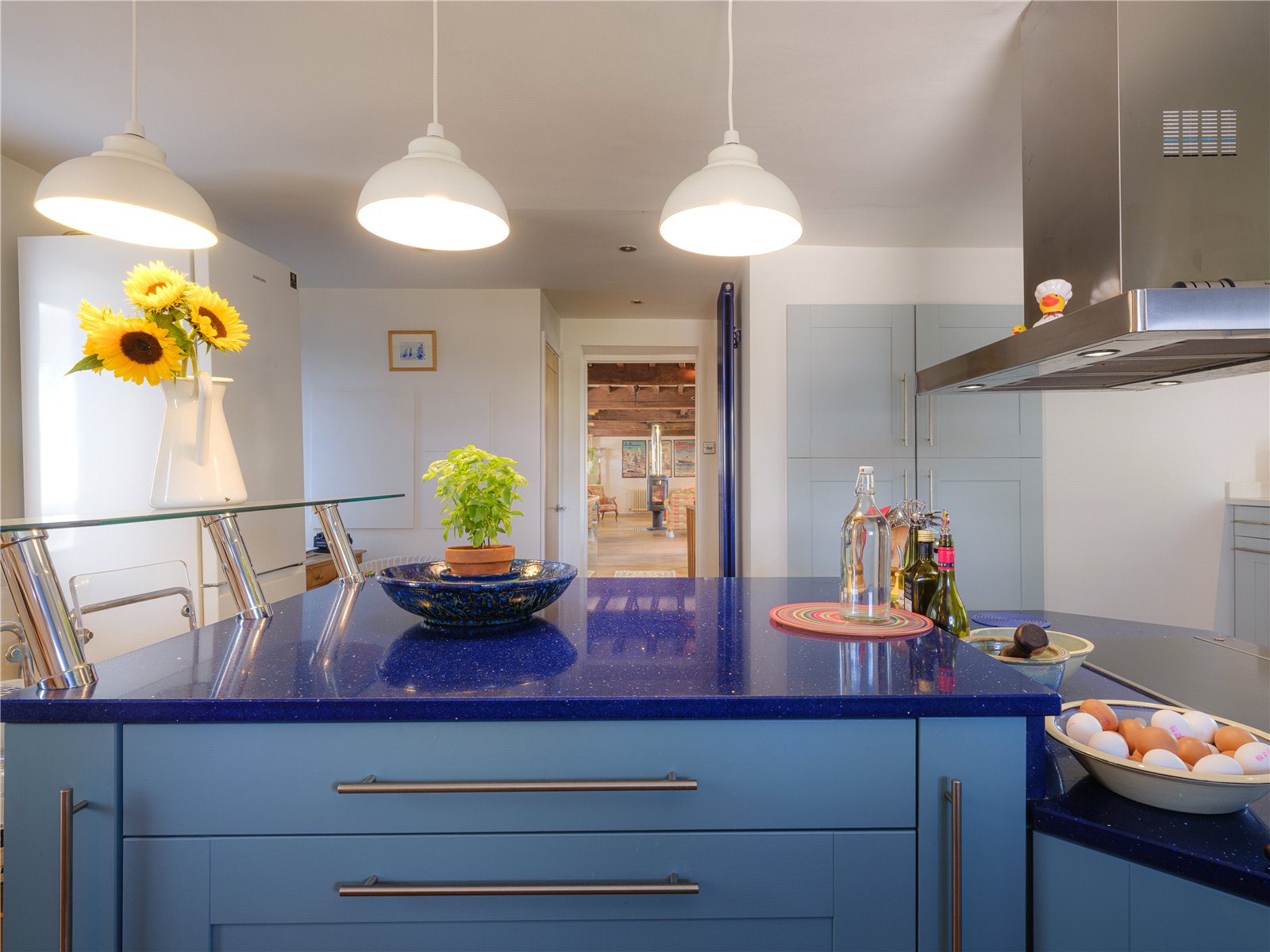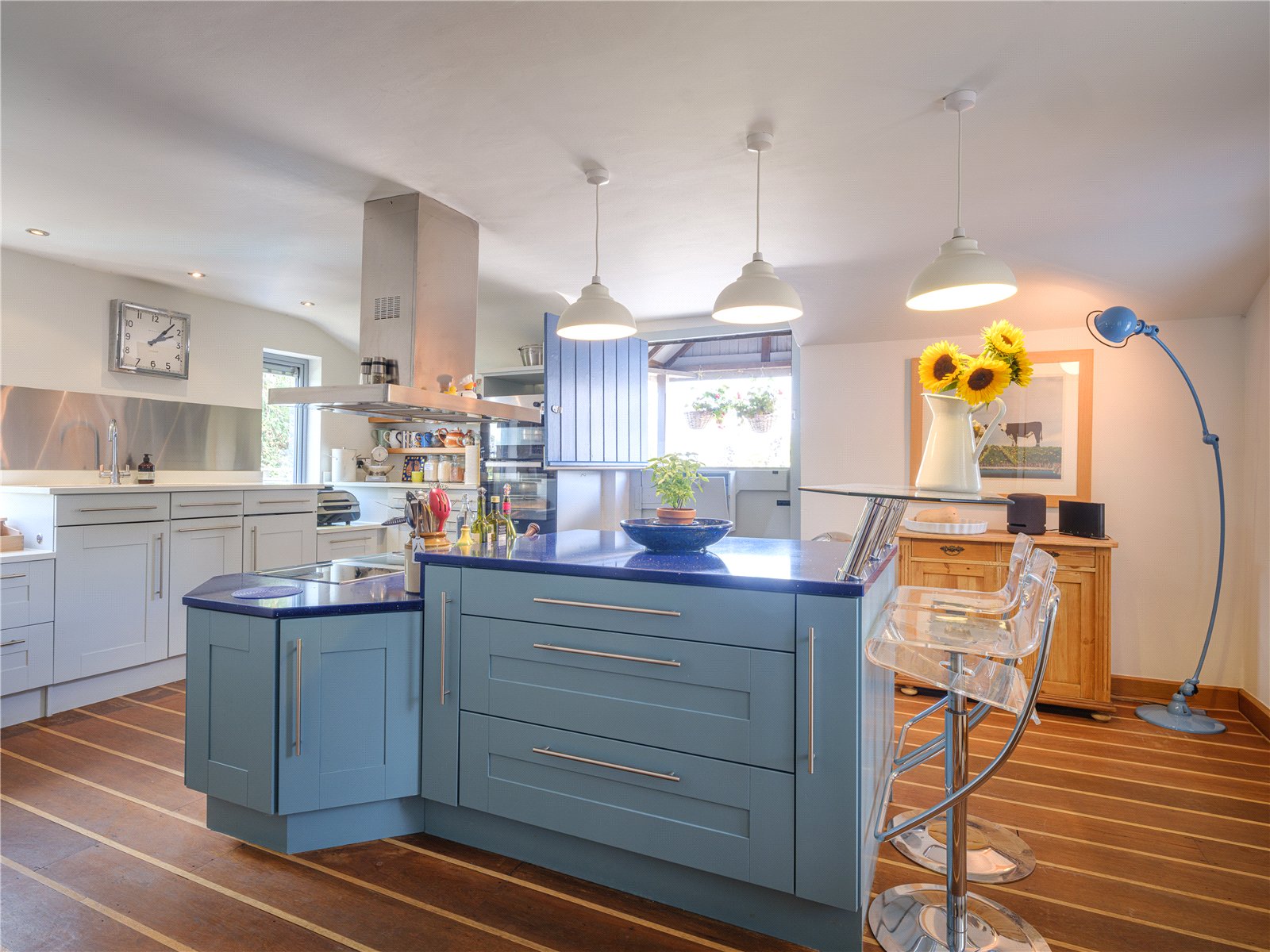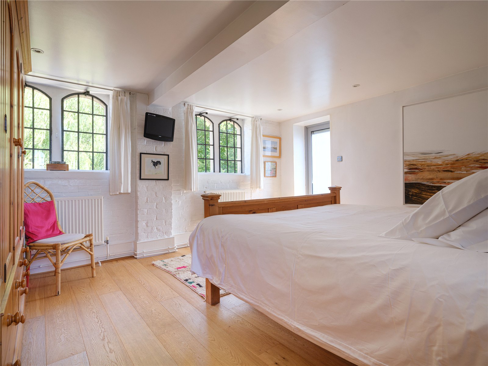 The first floor of The Old Mill invited you into an impressive, open-plan living space that stretches the full width of the original build. A rotating Jøtul wood burner forms a contemporary centrepiece to this living space alongside large French Doors which lead out onto the private sun terrace with enviable views over the surrounding countryside and the gardens below. The kitchen, located at the front of the house, has been fitted with granite work surfaces and a central island, with a stable door opening to Mill Road. At the rear of The Old Mill, the millrace room offers the perfect spot to relax in, with natural light pouring in from both aspects and through the roof lantern above. Completing the first floor is the shower room that is situated just off of the kitchen.