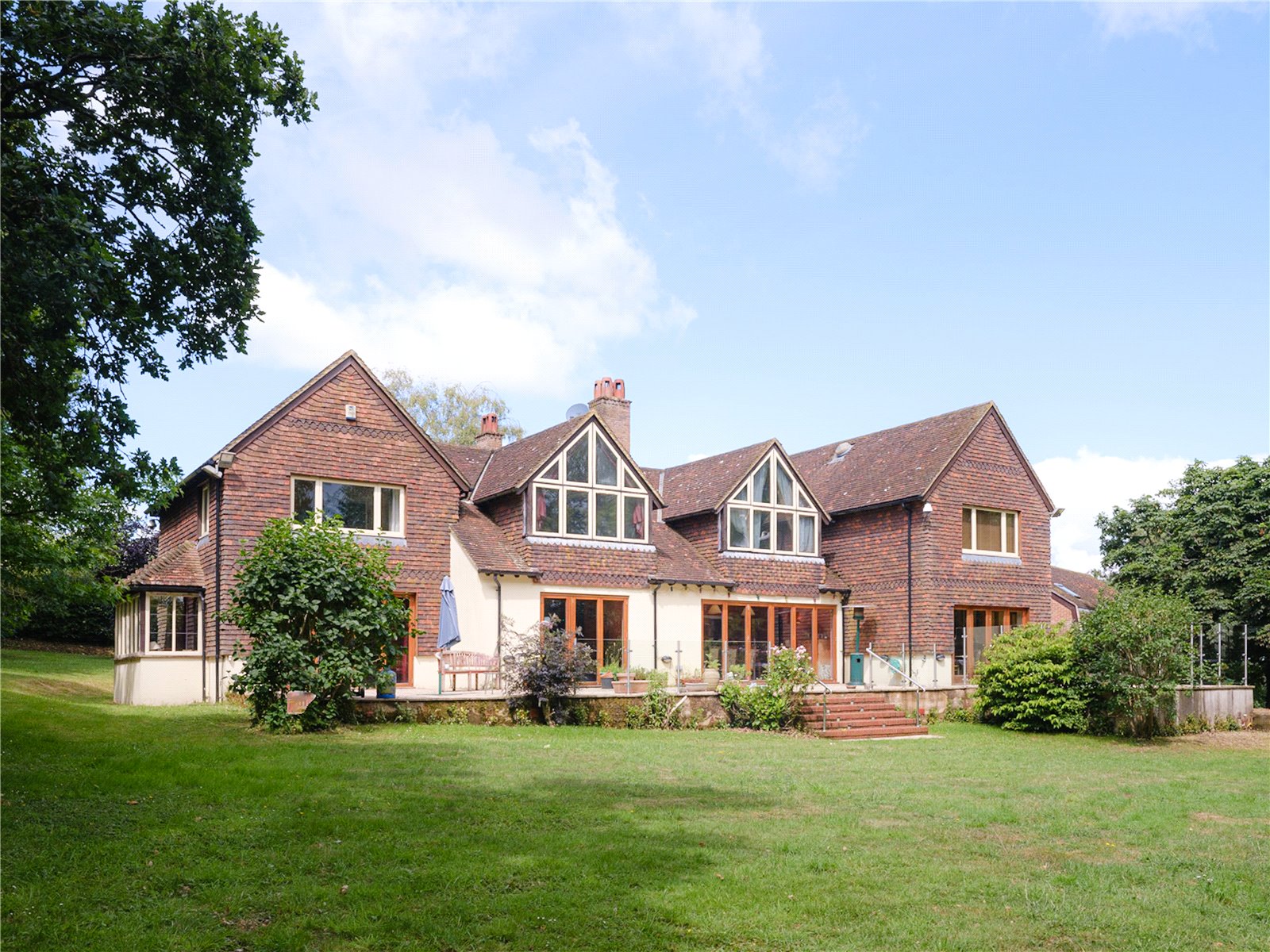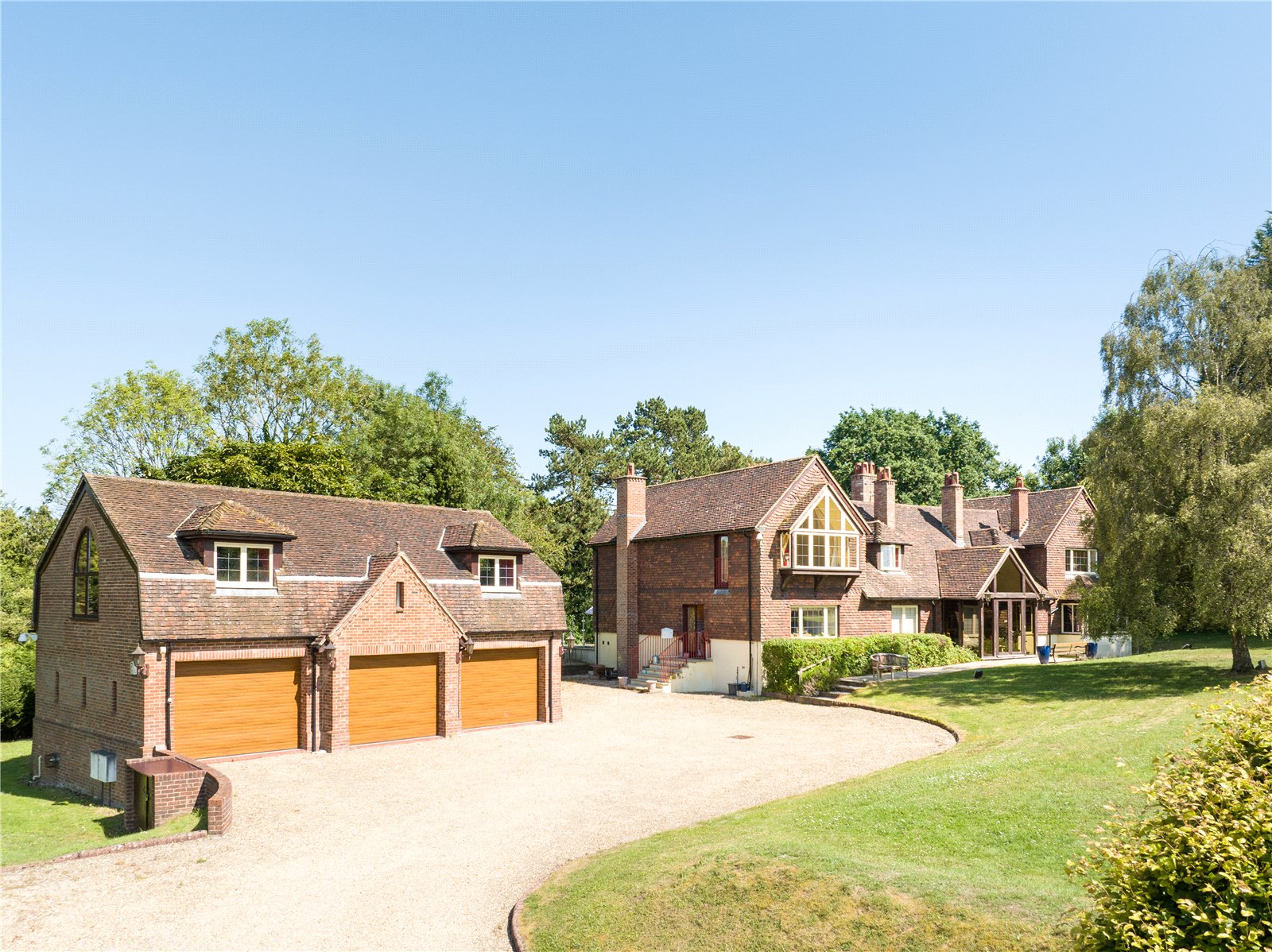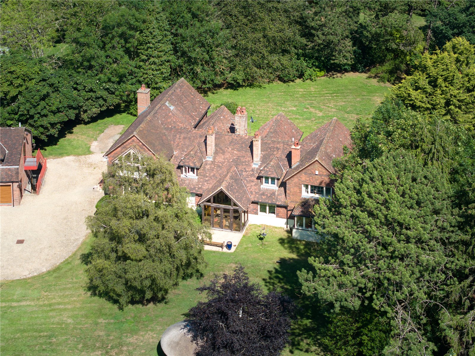 With just over 1.4 acres of land, the mainly laid to lawn garden is wrapped around the property with well-tended hedges and an array of pine and oak trees providing privacy and a natural enclosure, perfect for picnics, garden parties, or relaxing in the shade of the wooded grove.