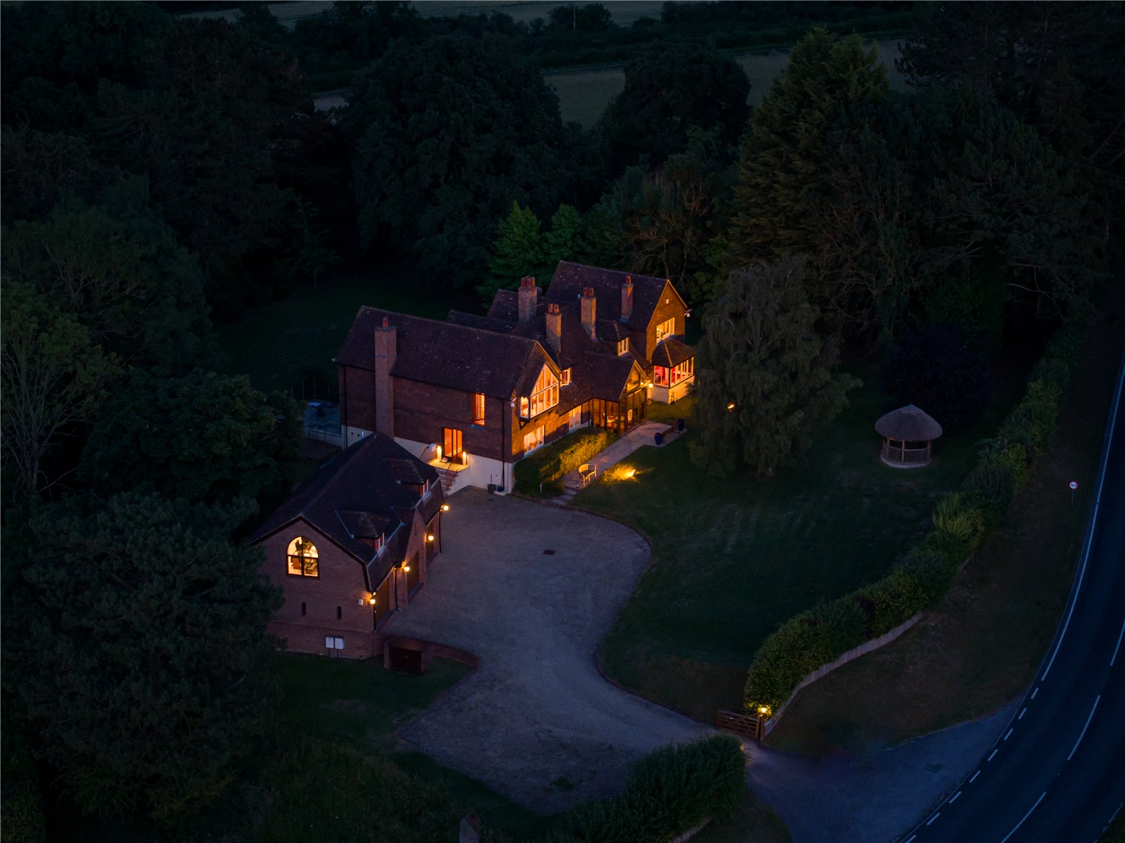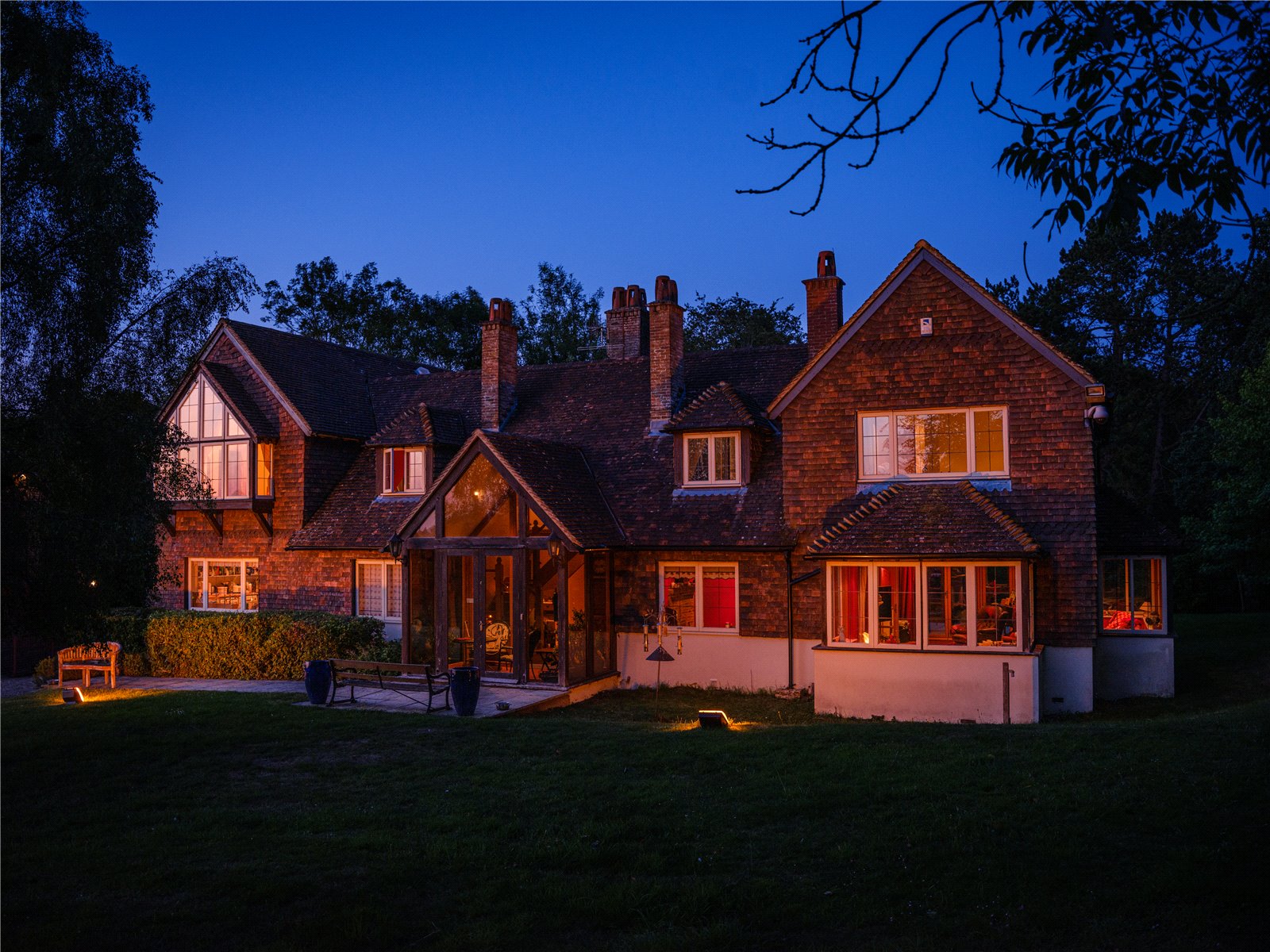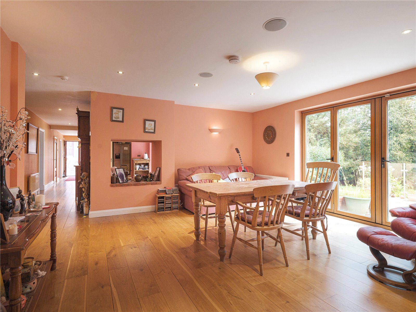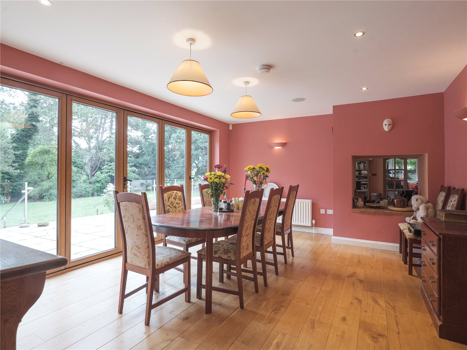 With just over 1.4 acres of land, the mainly laid to lawn garden is wrapped around the property with well-tended hedges and an array of pine and oak trees providing privacy and a natural enclosure, perfect for picnics, garden parties, or relaxing in the shade of the wooded grove.
