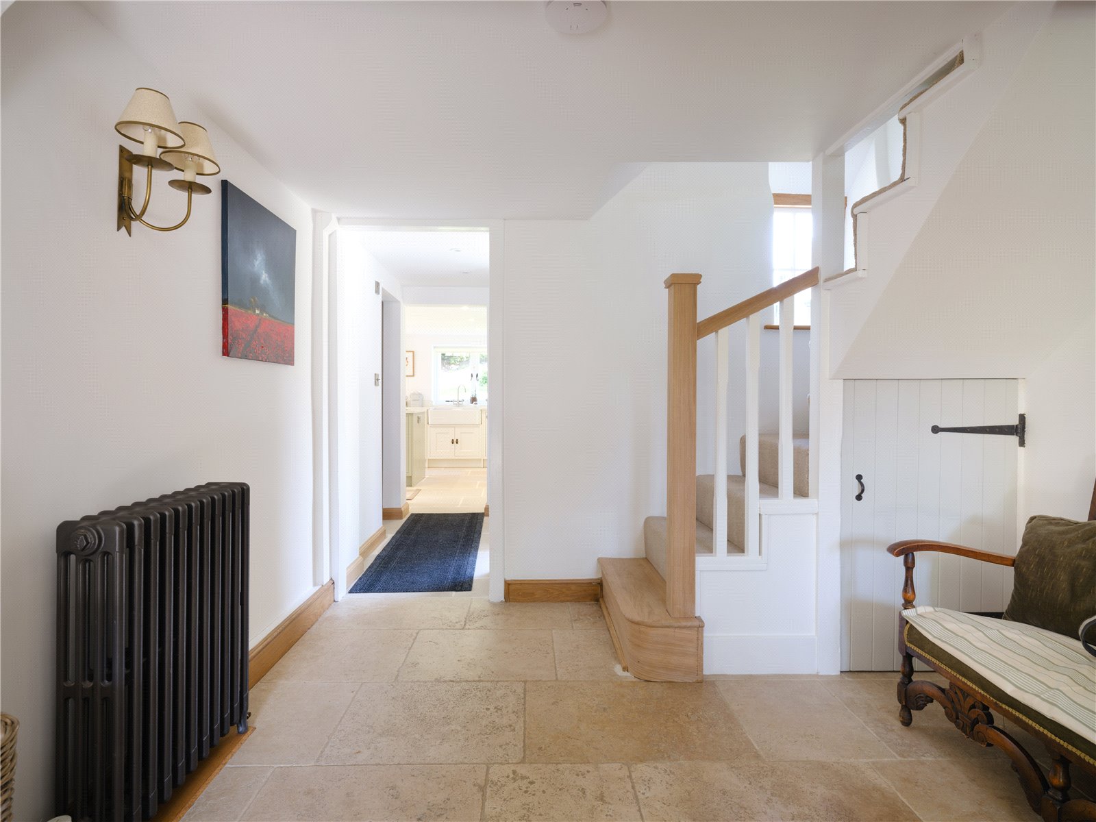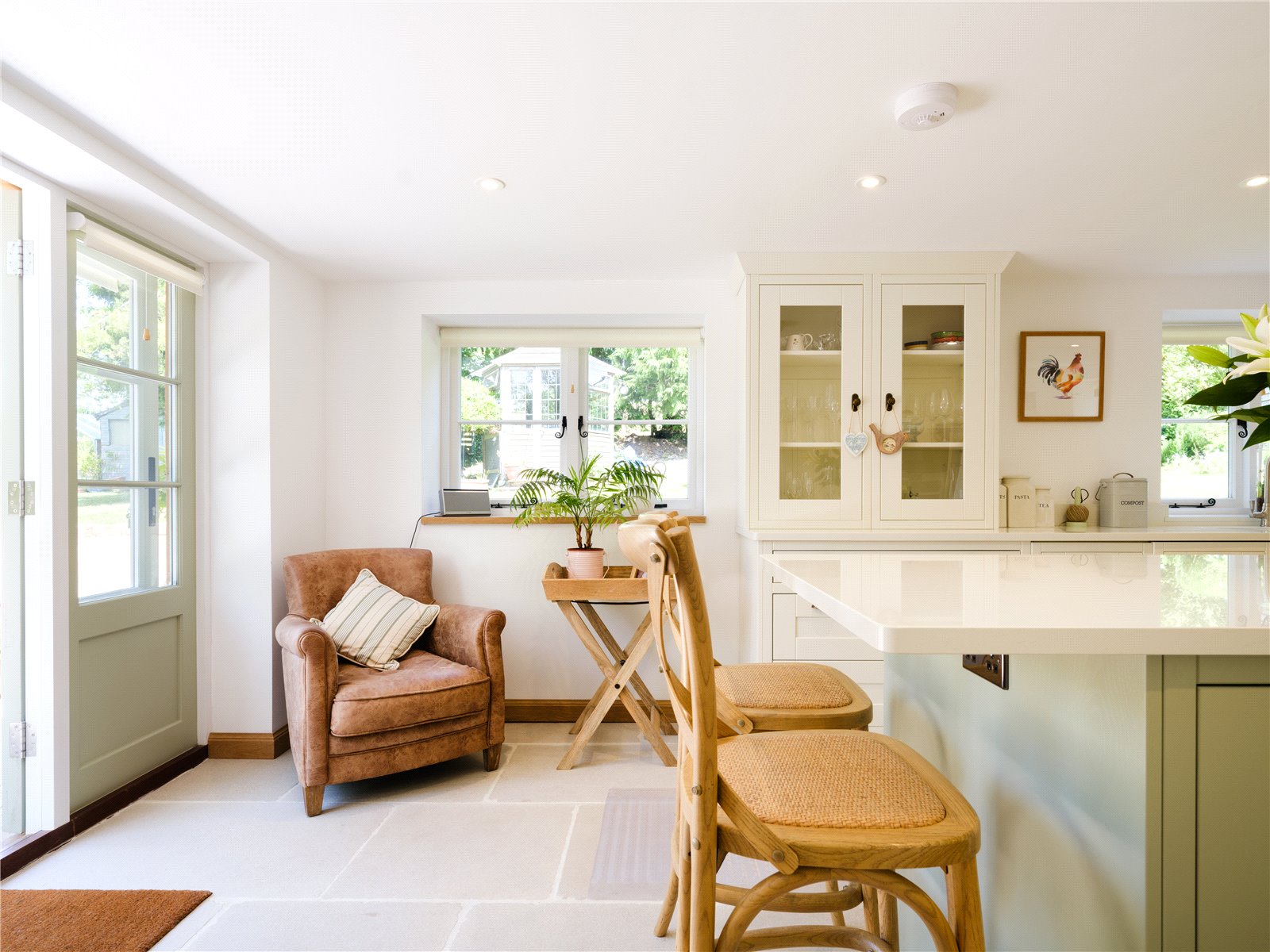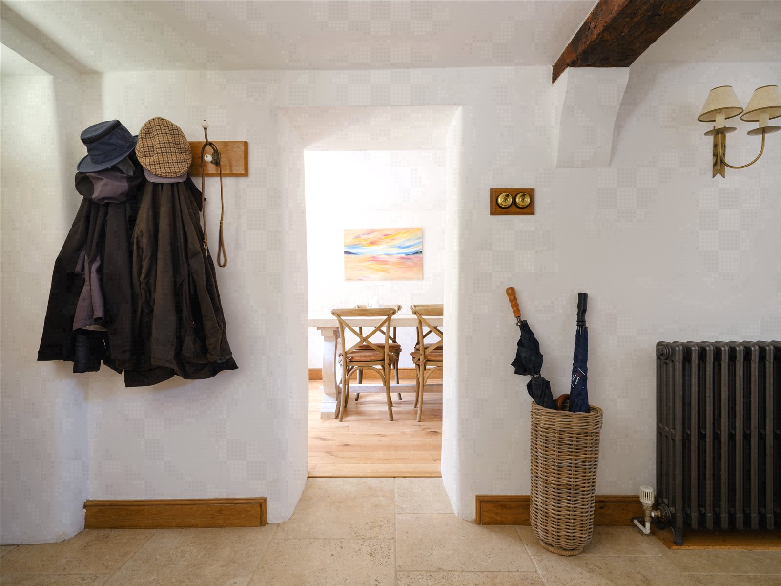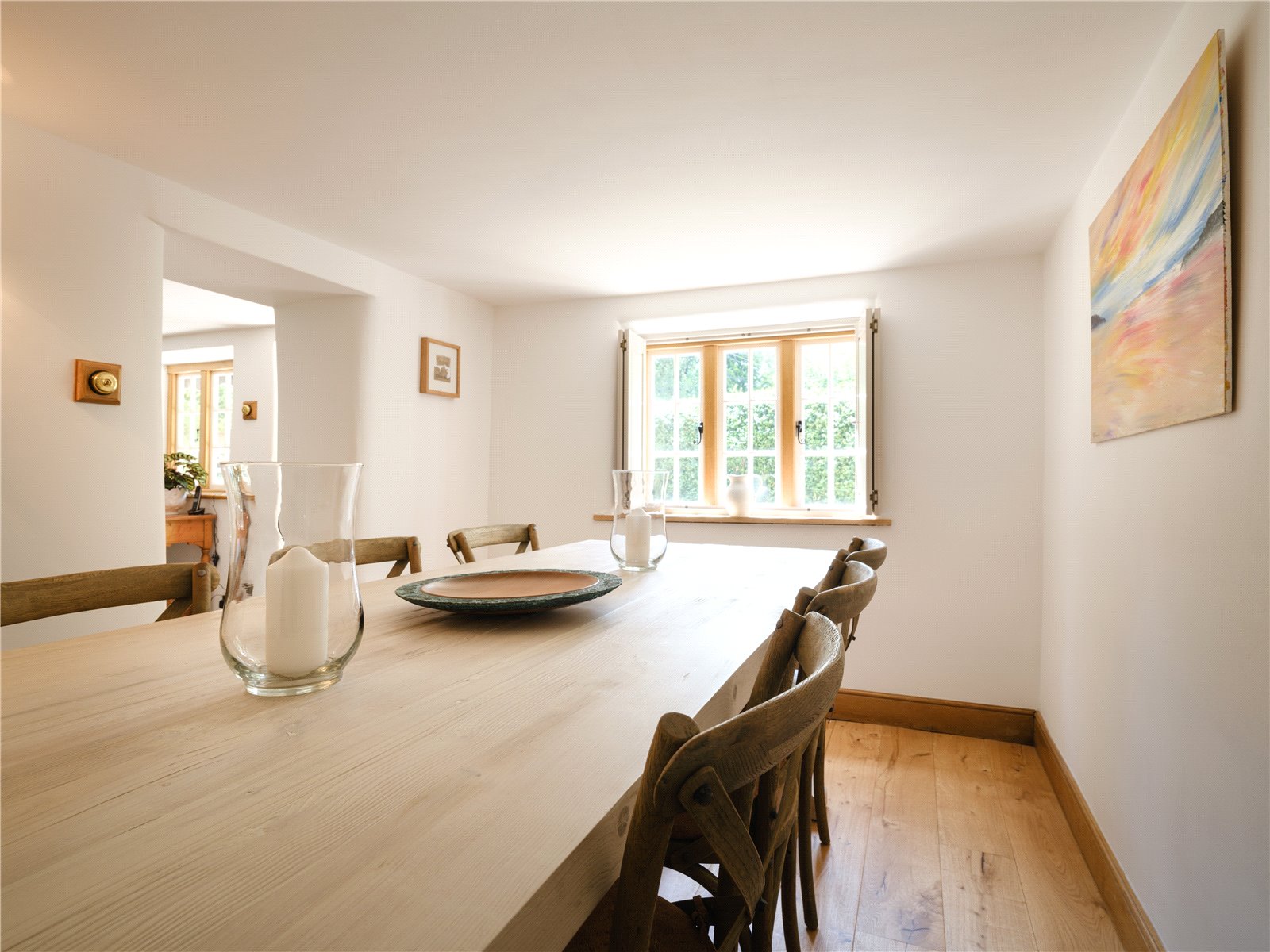 The light entrance hall sets the scene as you enter the grade II listed Fir Tree Cottage. One can immediately see the detail the current owners have gone to, with antique style brass light switches, reproduction cast-iron radiator and a contemporary palate combining seamlessly with the older traditional elements of the property such as the exposed timber beams. The well-presented sitting room features a gorgeous inglenook fireplace with exposed brick, fitted with log burner, perfect for those cosy evenings. The bright dining room is equally beautifully presented and features useful alcoves for storage. The kitchen here forms part of the recent extension, and combines a range of built in units with stone worktops. Double doors open onto the patio and a useful utility room is adjacent.