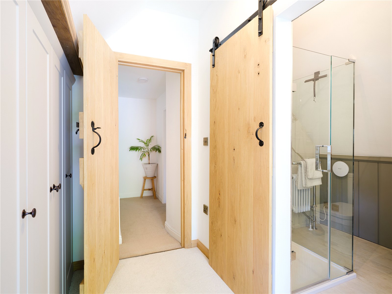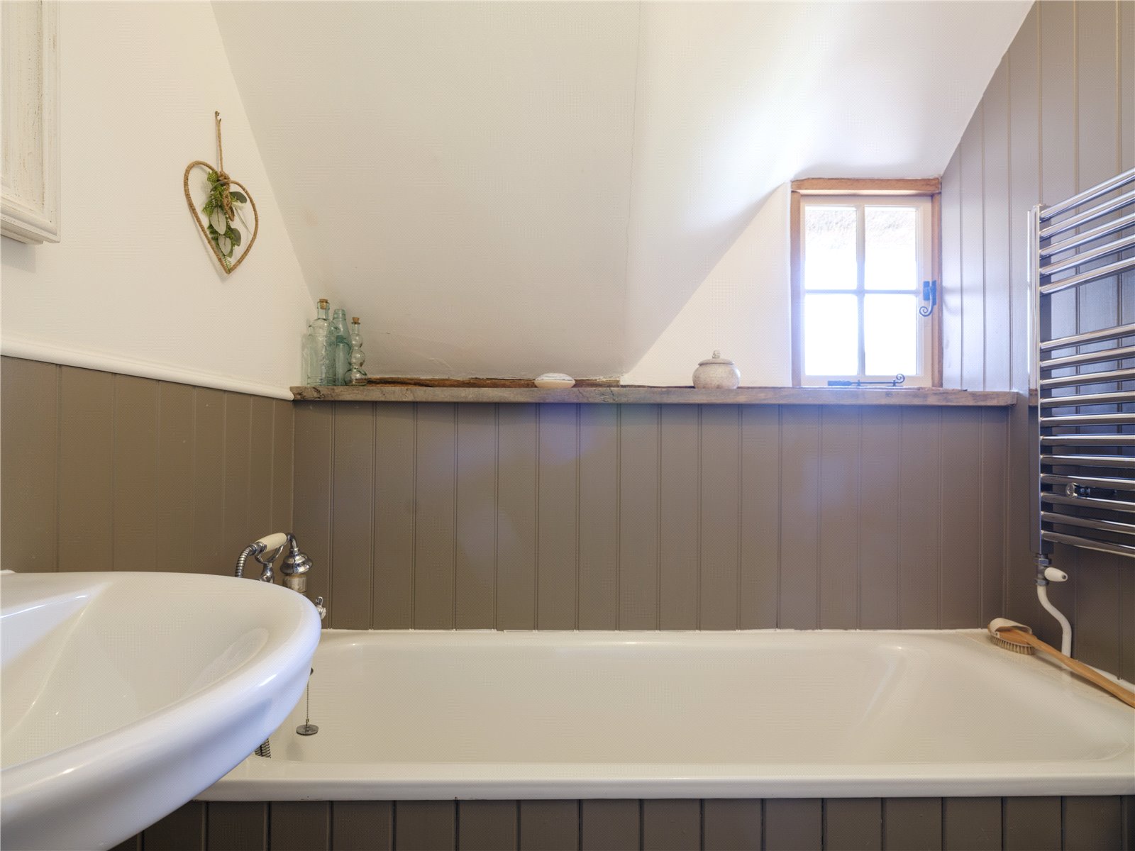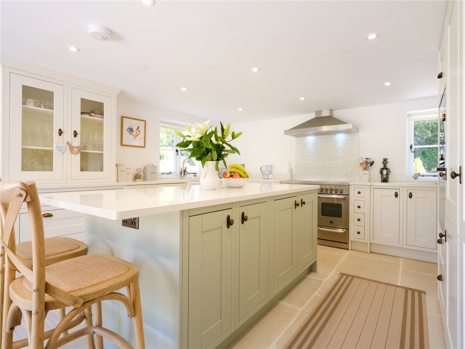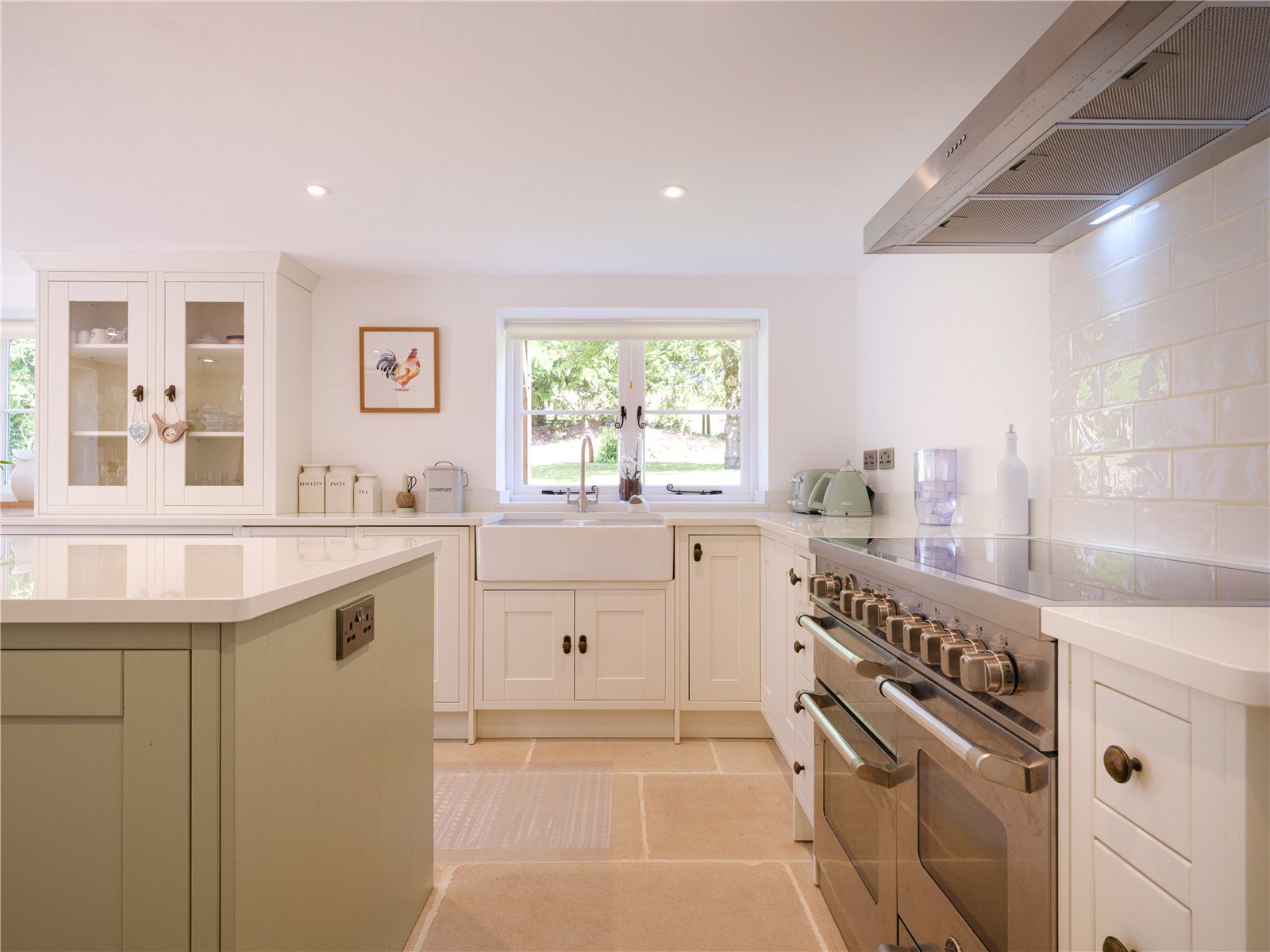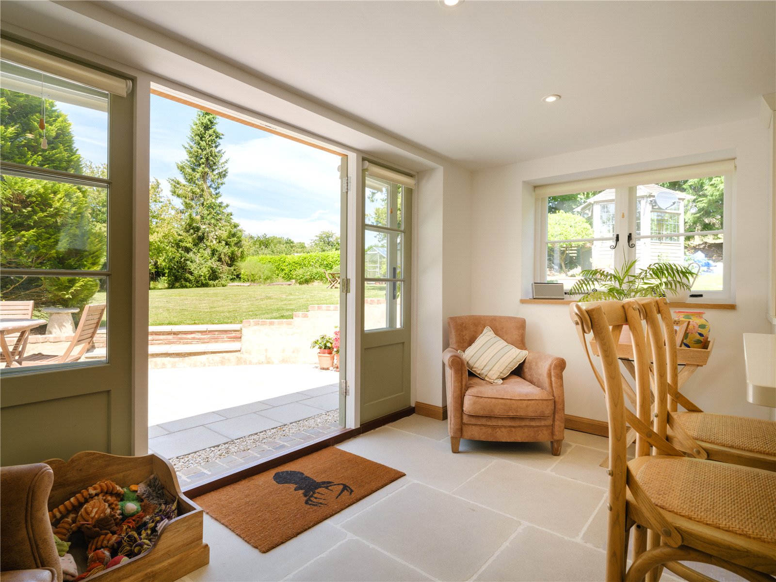 The light entrance hall sets the scene as you enter the grade II listed Fir Tree Cottage. One can immediately see the detail the current owners have gone to, with antique style brass light switches, reproduction cast-iron radiator and a contemporary palate combining seamlessly with the older traditional elements of the property such as the exposed timber beams. The well-presented sitting room features a gorgeous inglenook fireplace with exposed brick, fitted with log burner, perfect for those cosy evenings. The bright dining room is equally beautifully presented and features useful alcoves for storage. The kitchen here forms part of the recent extension, and combines a range of built in units with stone worktops. Double doors open onto the patio and a useful utility room is adjacent.