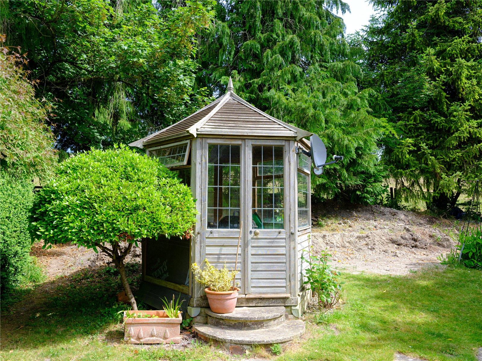 The property is discreetly positioned with hedging to the front offering excellent privacy. The gated driveway provides parking for several vehicles in addition to the single garage and double car port. The exquisite grounds extend to approximately 1/3 acre with a summer house and views towards the surrounding countryside.