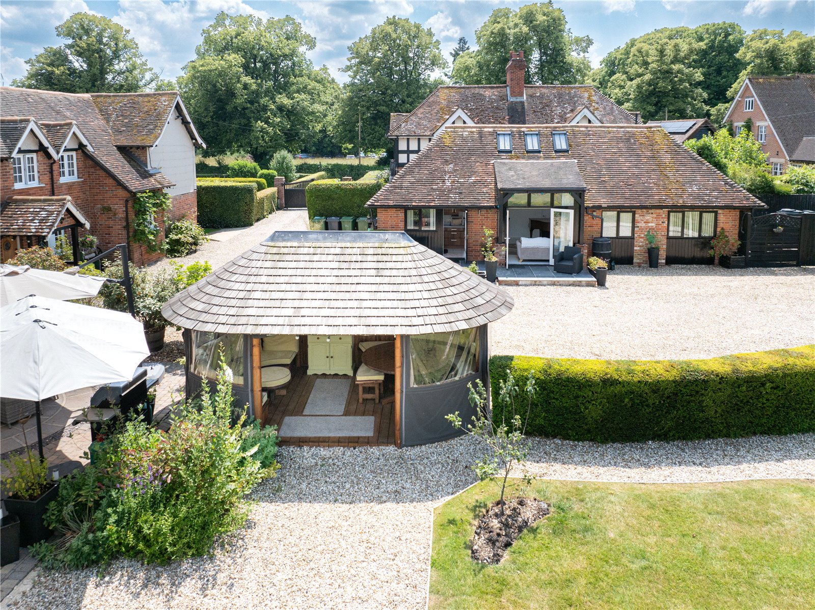 Fine & Country are delighted to have agreed the sale of this superb property totalling over 3700sqft and comprising of 4 bed main residence and 2 bed coach house. With a private gated setting within a popular West Berkshire village.