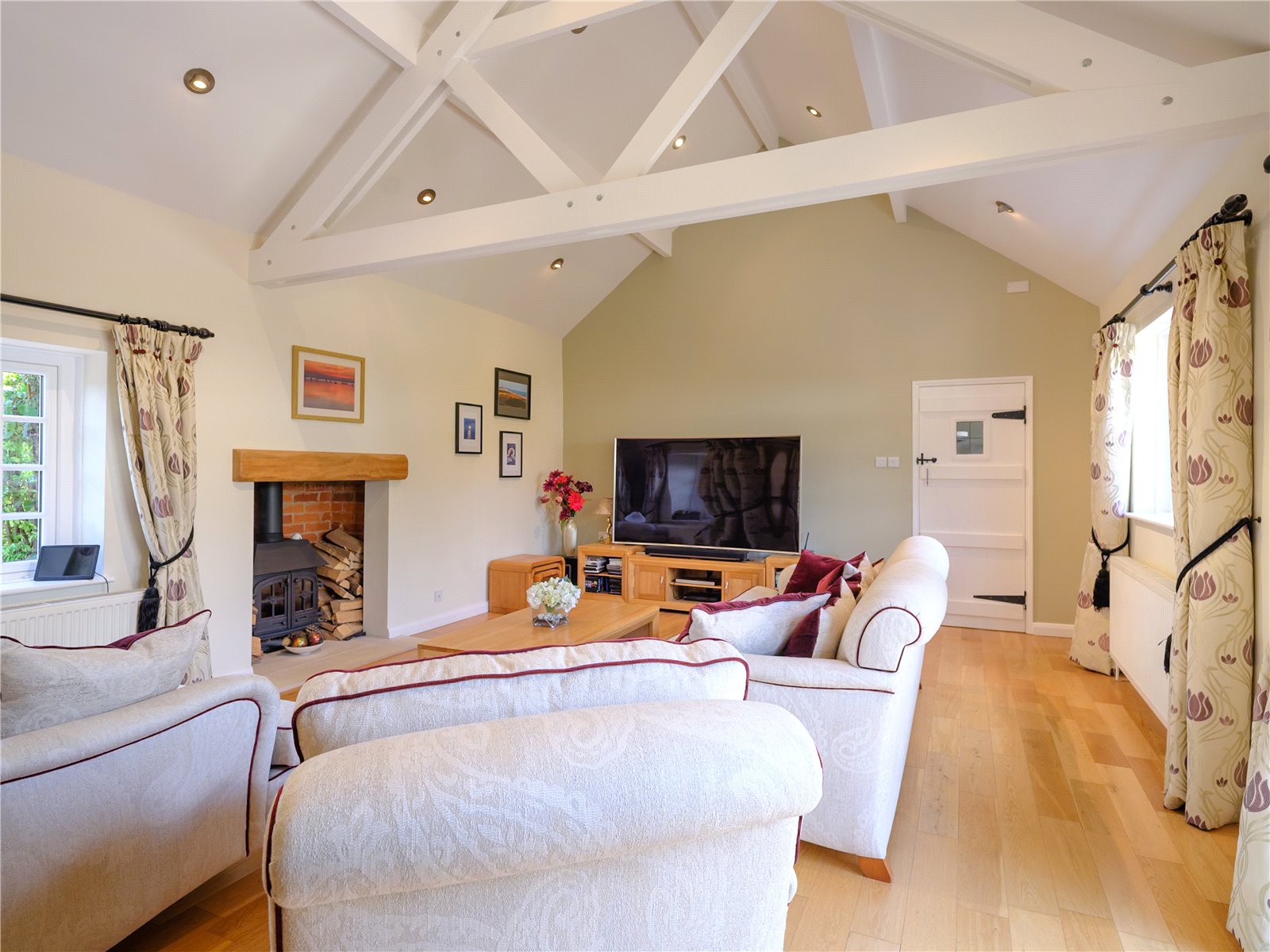 - Vaulted Sitting Room: A stunning double-aspect room featuring a wood-burning stove and access to the terrace and garden.