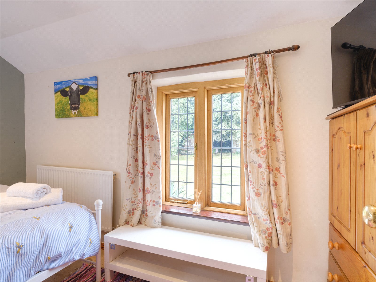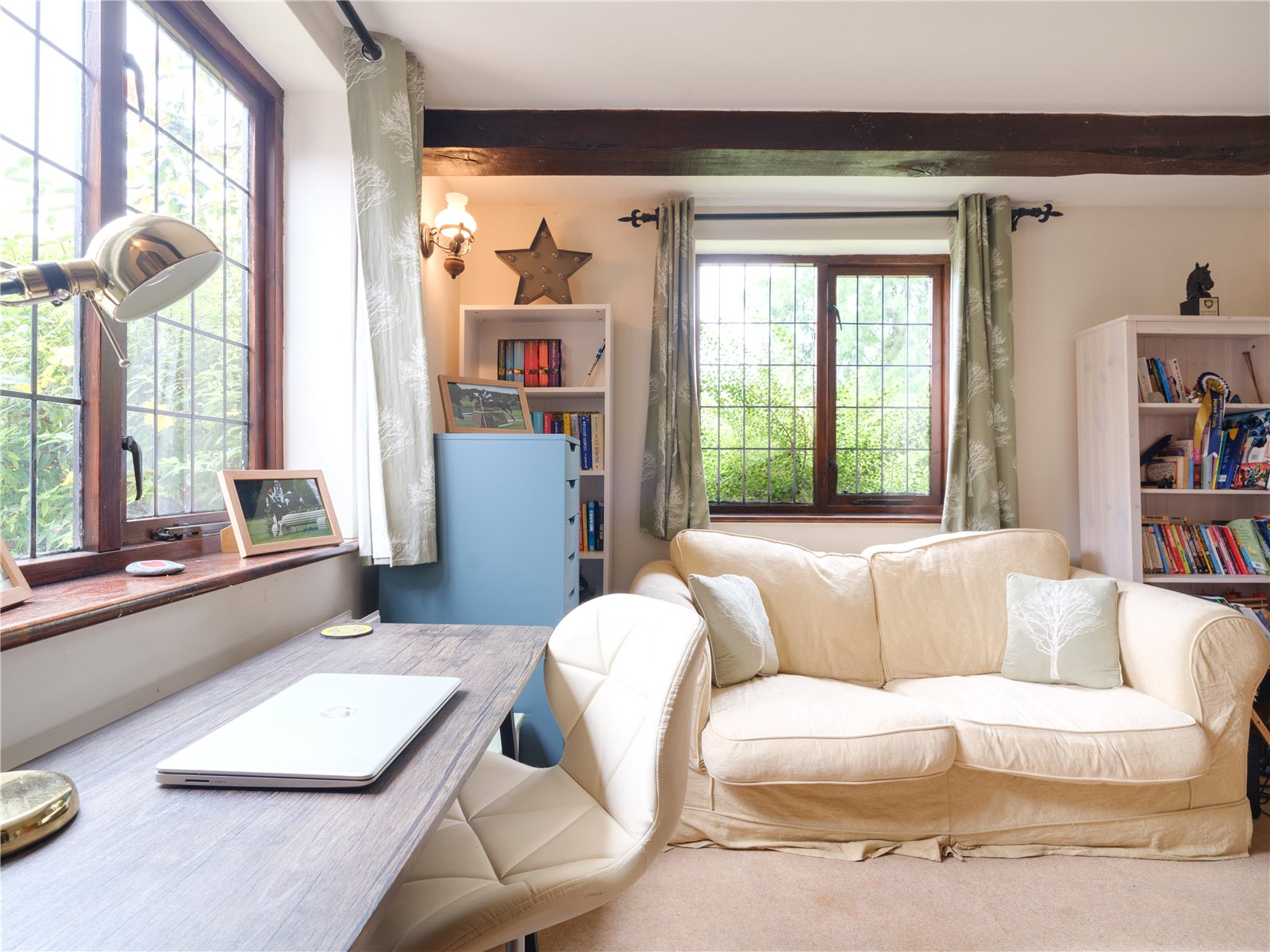 This is a hard question to answer as both the kitchen, the true hub of the house, and the sitting room, a great place for relaxing and/or entertaining, are contenders. I think I would have to go with the sitting room as it has such a great wood burner feature and offers superb flexibility with the French windows opening onto the patio and garden in the summer and the cosy feel with the fire on in the winter. We have spent many a happy evening in this special room and hope it continues to spread joy for the new inhabitants.
