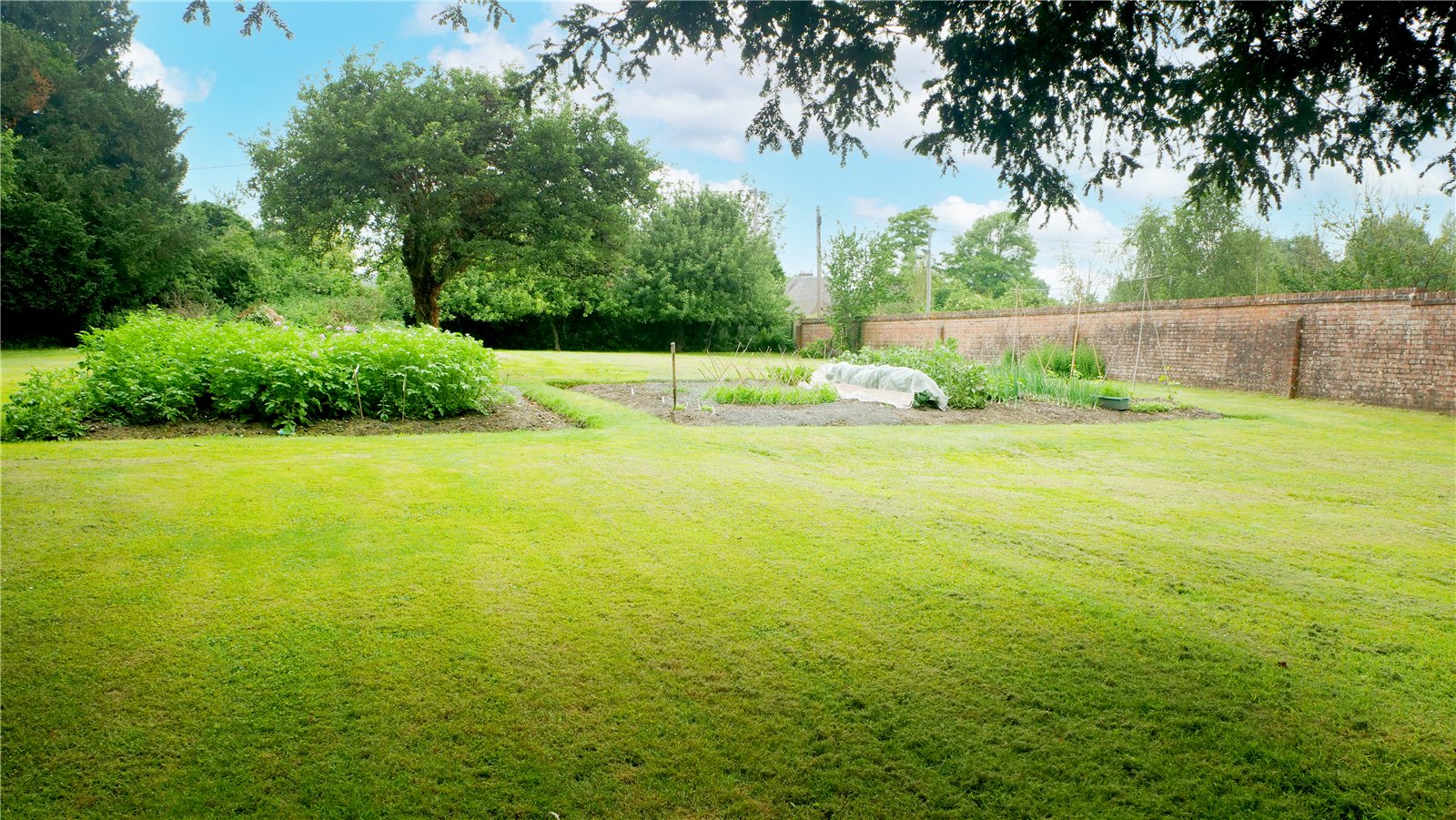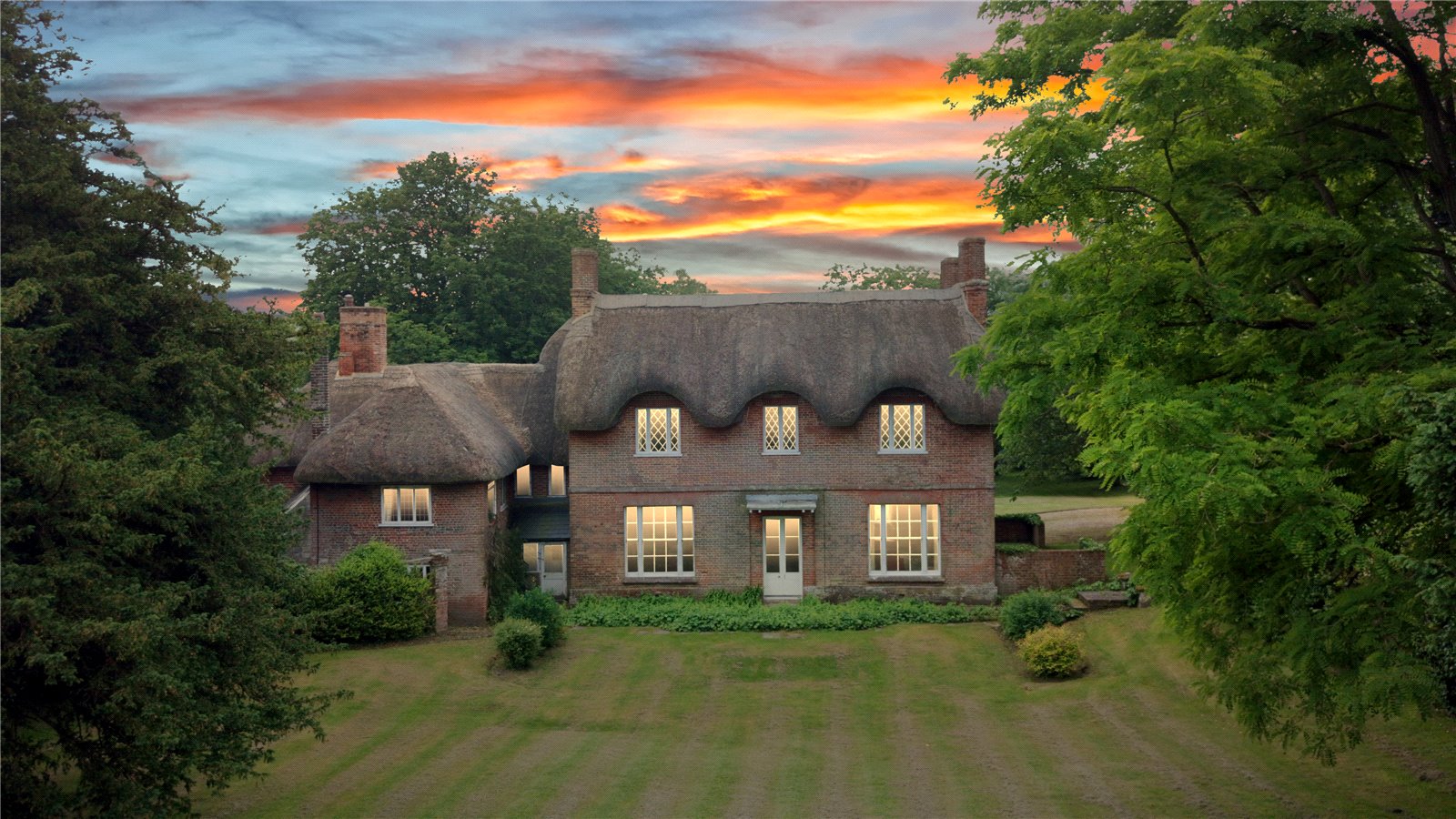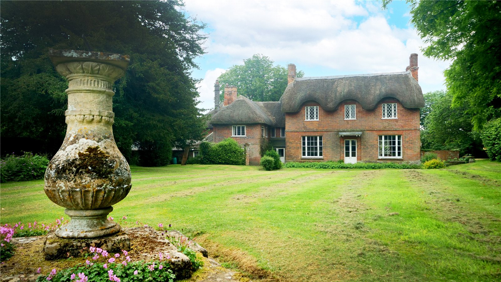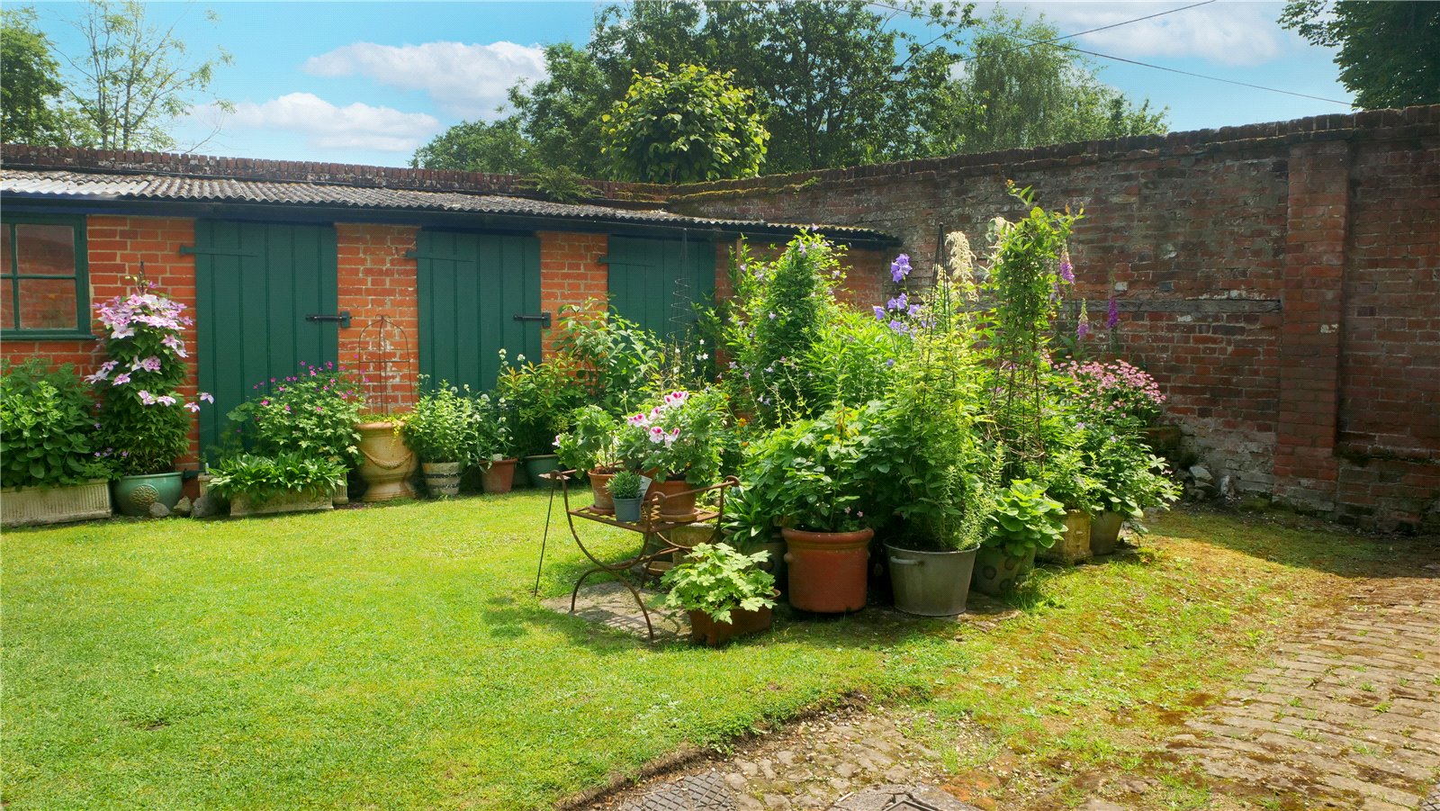 A five-bar gate opens onto a sarsen cobbled drive, with attractively pollarded lime trees and low garden wall. The front garden, known as 'The Orchard' contains several mature horse chestnuts and is enclosed on 2 sides by an attractive period brick wall. The rear gardens are also enclosed with beautiful walling, and comprise large vegetable garden, large formal lawned area with Georgian sundial, mature trees and separate paddock with gate at the far end. At the edge of the paddock lies a dilapidated barn with corrugated iron roof, which is in need of some repair, and is host to College Farm House's resident barn owl. A thatched garage off the driveway provides covered parking for one small vehicle plus storage for garden machinery. The pretty courtyard garden is surrounded by external stores that could be developed further subject to the necessary consents.