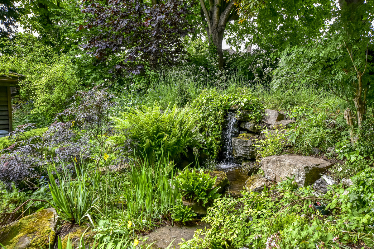 Stepping outside, the secluded, landscaped gardens are magical, with a waterfall and tranquil wildlife pond and a wisteria and rose-clad pergola providing A Secret Garden for outdoor enjoyment.