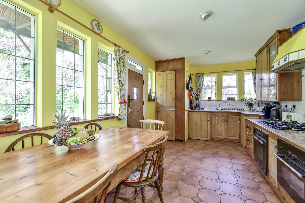 Through the oak front door of this ‘chocolate box’ cottage, draped with roses and wisteria, is a spacious entrance hall, leading into a beautifully-appointed home. It features three bedrooms, two bathrooms and three reception rooms. The heart of this home is a country-style kitchen breakfast room, large enough for everyday dining.