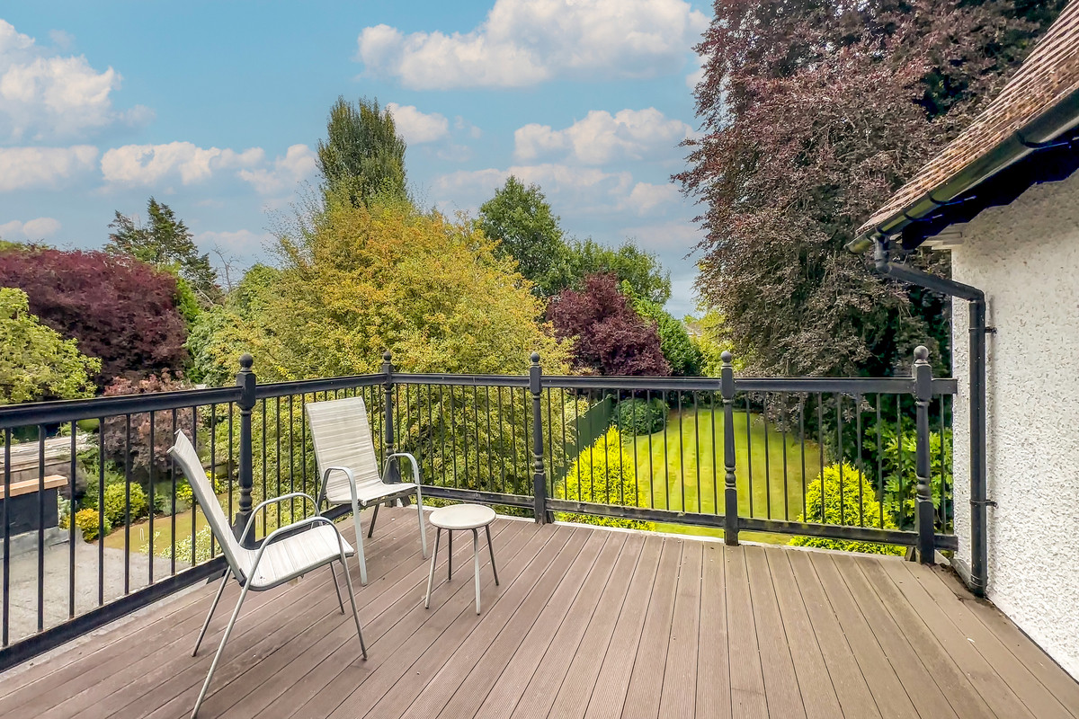 A stunning roof terrace overlooks the beautifully maintained 150ft rear garden, offering a serene retreat. The garden itself is mainly laid to lawn, with a patio seating area directly off the reception room and a fire pit for cosy evenings outdoors.