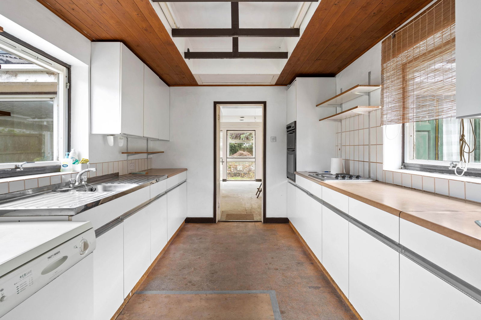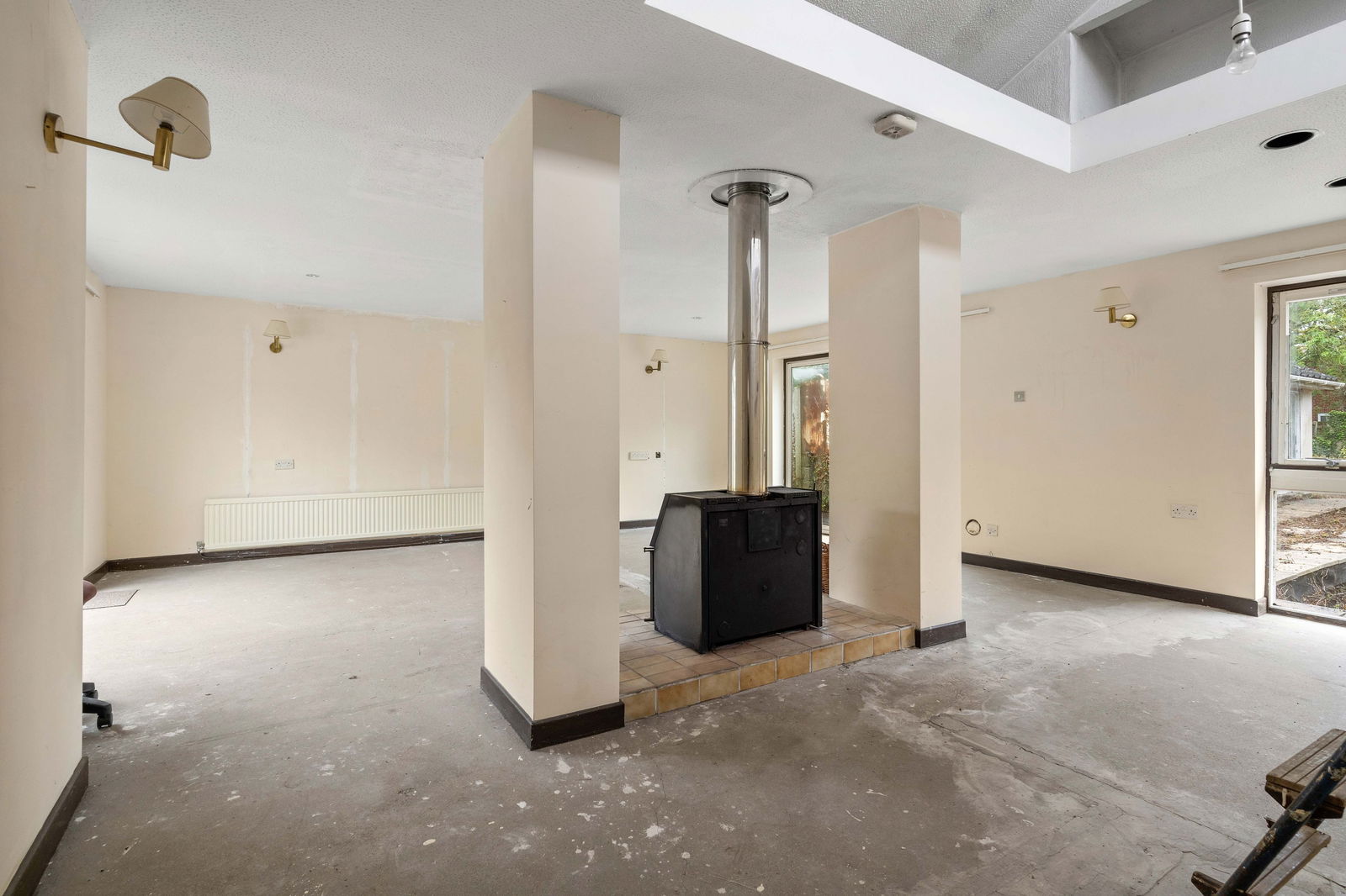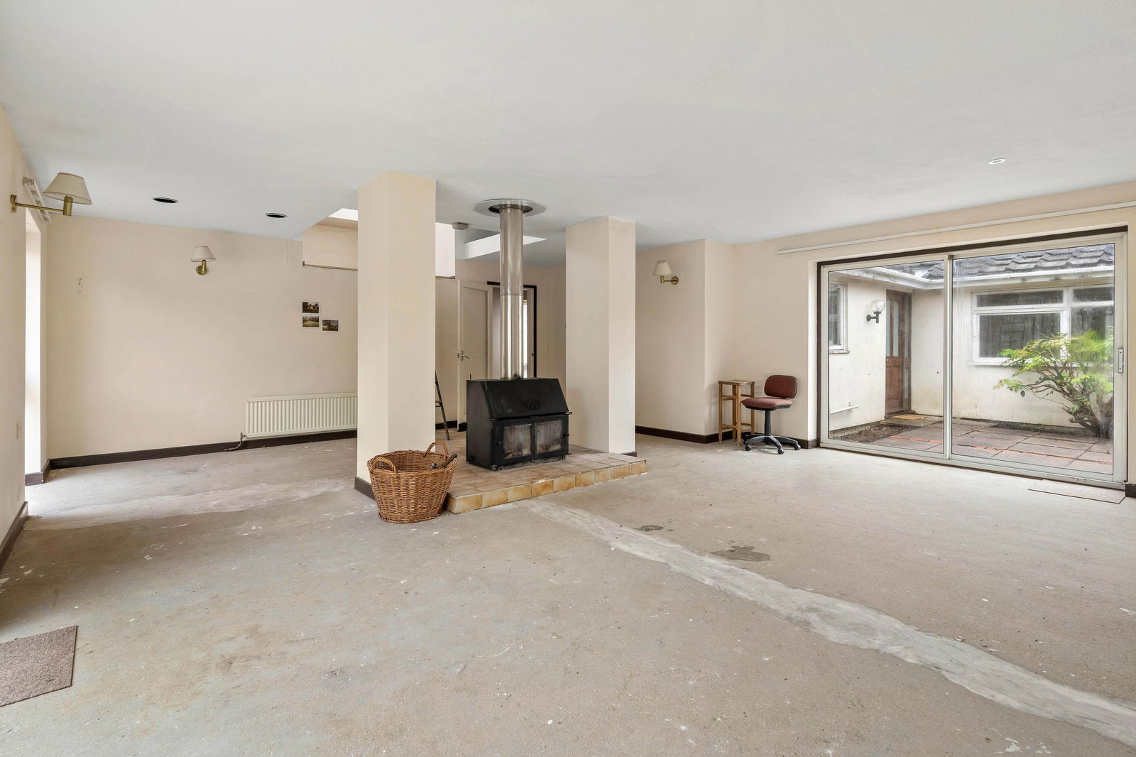 Step inside Swatchways, into a generous entrance hall leading to the third bedroom, cloakroom, and spectacular, partially vaulted living/ dining room. The living room has full height sliding doors on two sides which look out onto both the private internal courtyard and the 130’ rear garden, making it a light and airy space. The living room is separated from the dining room by a woodburning stove and above the dining area, the ‘studio’ can be found. The architect who lived here and designed the substantial extension to the original house, worked from this upper space whilst enjoying the far-reaching views of the river and beyond. The living/dining room provides access to the kitchen and out, through a separate door to the inner courtyard. This additional outdoor area provides a quiet and private space for informal outdoor dining. The inner hallway leads on from the kitchen to the principal bedroom, enjoying the privacy of the courtyard. A further bedroom, bathroom, shower room, utility cupboard, boiler cupboard and large storage cupboard can be found along the hallway in addition to the internal access to the double garage.