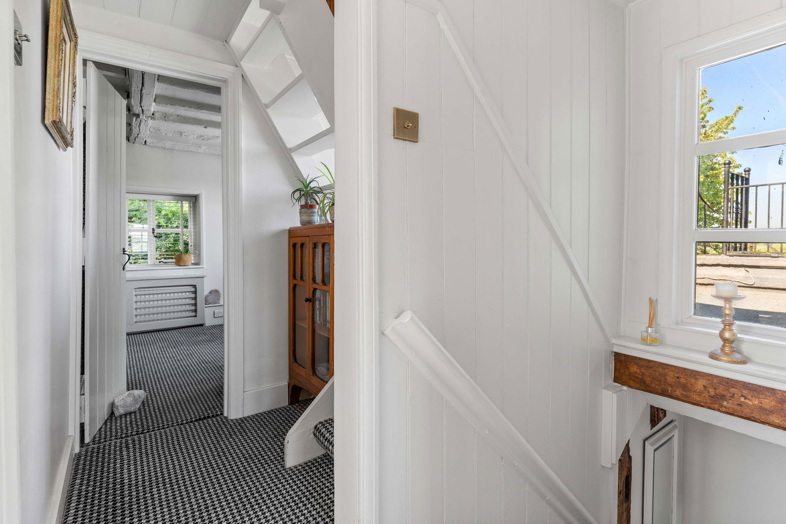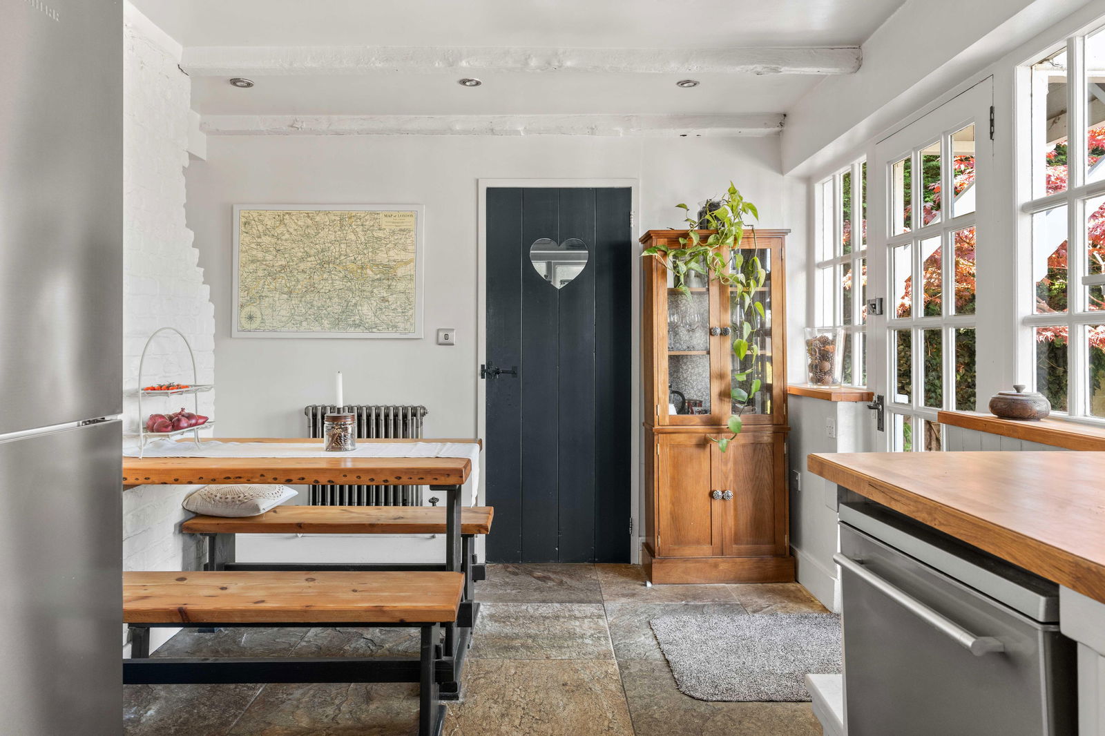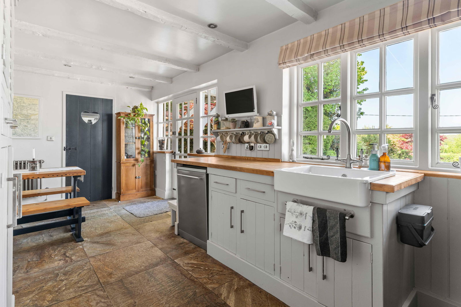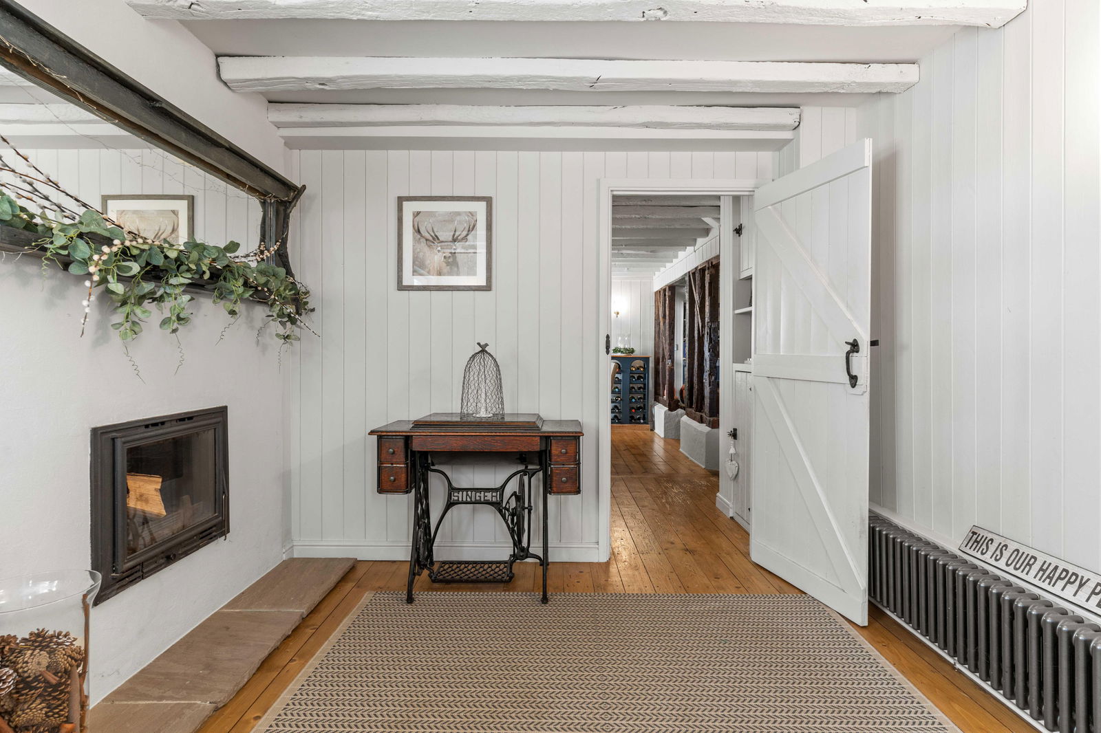 A welcoming reception vestibule greets you with wood flooring and a cosy log-burning stove, setting the tone for the rest of the home. A ground floor cloakroom/wc adds practicality. Throughout the interior, original ledge and brace doors, restored exposed beams and cast iron radiators enhance the character and authenticity of the residence. The kitchen is equipped with a range of traditional units, solid wood work surfaces classic range cooker and is filled with natural light with a breakfast area and separate utility room. There is a natural stone floor with an external door leading out to the beautiful terraced garden. To the first floor steps lead into the bedroom area with the principal bedroom with dressing area and stylish shower room. There is a bathroom with separate shower and further double bedroom. A unique feature is the converted roof terrace offering a tranquil retreat, perfect for unwinding with a book or a drink while enjoying panoramic views of the beautifully landscaped garden and the serene countryside stretching out in the distance. A spiral staircase leads down to the garden. In the house a further level offers another bedroom and dressing room. The Annex features a sitting room with patio doors, fitted kitchen, shower room and double bedroom. Please note: The third bedroom is used as a guest bedroom and the fourth bedroom is in the Annex.