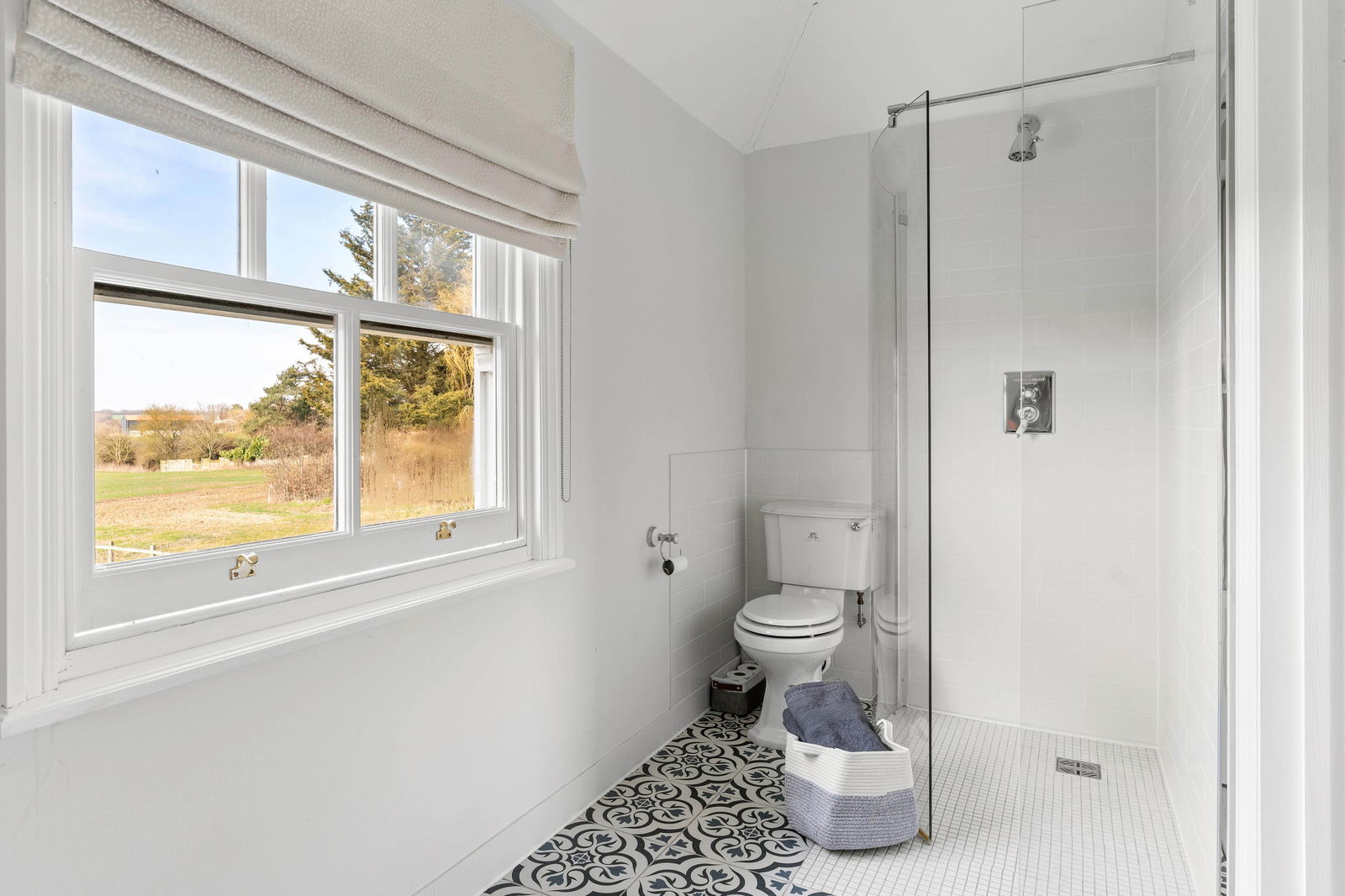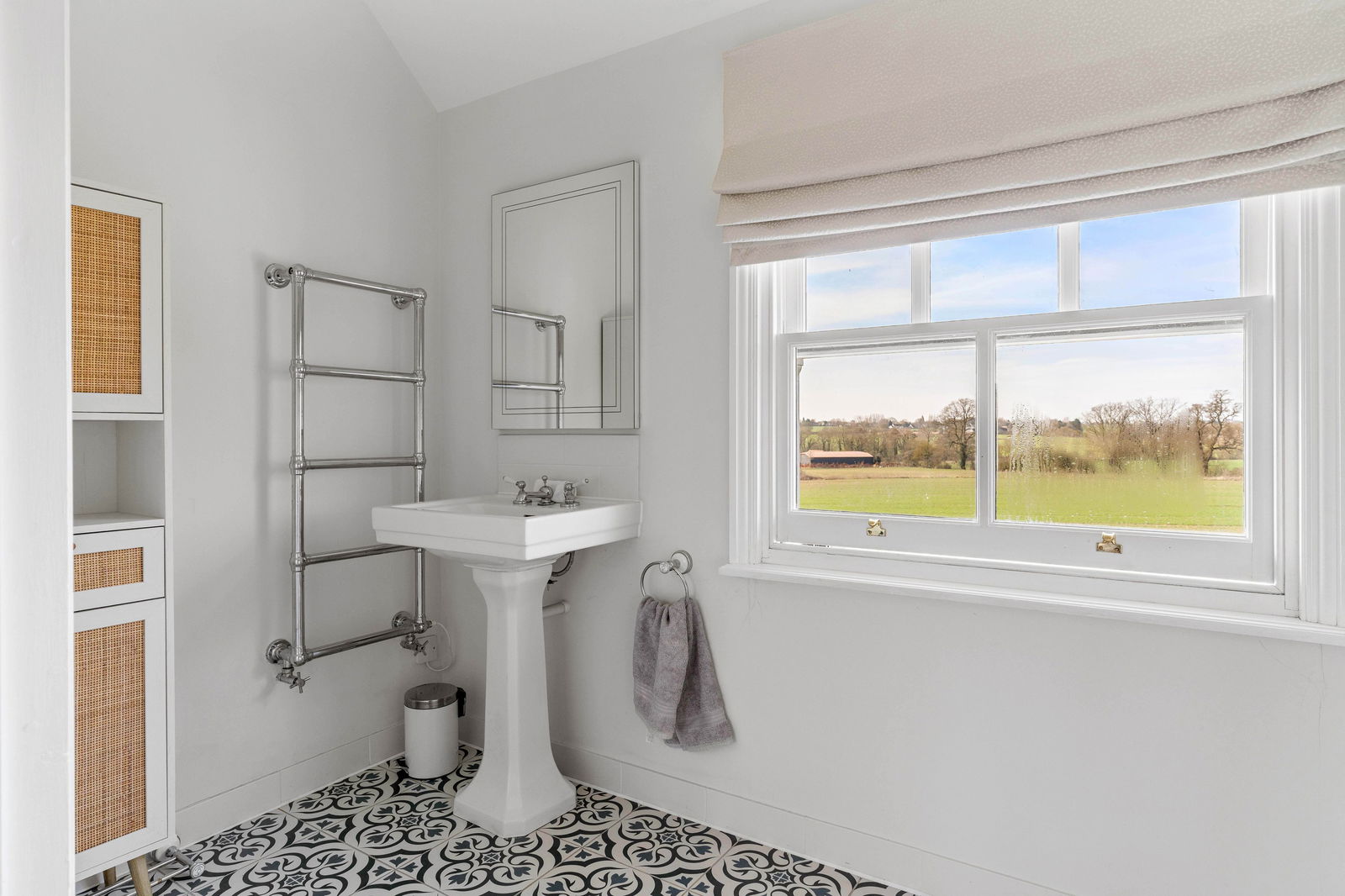 To the first floor the principal bedroom offers a spacious en-suite shower room. There are three further spacious double bedrooms, one with dual-aspect bay windows, together with a further en-suite shower room together with a family bathroom. The property features stylish décor throughout, original features such as fireplaces and generous sized windows and doors allowing natural light to flood into the interior space. The countryside views are just stunning.