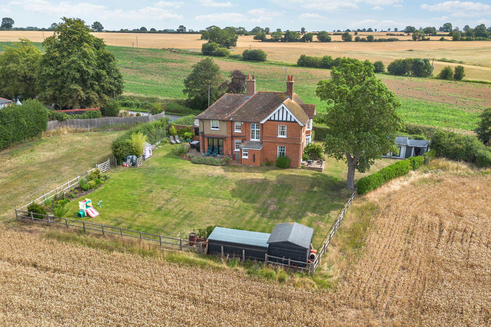 A beautiful red brick detached country residence with panoramic views over open countryside. Offered with no onward chain on a plot of approximately a third of an acre (STS) within easy reach of Chelmsford City Centre, Felsted and the Walthams.