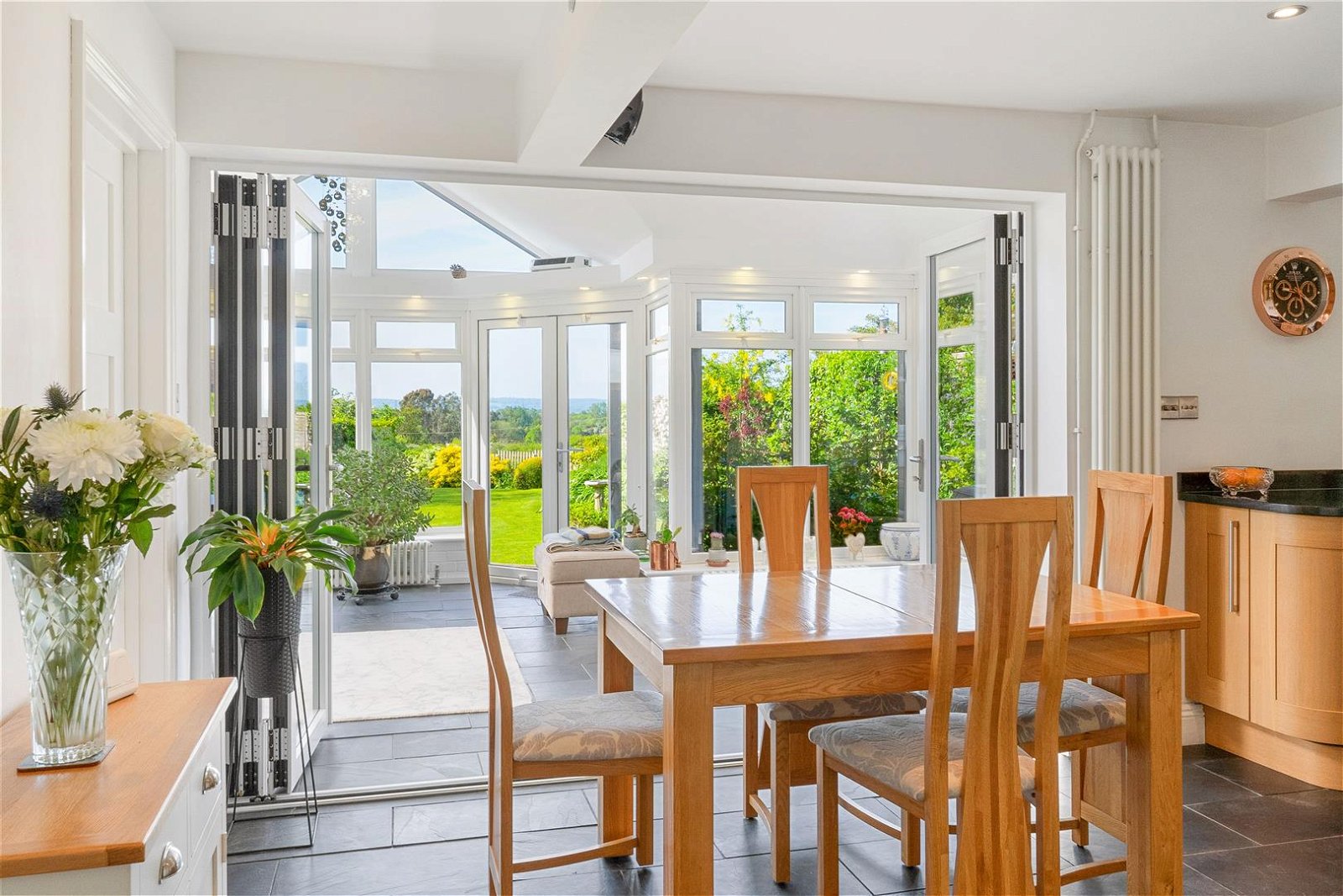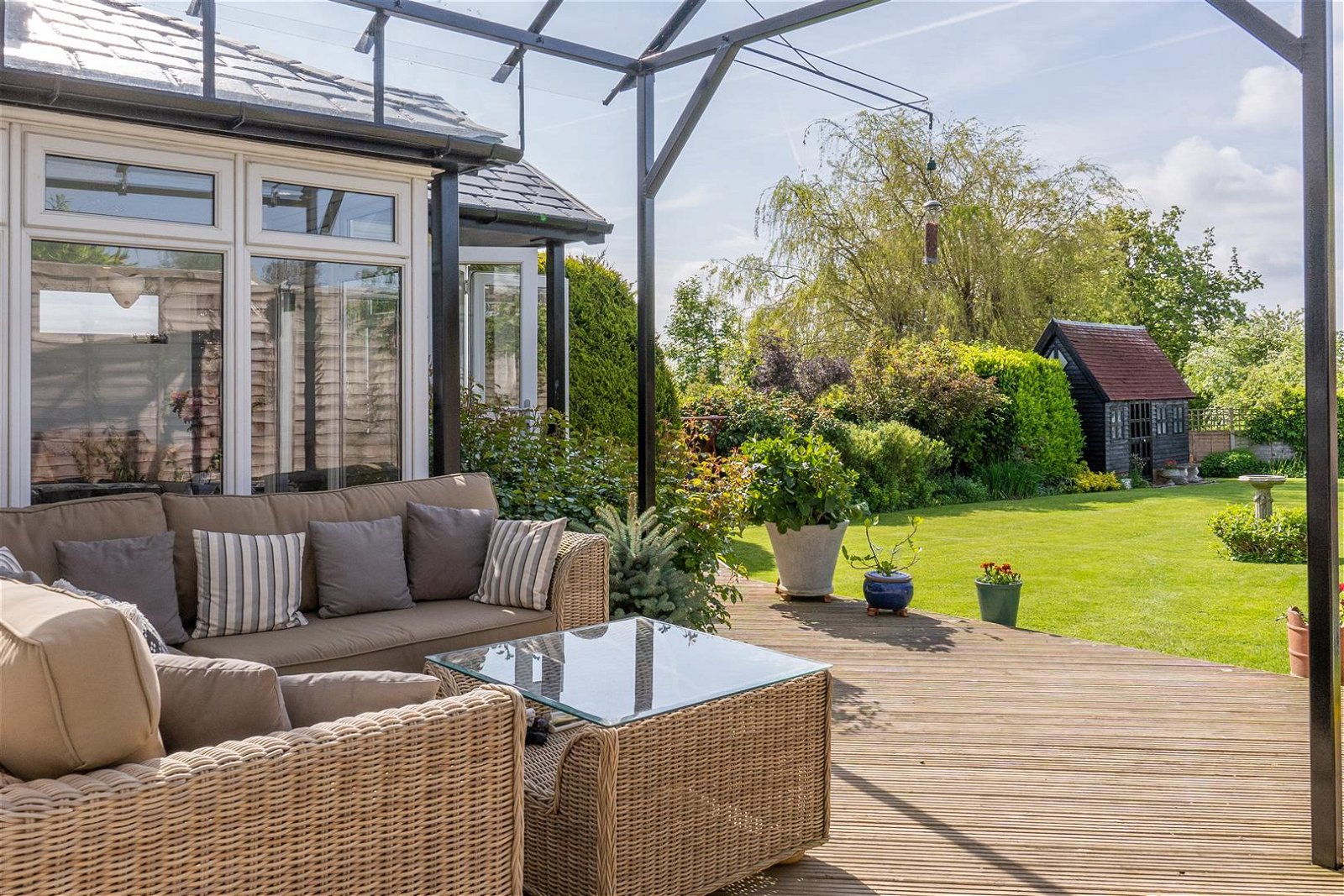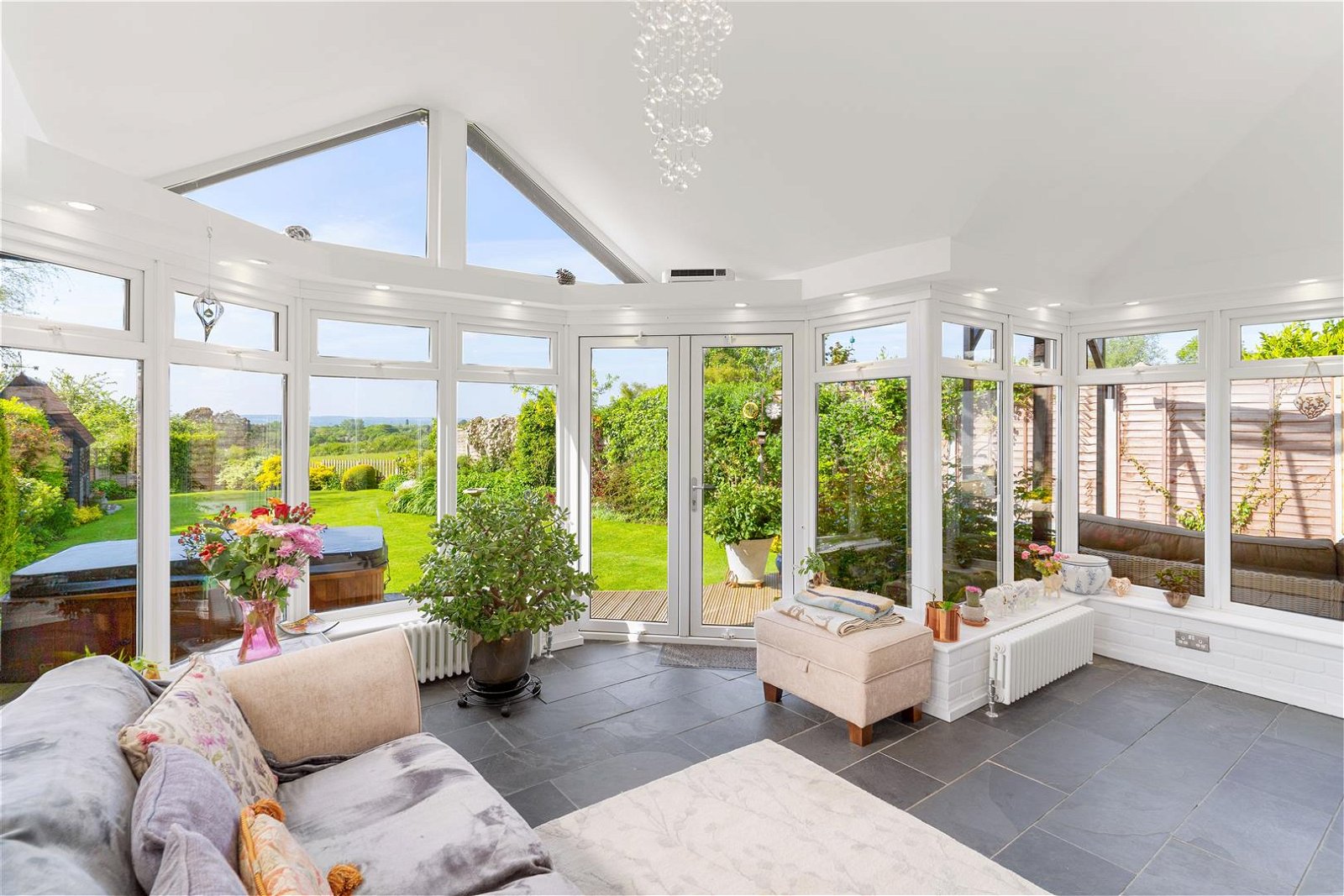 Step outside at Coppercoin House, and you will see that to the rear is a lovely 90ft rear garden, the impressive and immaculately kept rear garden is predominantly laid to lawn with mature flower and shrub borders. Immediately to the rear of the property is a raised decked entertaining area, including a glass roofed seating area with electrically operated sun canopy, and power and space for a hot tub. Gated storage area. Large wooden storage shed to remain to the rear of the garden. Open views to the rear of the garden over meadow and countryside beyond. To the front is a large bloc paved driveway with parking for several vehicles. The oil tank is located to the side of the house.