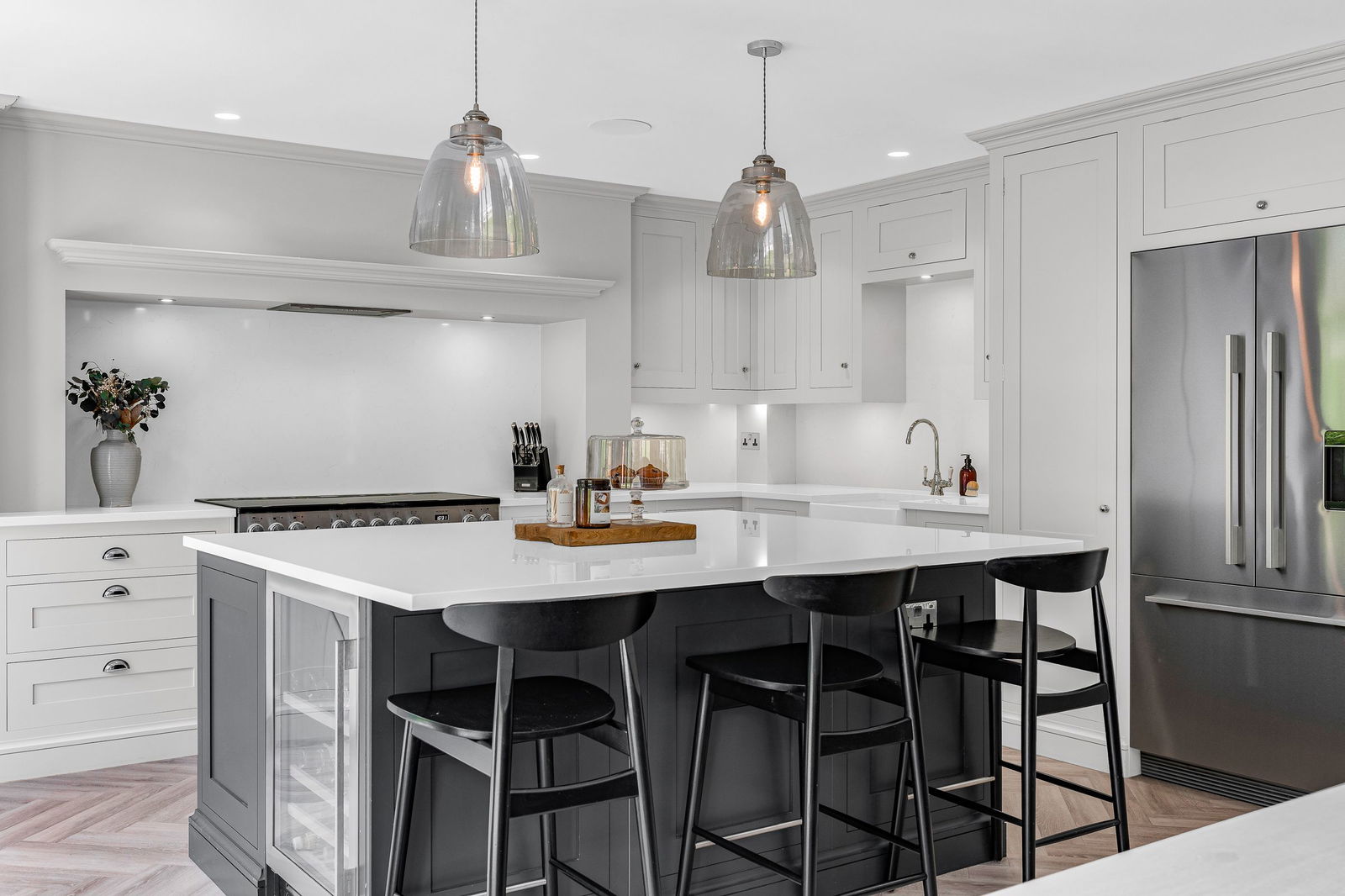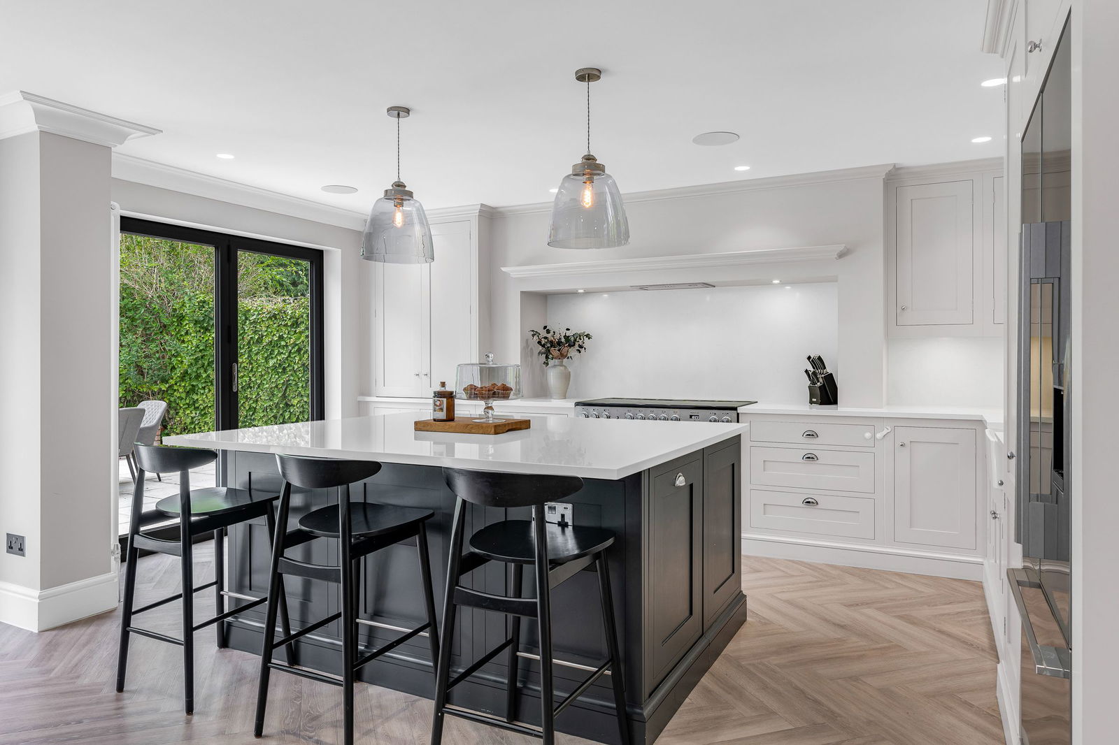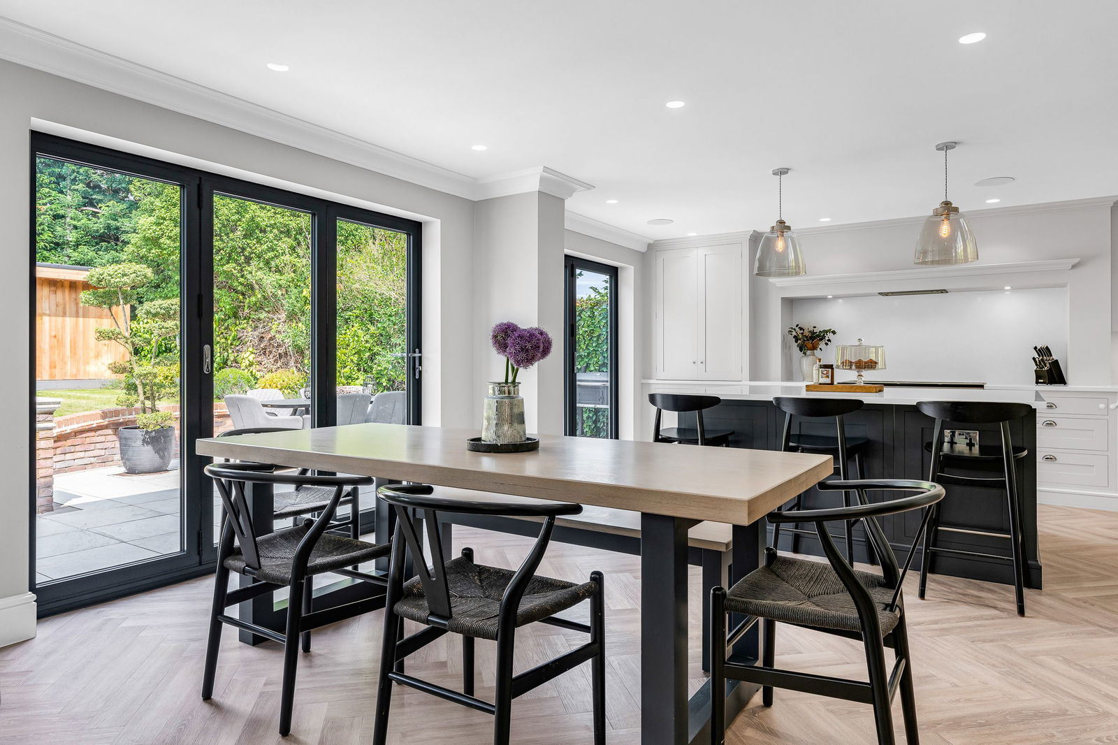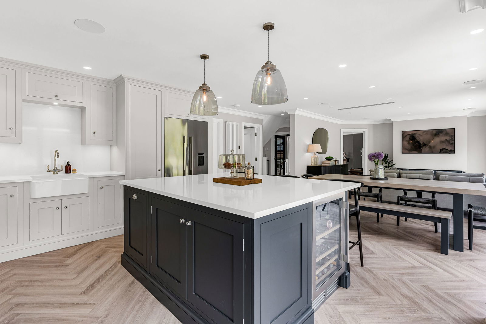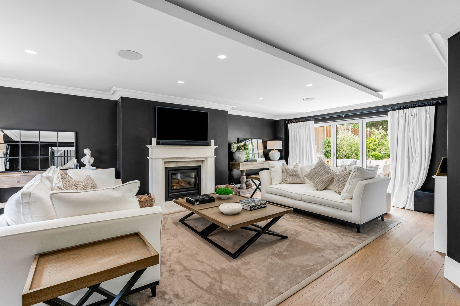 Step inside to the welcoming entrance hall which connects the core of the ground floor accommodation. The magnificent Living Room with dual aspect features a coffered ceiling and impressive fireplace. The open plan kitchen, dining & family room has three sets of bi-fold doors to the rear garden, perfect for gatherings. A dedicated large study provides the ideal space for work or quiet reflection. There is a Playroom and ground floor WC.