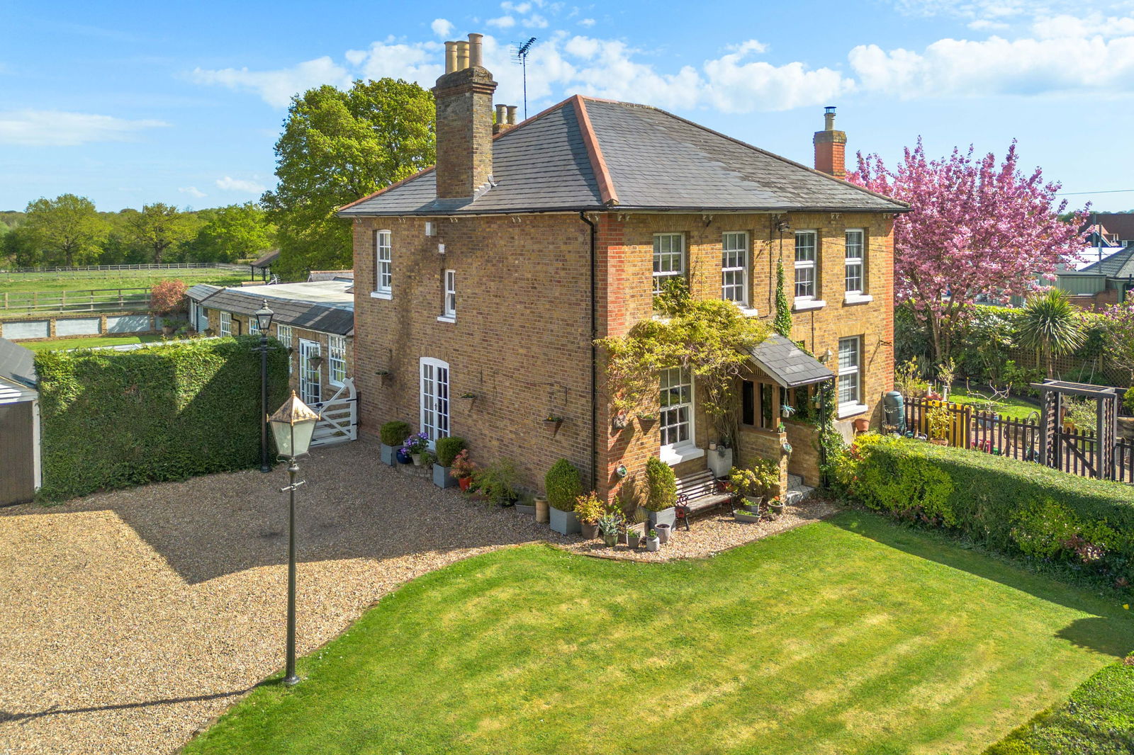 The current owners have added the ground floor bedroom, a bathroom and study/home office over recent years, having maintained the property in excellent order with a new roof around three years ago. A gated access with lantern lighting leads into the sweeping gravel driveway providing ample parking and access to the garaging, a double and separate single with pitched roof to each, offering storage, together with soft landscaping and an area of lawn. There is a front entrance which leads into a living room with stairs to the first floor with stair runner. The current owners use the double doors to access the property into the kitchen/breakfast room which is the heart of the home with farmhouse style bespoke design, a range cooker inset within an exposed brick surround, butler sink, dresser style unit and a feature high ceiling – the kitchen creates a welcoming space for breakfast dining and entertaining. To one side there is beautifully appointed sitting room with a feature brick open fireplace, wood flooring and French doors. Beyond the kitchen is an inner hallway giving access to a double bedroom, a ground floor bathroom which has been tastefully styled with a freestanding bath, separate shower and classical tiling. There is also a study. To the first floor is the principal bedroom with two sash windows to the front aspect with traditional floorboards, ample fitted wardrobes, two further bedrooms and a stylish shower room.