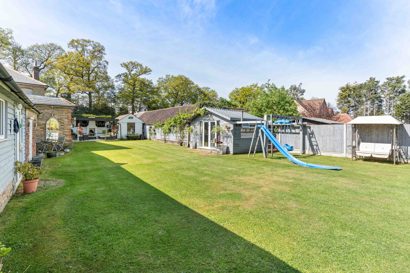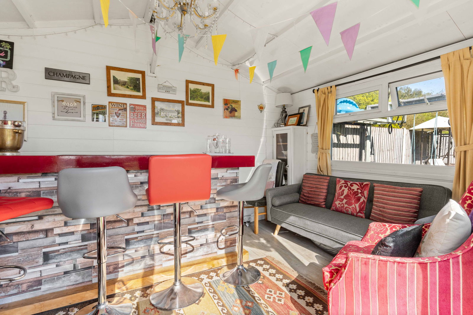Beyond the main property are numerous outbuildings which are currently used as a spacious 25ft. Gym with feature exposed brick walls and wood flooring, a workshop space and a further garage/machinery store. The garden kitchen is a tasteful addition to the property with shaded slatted roof, paving and a feature fire. There is a separate summerhouse/garden Bar for relaxing with friends. The field to the rear of the property is used for grazing animals.
