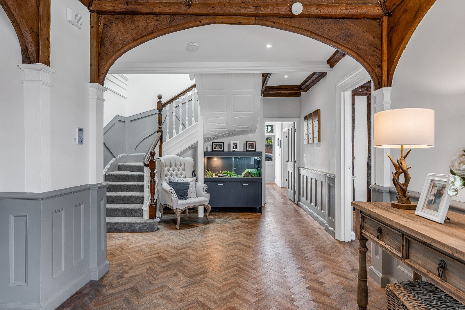 Step inside this charming, Grade II listed, period home which presents generously proportioned living accommodation and beautiful interiors in the heart of Writtle village. The property, which previously served as a Leet Court until 1700s and successively The Bull Public House and Hotel, has been extensively and sympathetically renovated into a beautiful five-bedroom family home. The front of the property originates back to the 16th century, whilst the rear contrasts with a stunning Victorian extension.