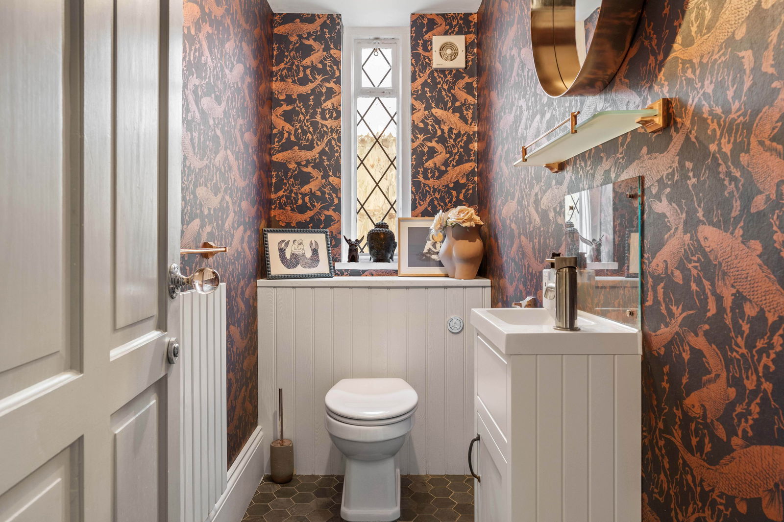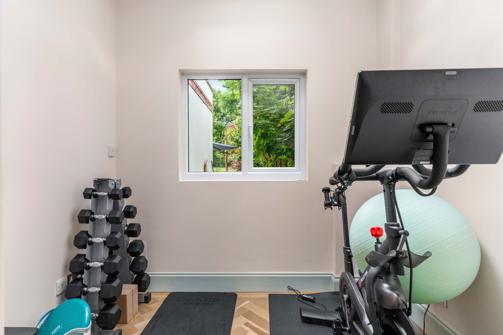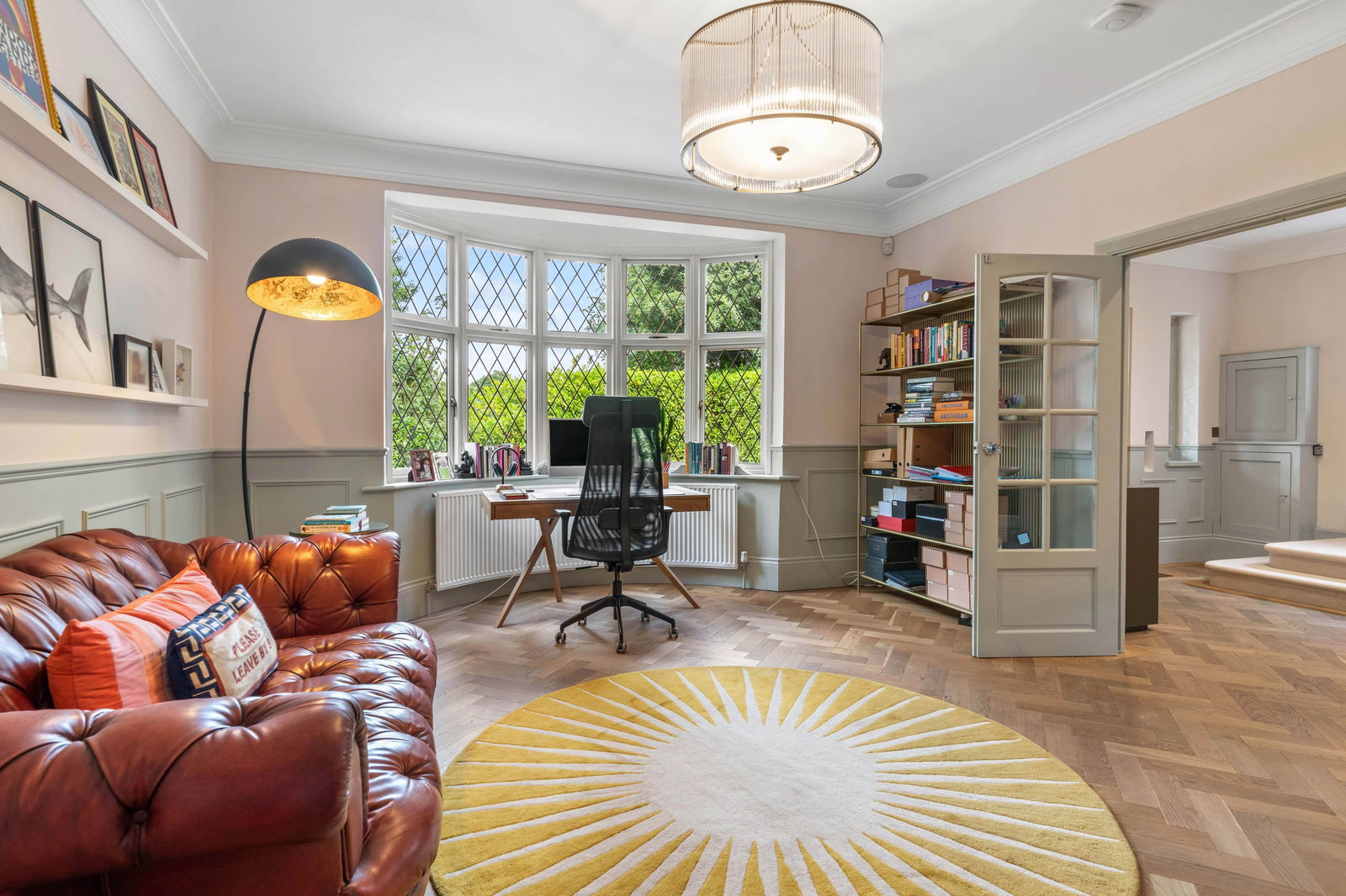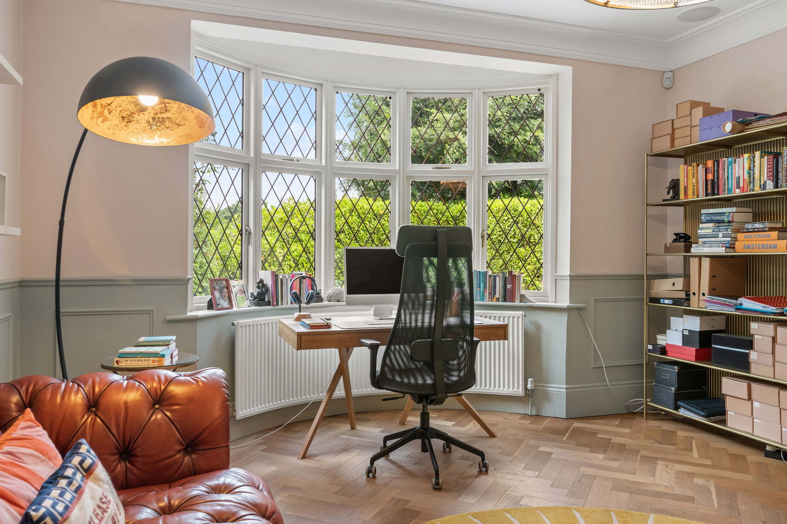 Further ground floor accommodation includes a versatile playroom and separate study overlooking the garden—ideal for home working. There is a utility room and a spacious cloakroom/WC.