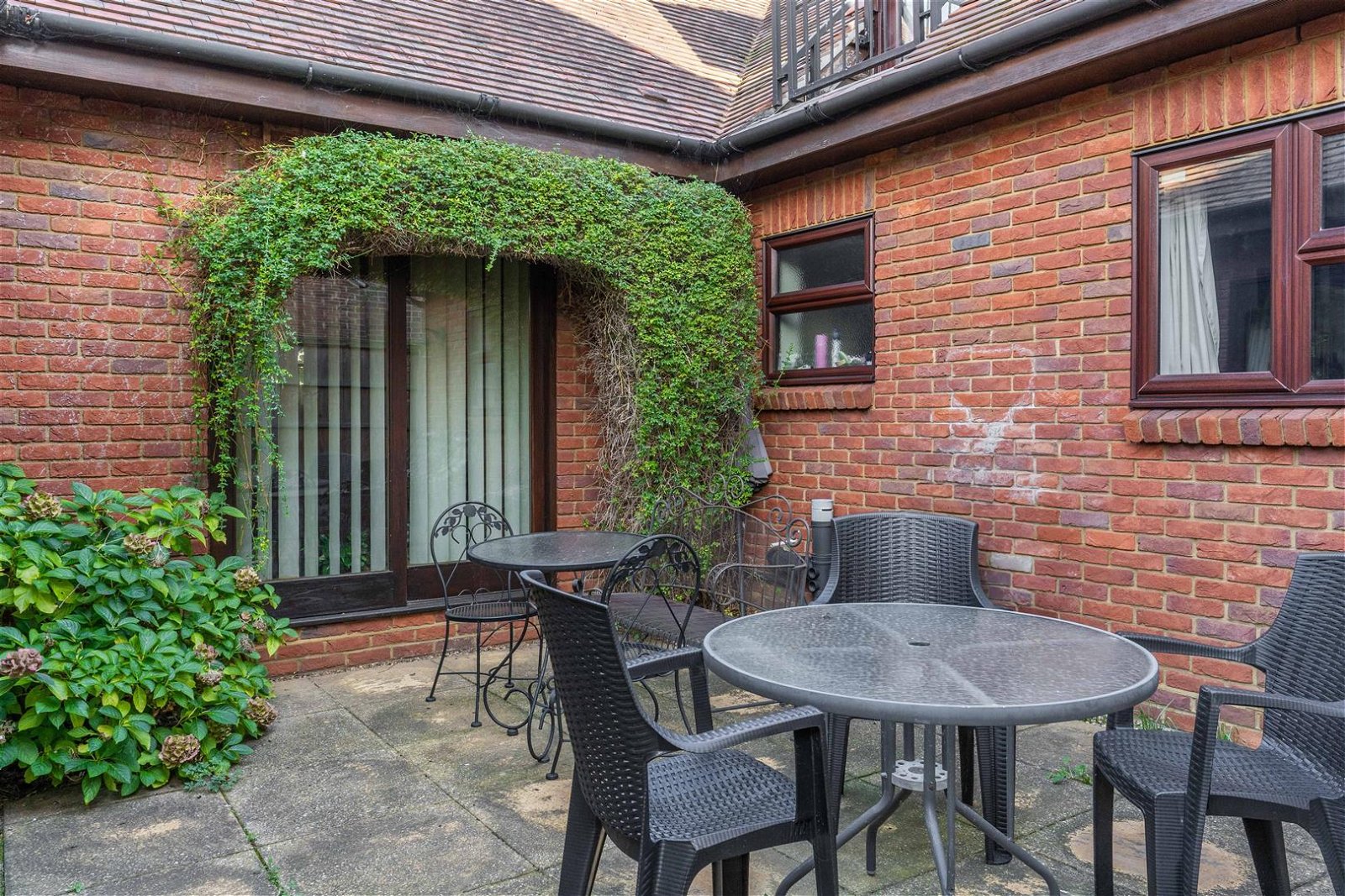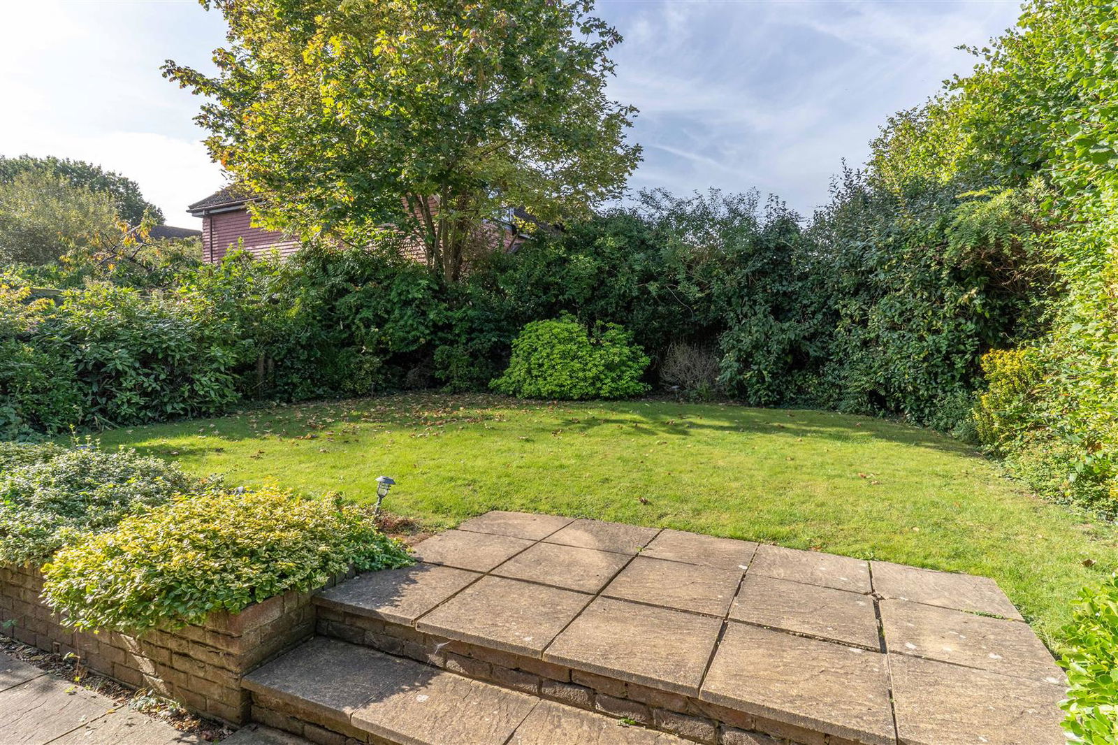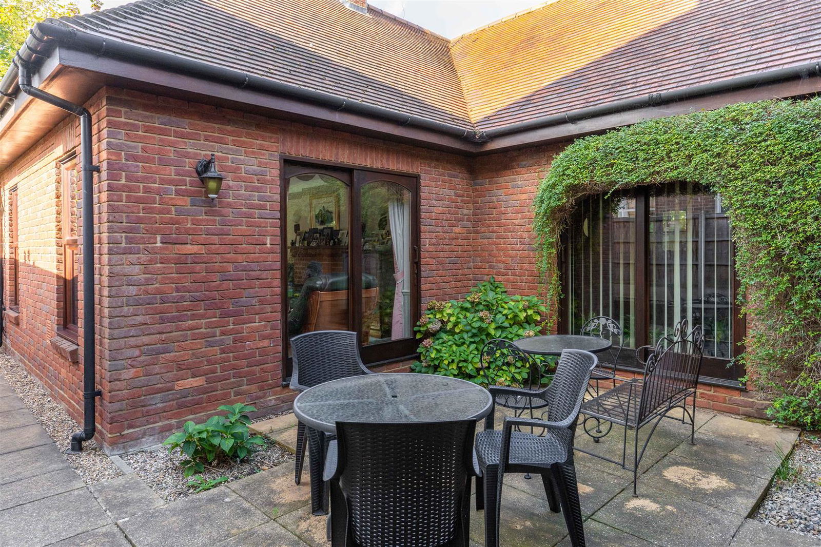 The hallway connects the three ground floor bedrooms (one ensuite), family bathroom and double garage (with scope to convert to living space stpp) to the front of the property with the kitchen, living & dining rooms and large utility room to the rear of the property. The cleaver “sideways H shape” design creates a secluded courtyard between the bedroom and living wings with the living wing having access and views to the charming and well stocked garden to the rear. Upstairs there are two further bedroom suites.