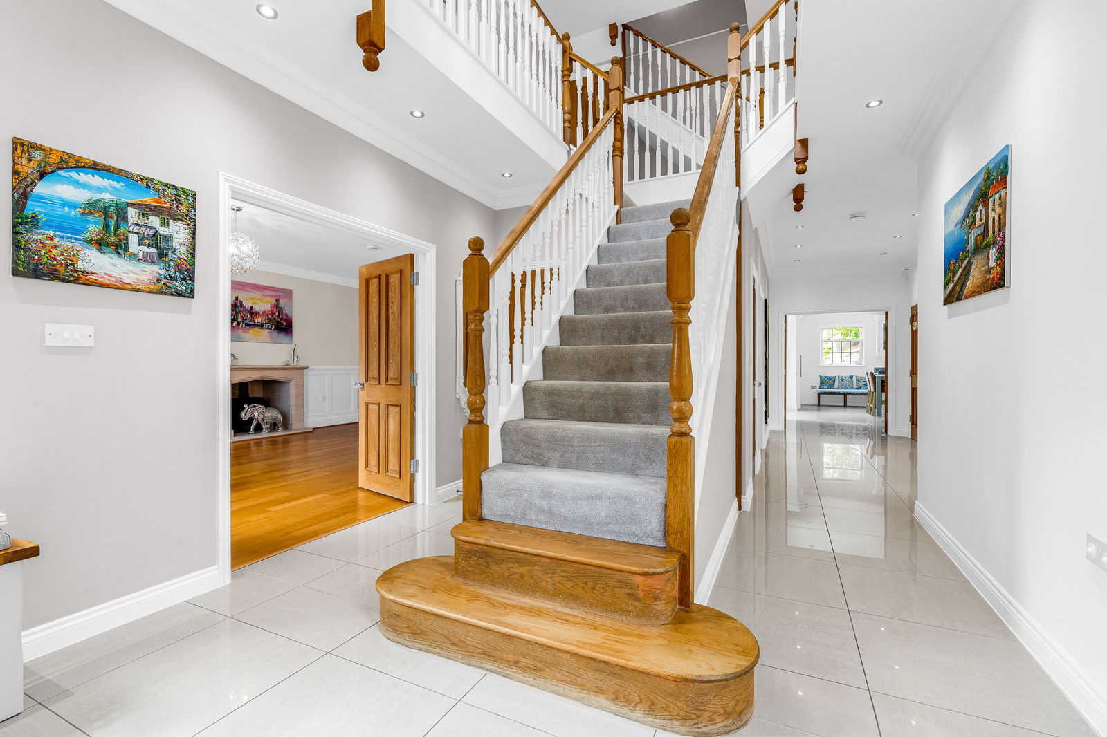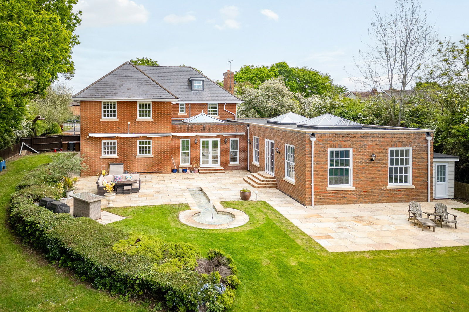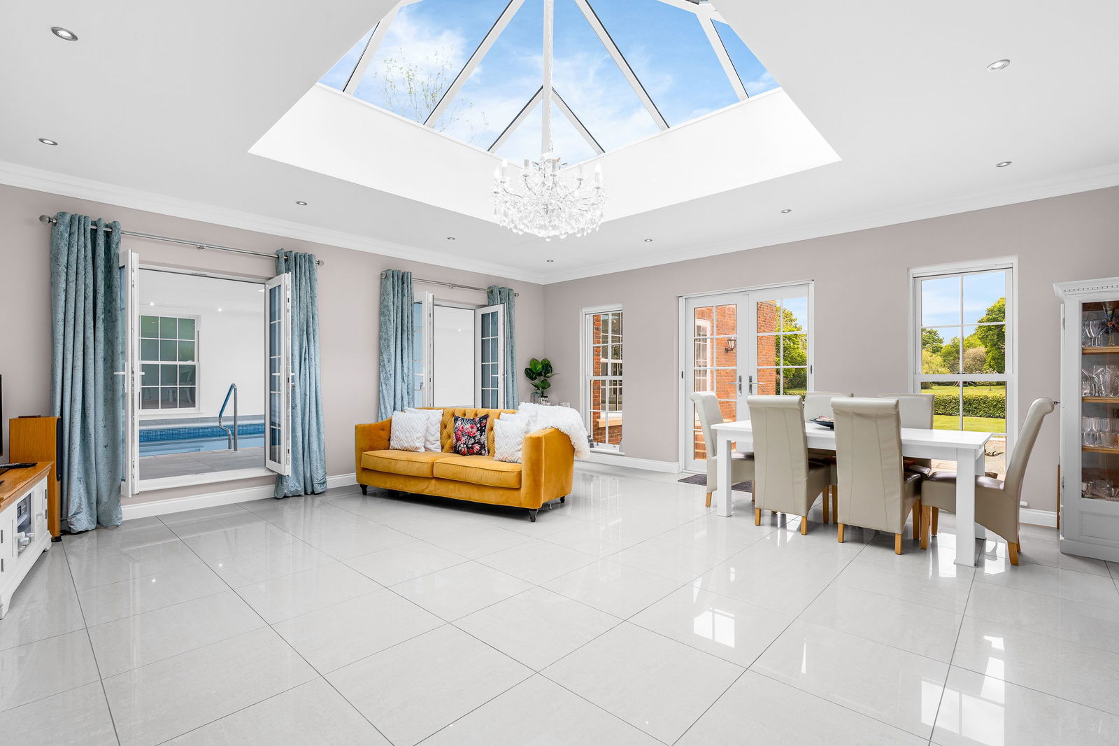 Set within 1.7 acres of beautifully landscaped grounds, this distinguished Neo-Georgian country home offers a blend of classic elegance and modern luxury set over three floors. The property features a grand galleried staircase, a light-filled Orangery leading through to the stunning newly-installed swimming pool and a bespoke Tom Howley kitchen, designed for both everyday living and entertaining. Generously arranged over three floors, including a luxurious second-floor bedroom suite ideal for guests or extended family, the property enjoys stunning views over the surrounding countryside together with beautiful gardens and sun terraces.