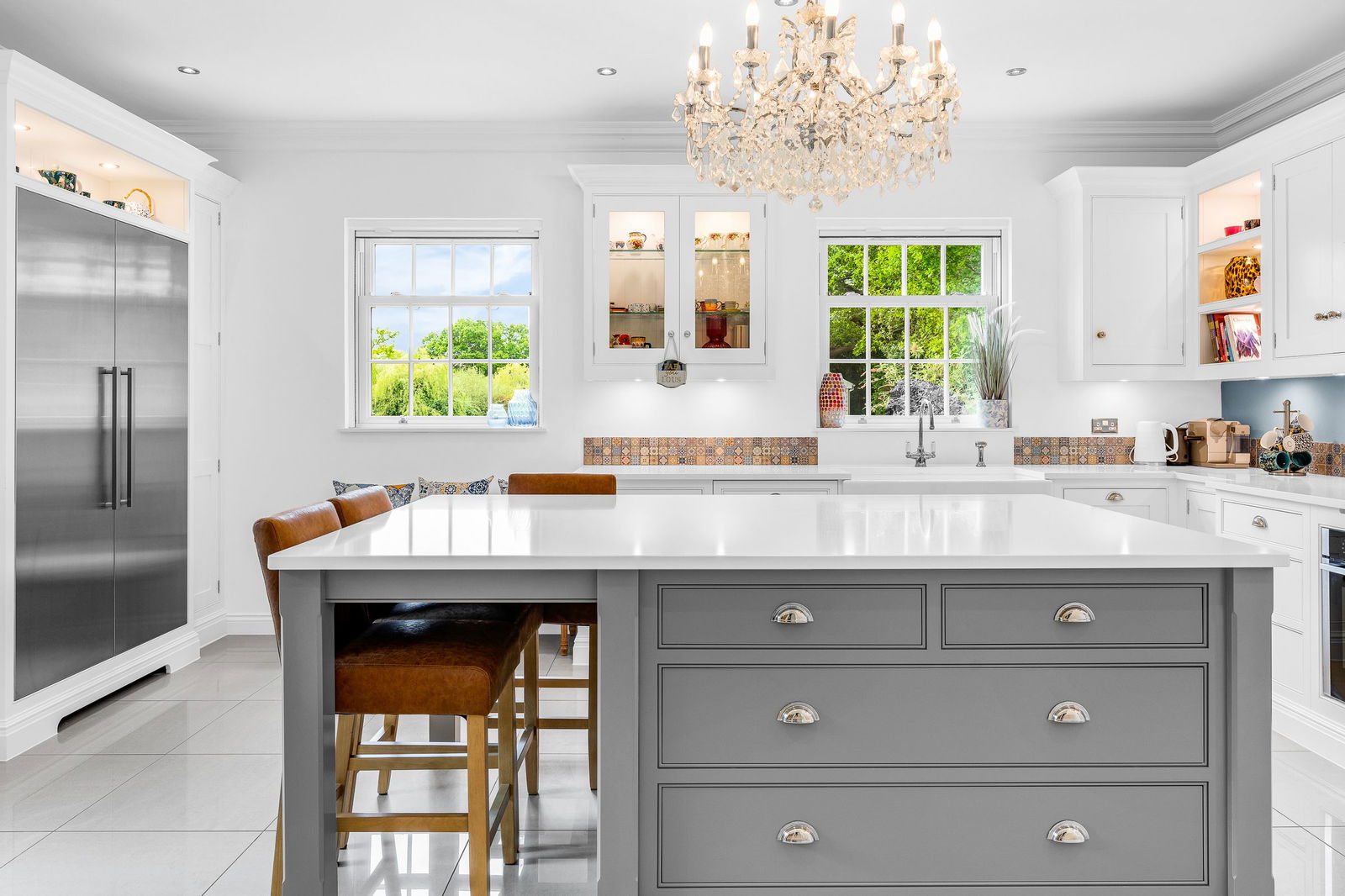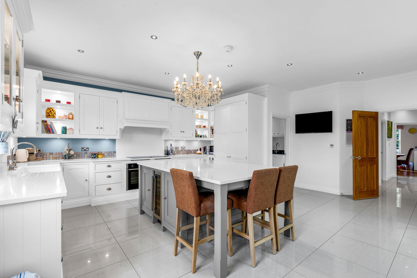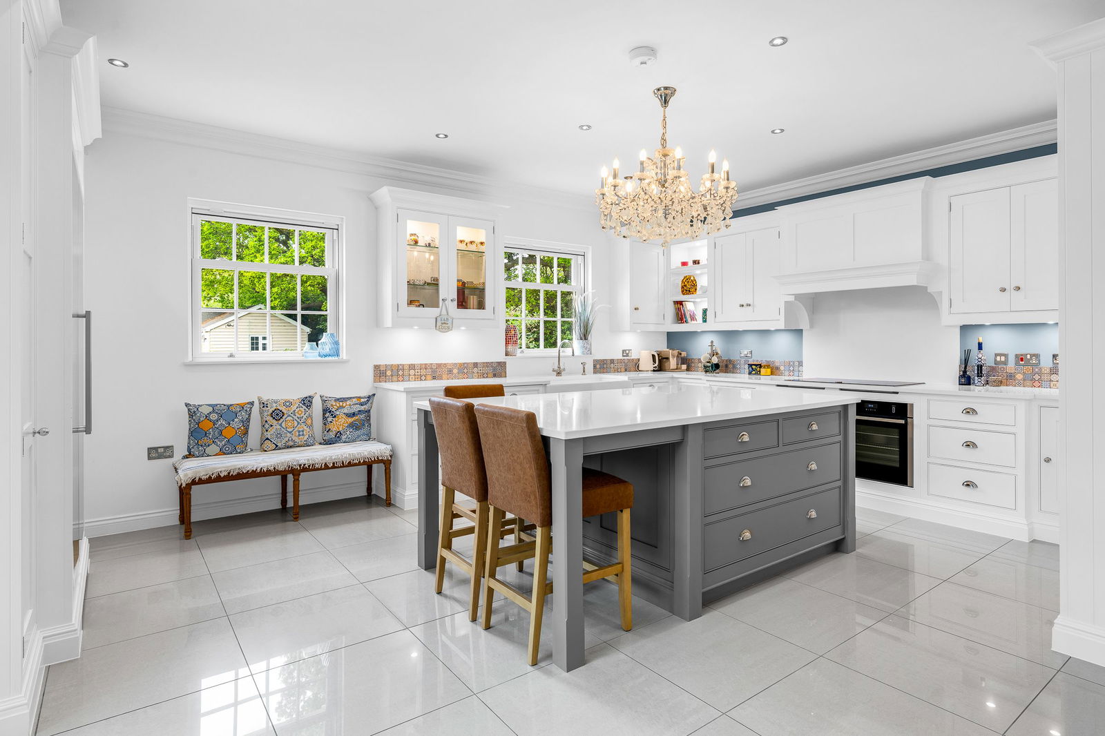 Set within 1.7 acres of beautifully landscaped grounds, this distinguished Neo-Georgian country home offers a blend of classic elegance and modern luxury set over three floors. The property features a grand galleried staircase, a light-filled Orangery leading through to the stunning newly-installed swimming pool and a bespoke Tom Howley kitchen, designed for both everyday living and entertaining. Generously arranged over three floors, including a luxurious second-floor bedroom suite ideal for guests or extended family, the property enjoys stunning views over the surrounding countryside together with beautiful gardens and sun terraces.