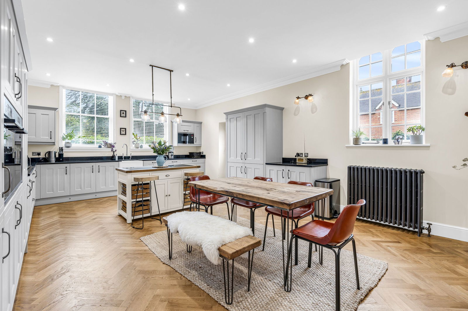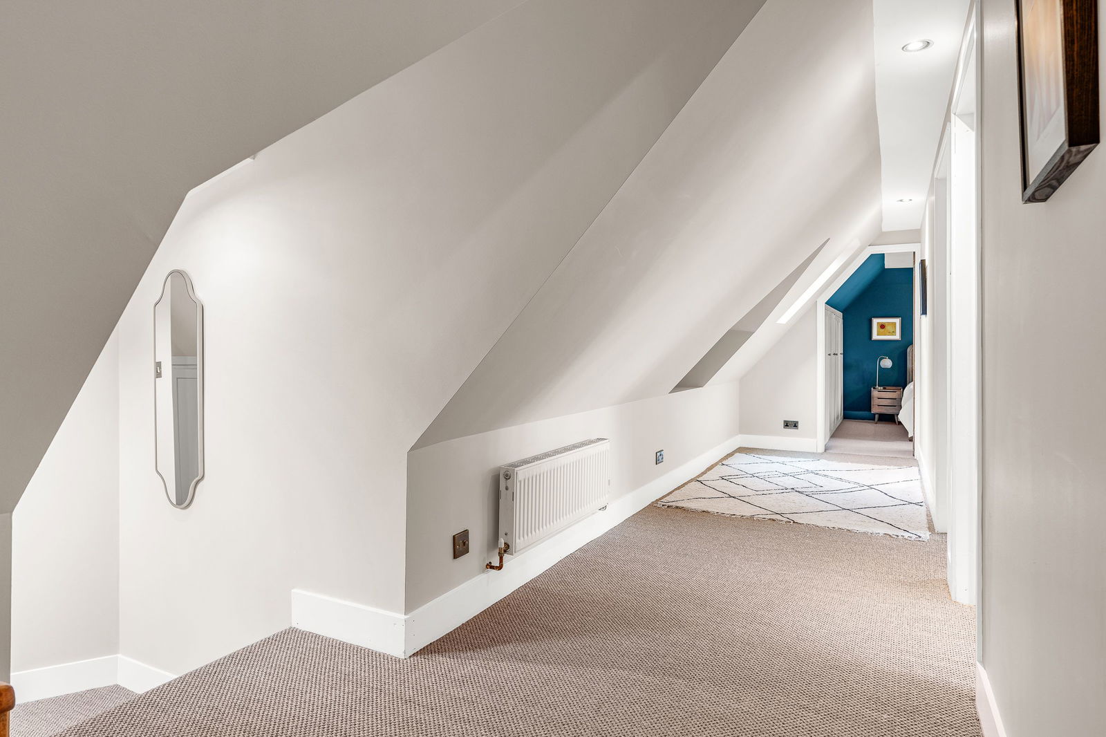 Upstairs, the Old School House offers four additional spacious bedrooms and a large family bathroom. There is also planning consent to reconfigure and extend the first floor to create a principal bedroom suite with walk-in wardrobe and ensuite-, plus a further en-suite attached to a large, second double bedroom, ensuring flexibility for the future.