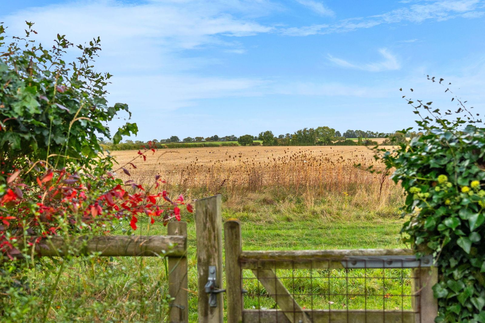 Step outside to the expansive rear garden which offers a true retreat. Laid mainly to lawn with a paved sun terrace, mature flower borders, and trees, the rear garden offers a peaceful haven to enjoy country living with far-reaching, uninterrupted views of the countryside. A pedestrian gate leads to the adjoining fields, enhancing the rural charm of the property. The front of the house features a gated entrance, a paved driveway with ample parking, a detached garage and large woodshed.