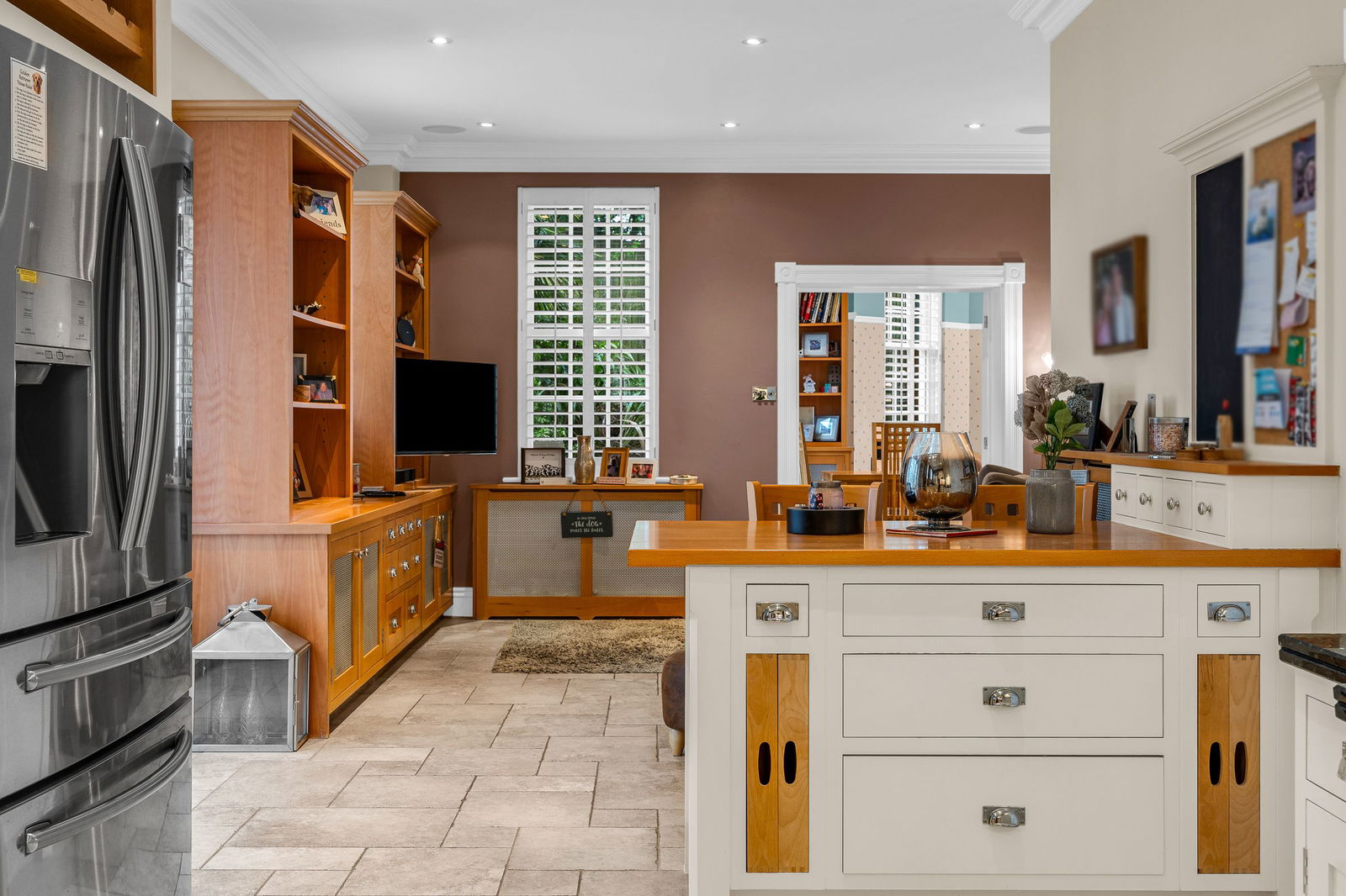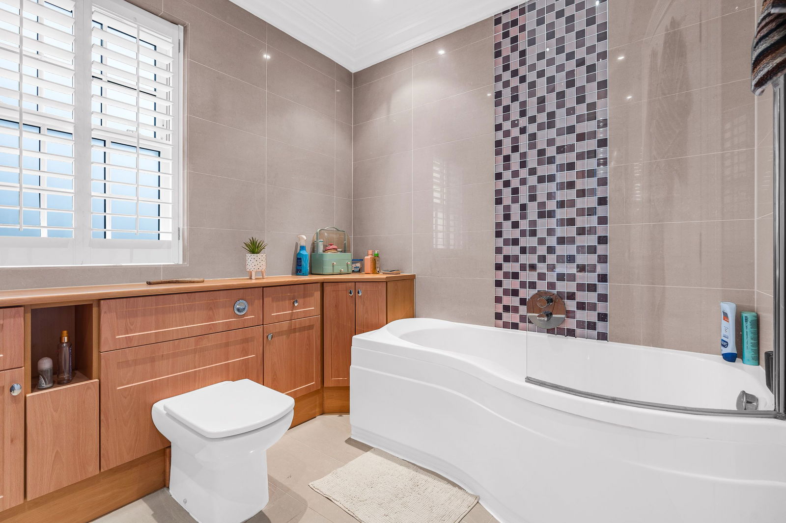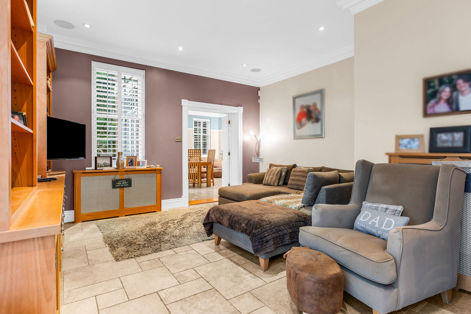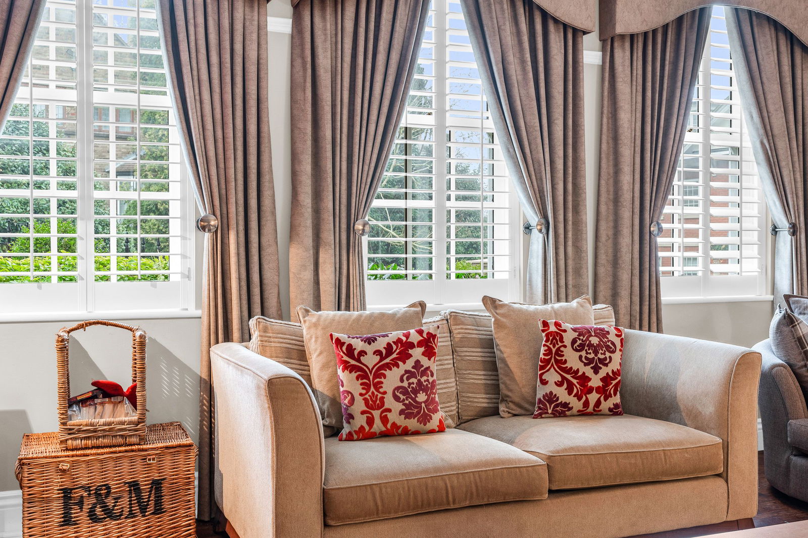 Step inside into the welcoming and spacious hallway which gives access into the reception rooms, downstairs cloakroom/wc and the kitchen/family areas. The reception room to the front aspect features a fireplace and three sash windows with fitted shutters. Opposite is the dining room also to the front aspect and an adjacent fitted study/home office featuring bespoke wooden units and shelving. The fitted kitchen area is open to the family entertaining space and features a tiled floor, range of wood units incorporating built-in appliances and a Rangemaster cooker. The family/sitting area creates a lovely space for relaxing and watching tv whilst double doors lead through to a further family room with bayed wall featuring three sash windows and further double doors to the rear garden. From the kitchen/family room there is also double doors into a conservatory which also leads out to the patio area and garden. From the kitchen there is a useful utility room and an external door.
