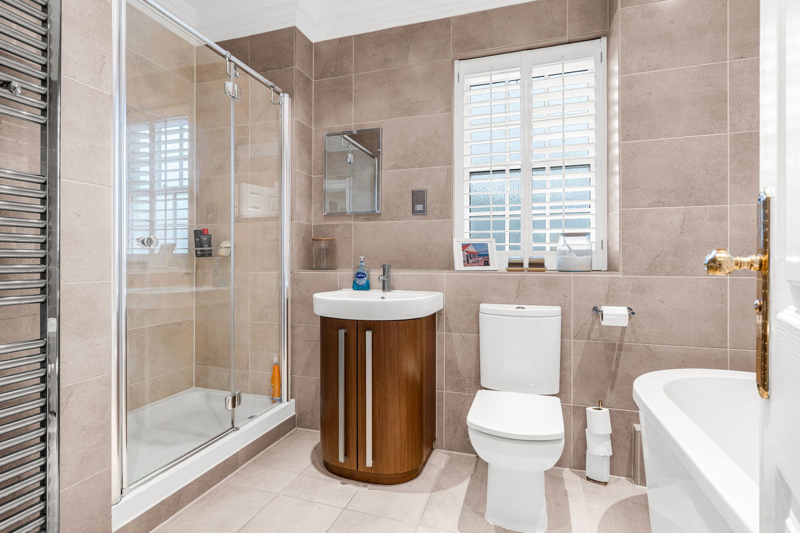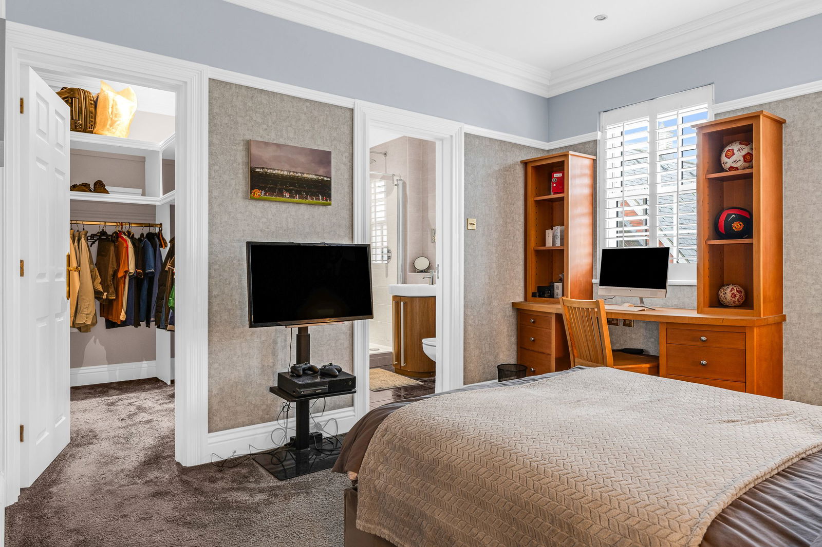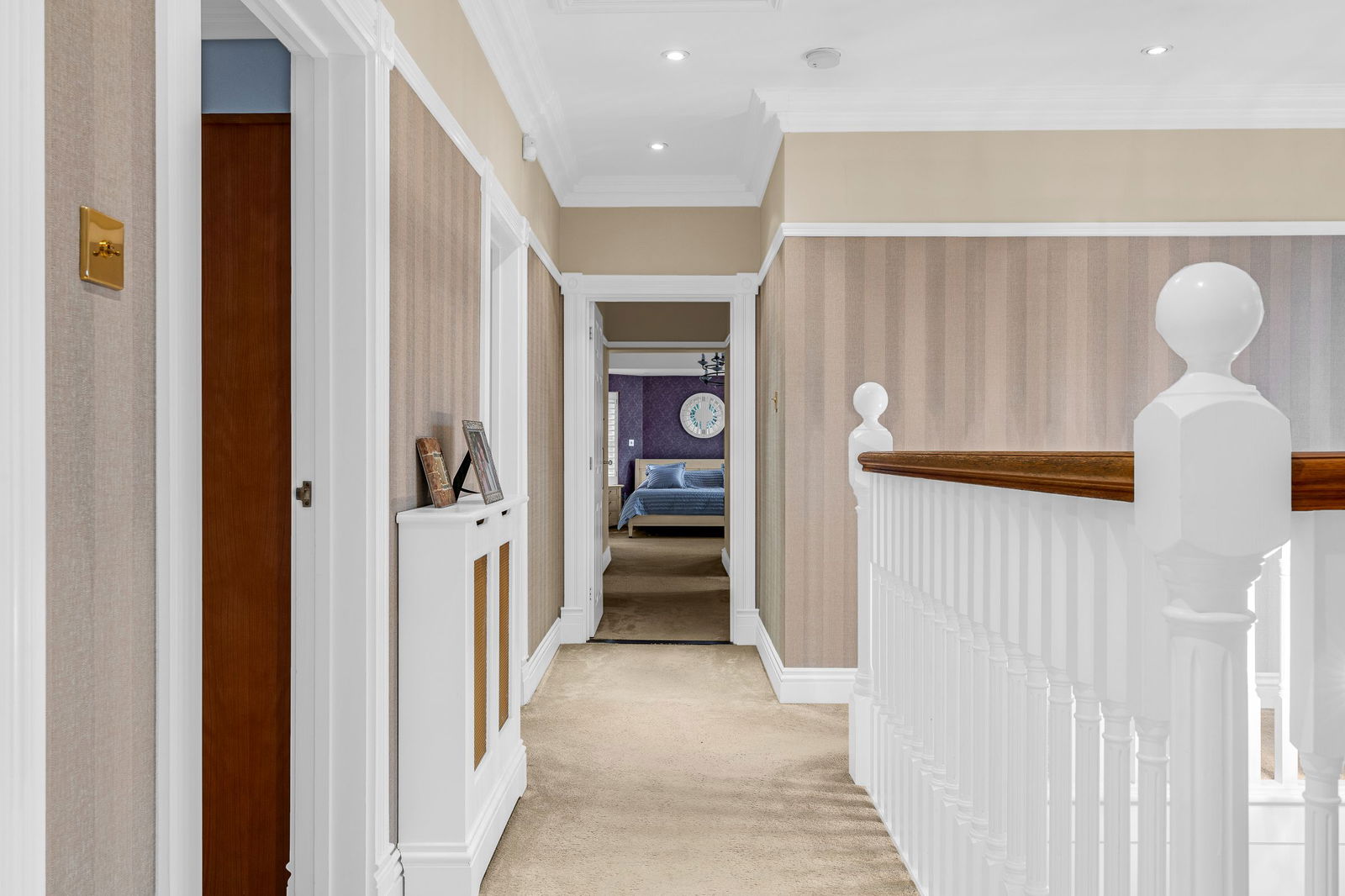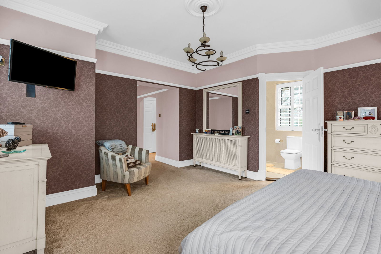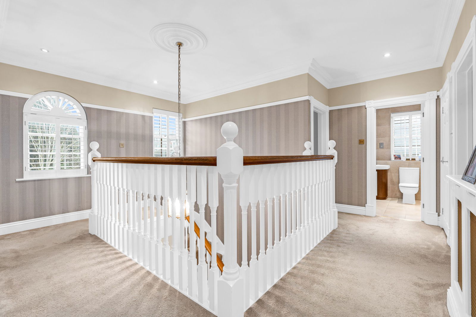 The balustrade staircase leads up to a galleried landing offering ample natural light and access to the bedroom suites. The principal bedroom is above the family room benefitting from the bayed section with give sash windows in this room and a spacious en-suite shower room and walk in his and hers dressing areas. There are two further bedroom suite's to the rear aspect, both featuring en-suite bathrooms and dressing areas. A stunning family bathroom with separate shower and freestanding bath serves the remaining two double bedrooms, all of which are tastefully decorated.