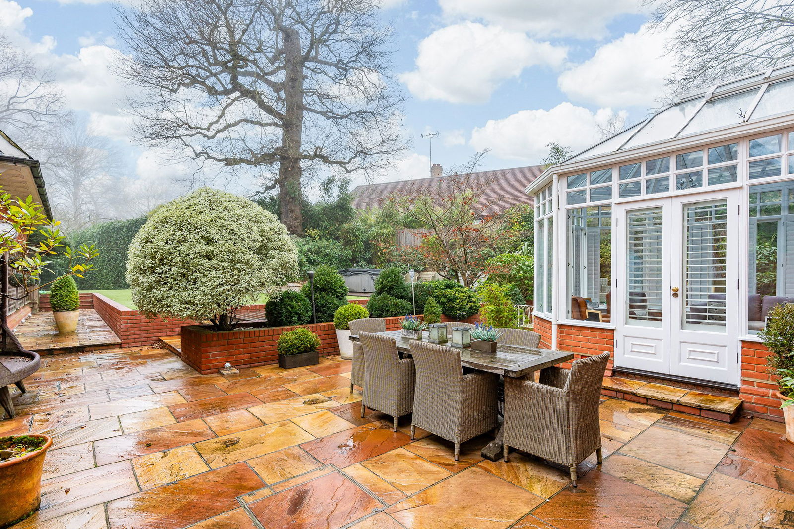 Step outside with immaculately presented landscaping to both the front and rear aspects and a driveway leading up to the detached double garage which has a pitched roof. The front of Gainsborough House has low wrought-iron railings, pathways and tasteful planting. The rear of the property features paved entertaining areas, a decked area with hot tub and well tended lawns edged with brick pathways and mature trees and shrubs.